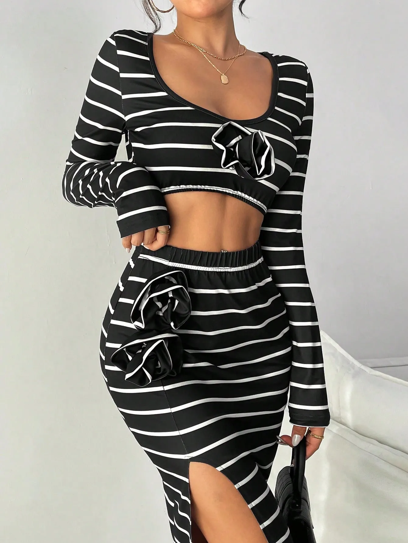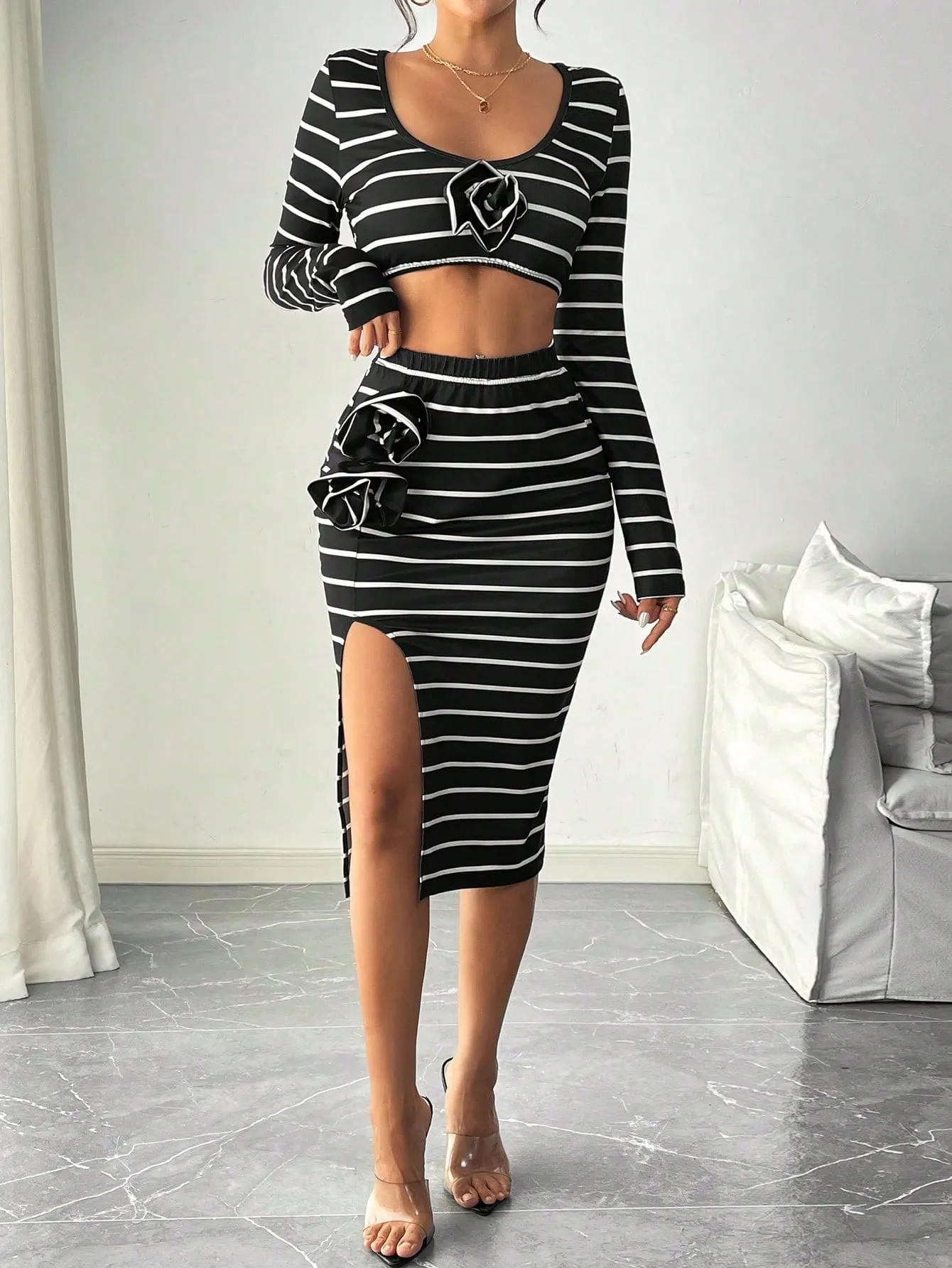 SMY 2pcs/Set Women Solid Color Sleeveless 3D Floral Top