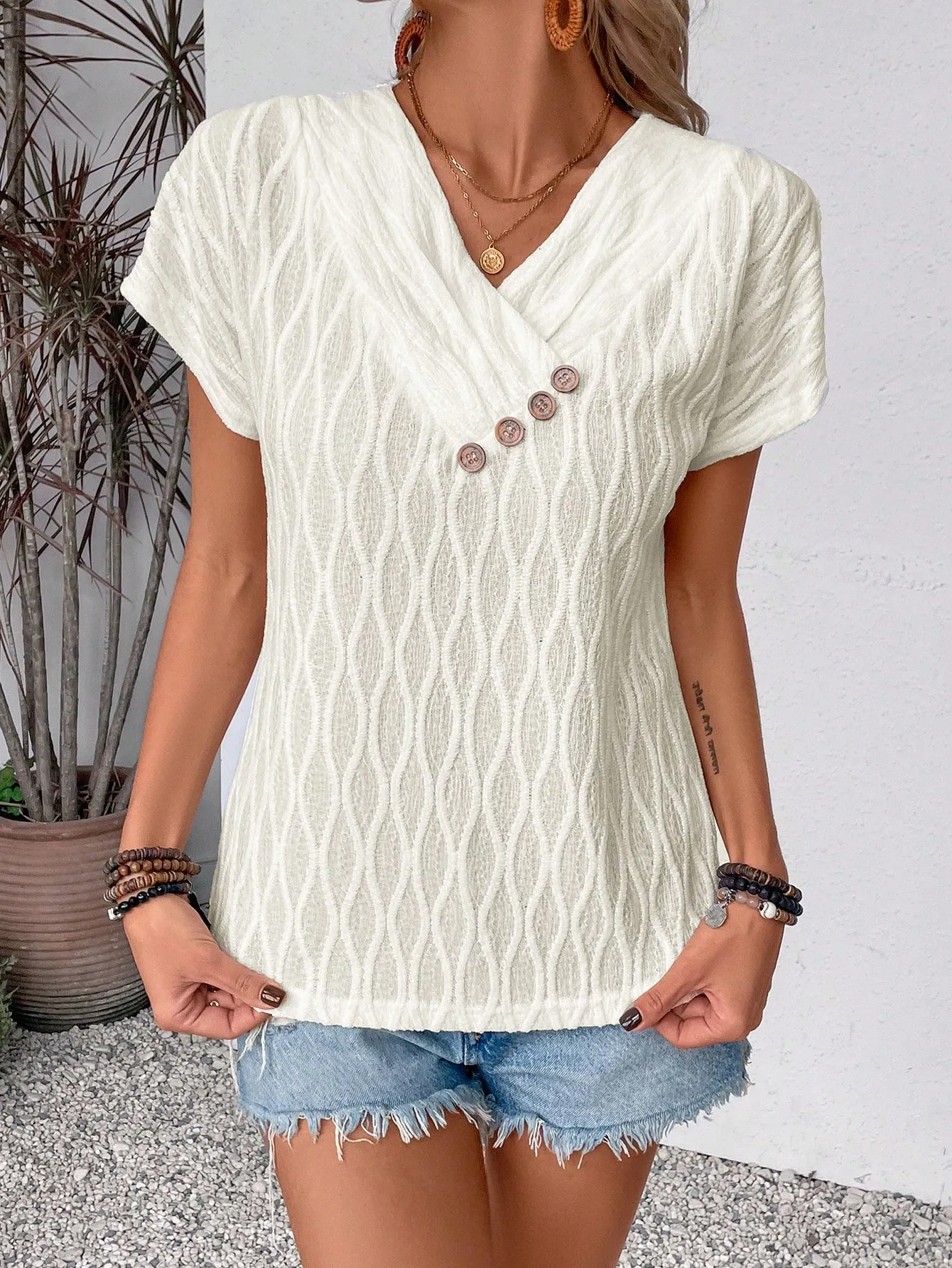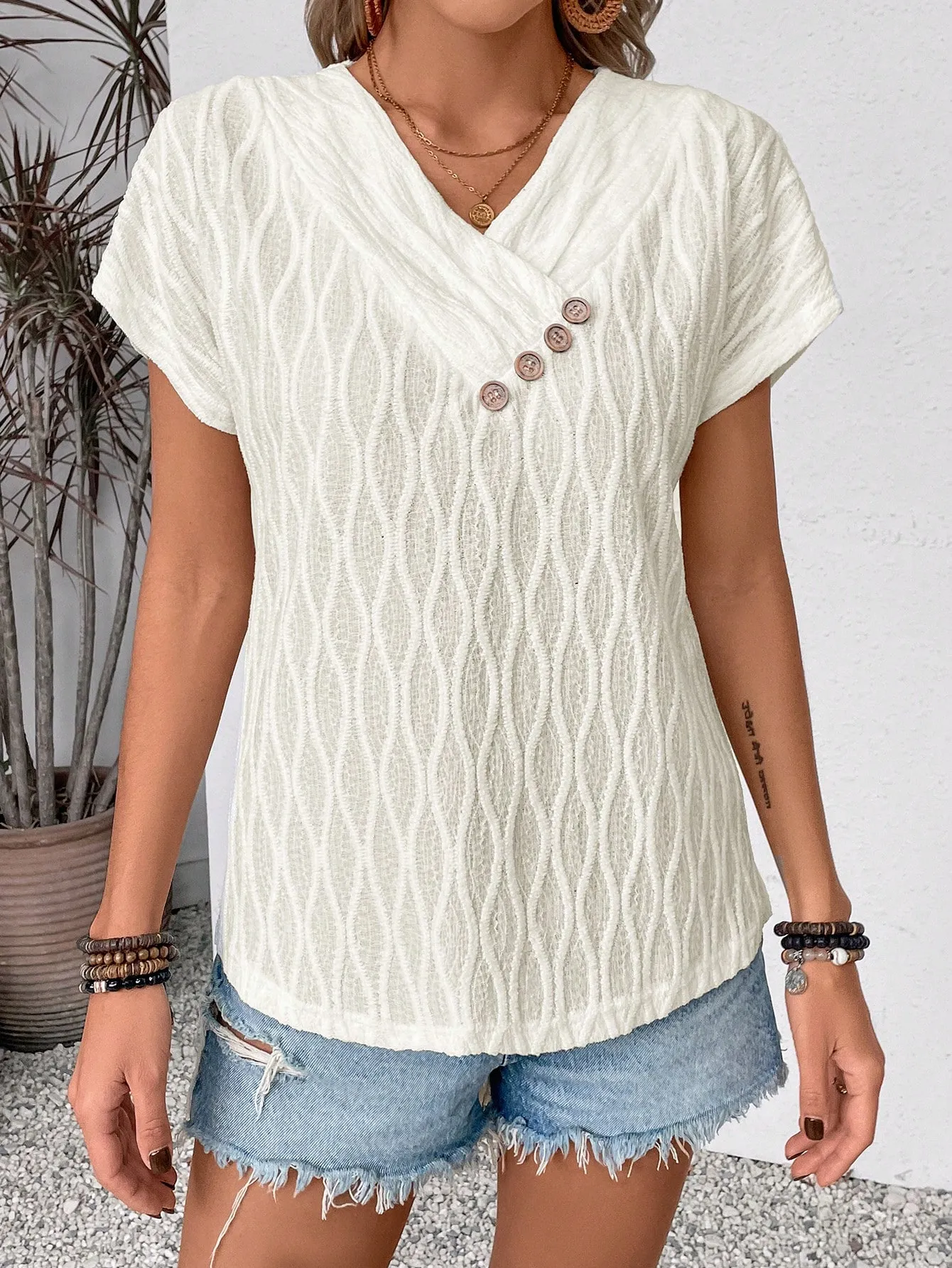 SMY Batwing Sleeve Button Detail T-Shirt For Summer Casual Style