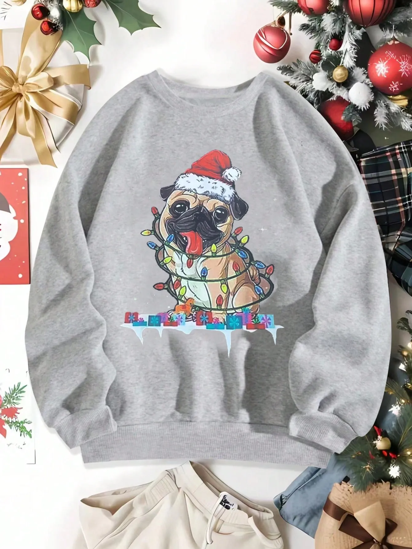 SMY Christmas Dog Print Drop Shoulder Sweatshirt