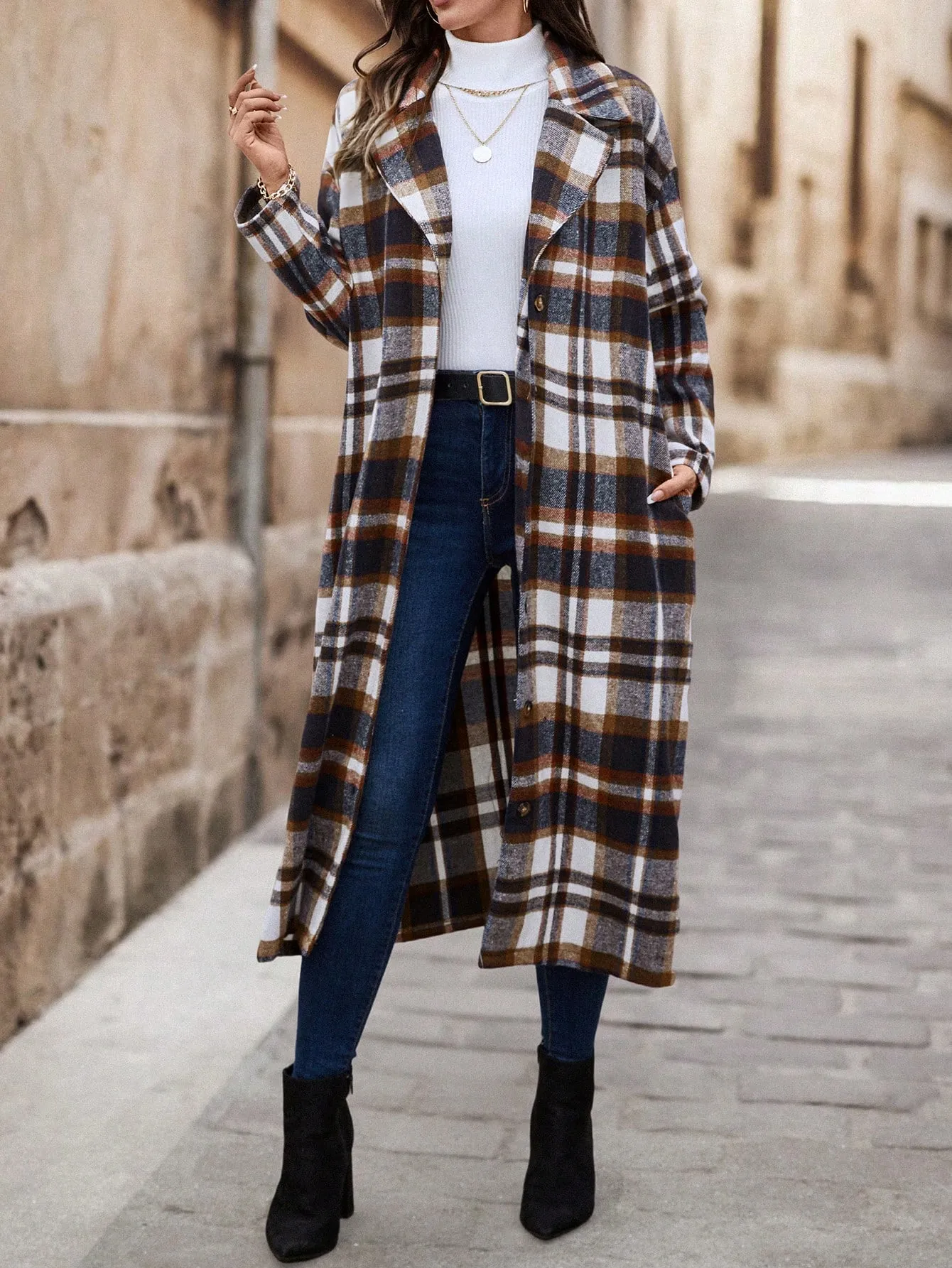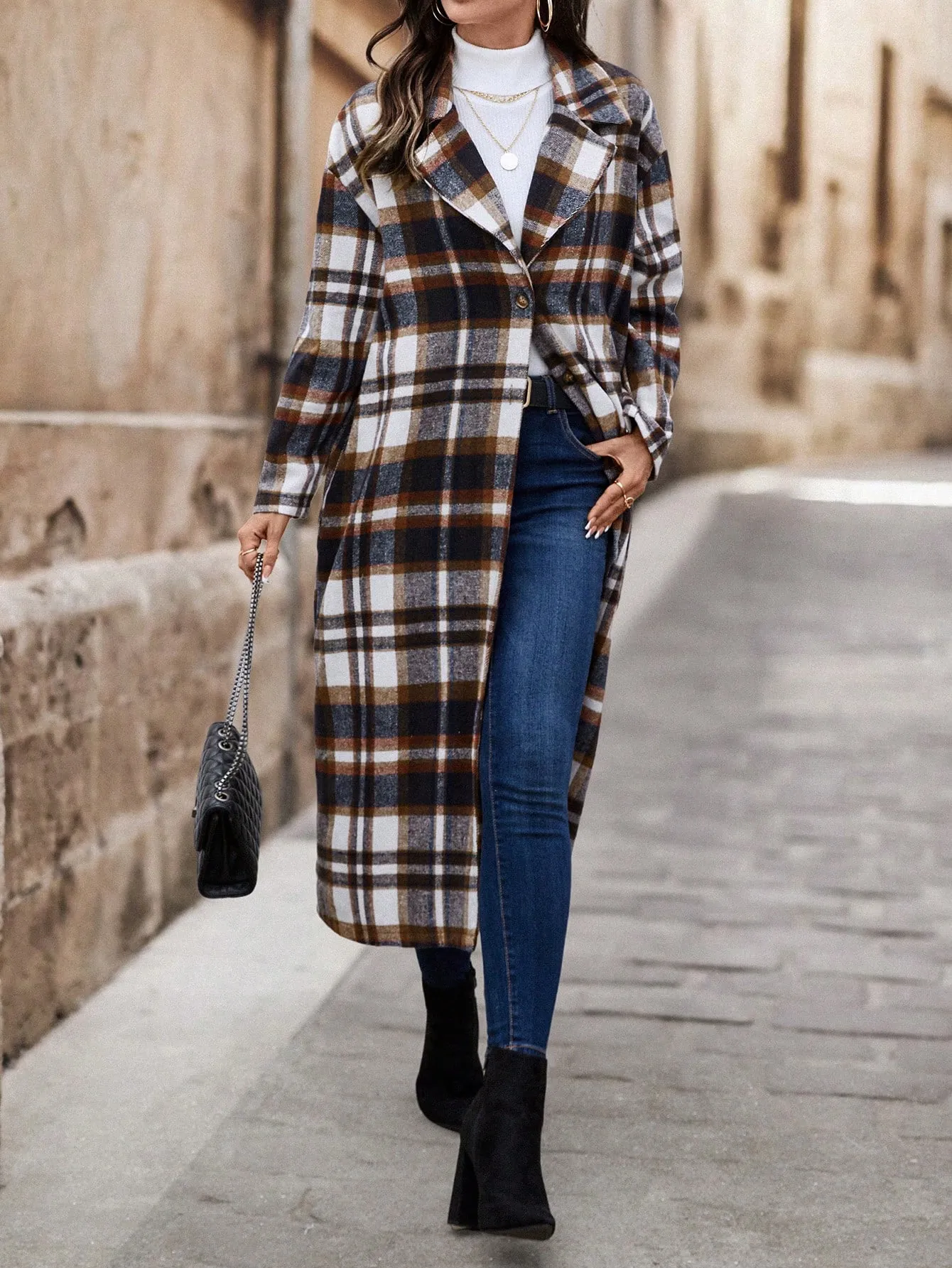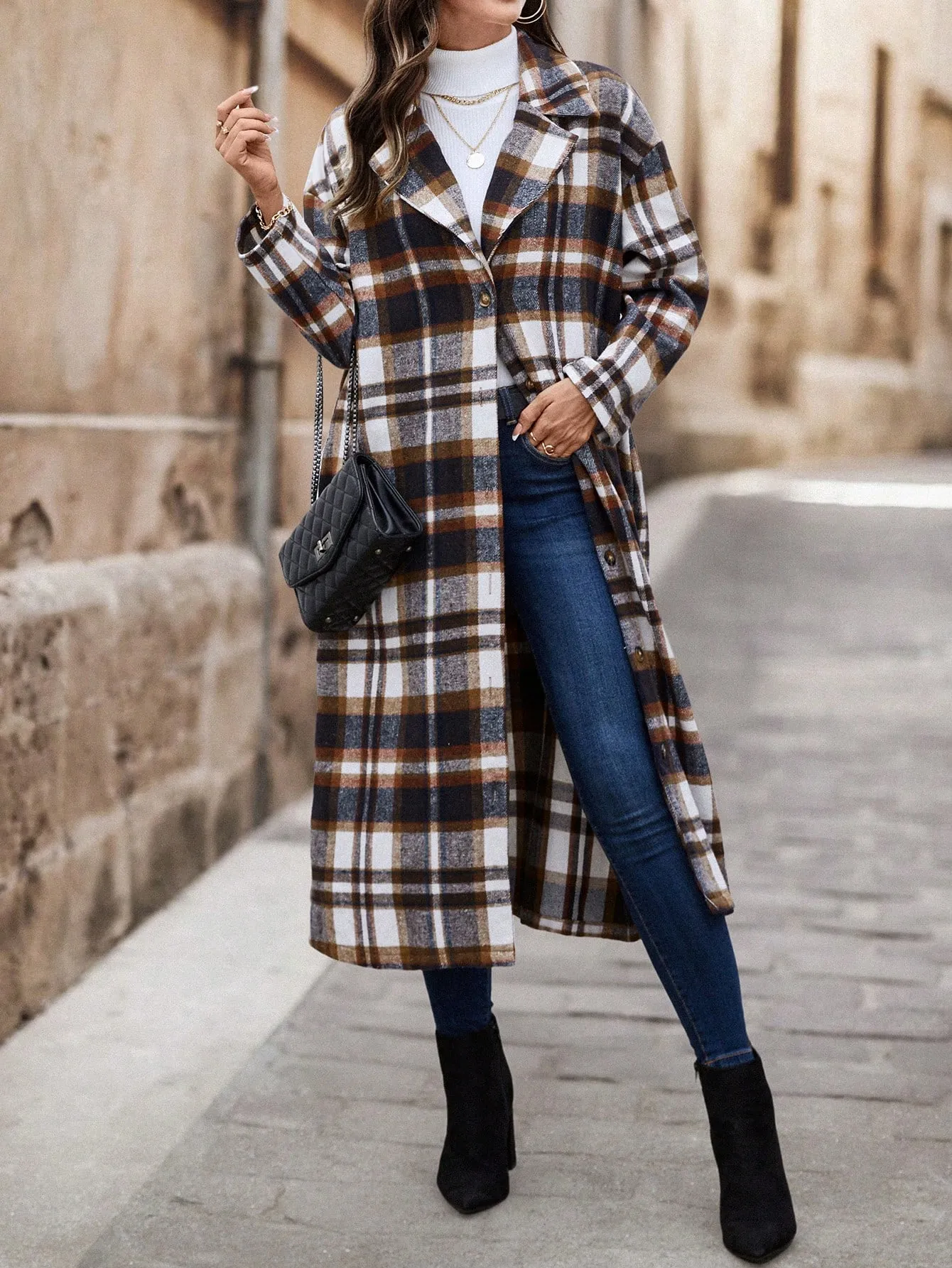 SMY Clasi Women’s Plaid Print Lapel Loose Fit Coat