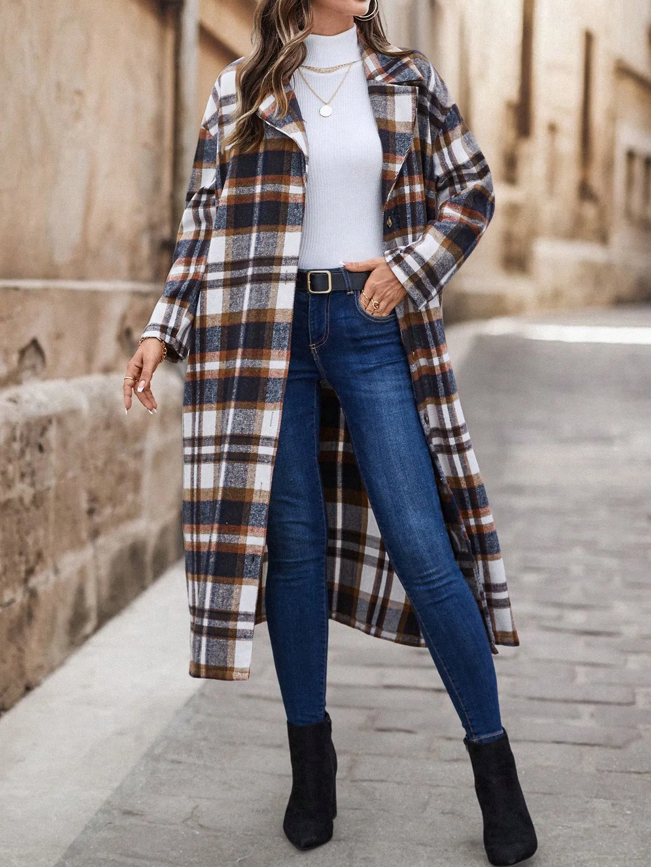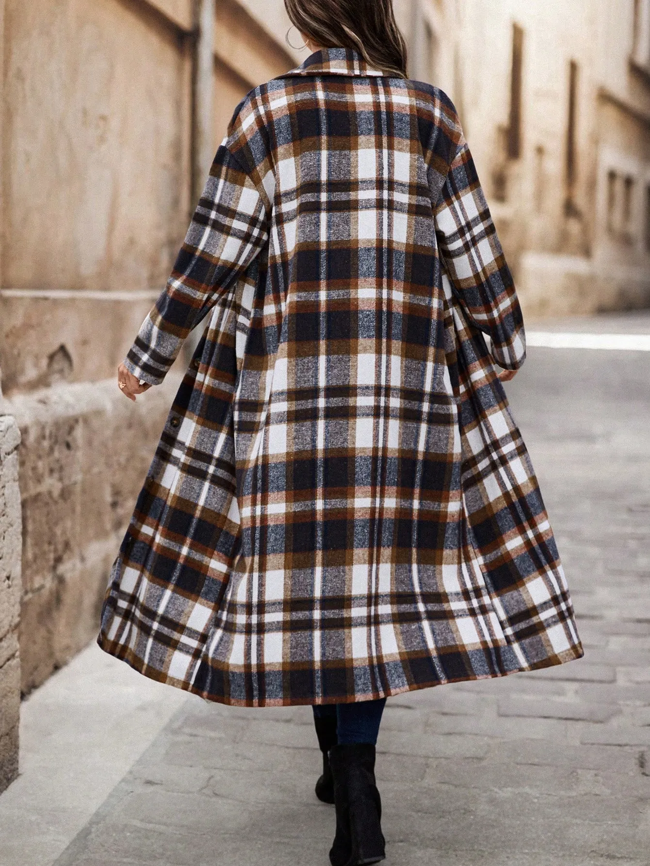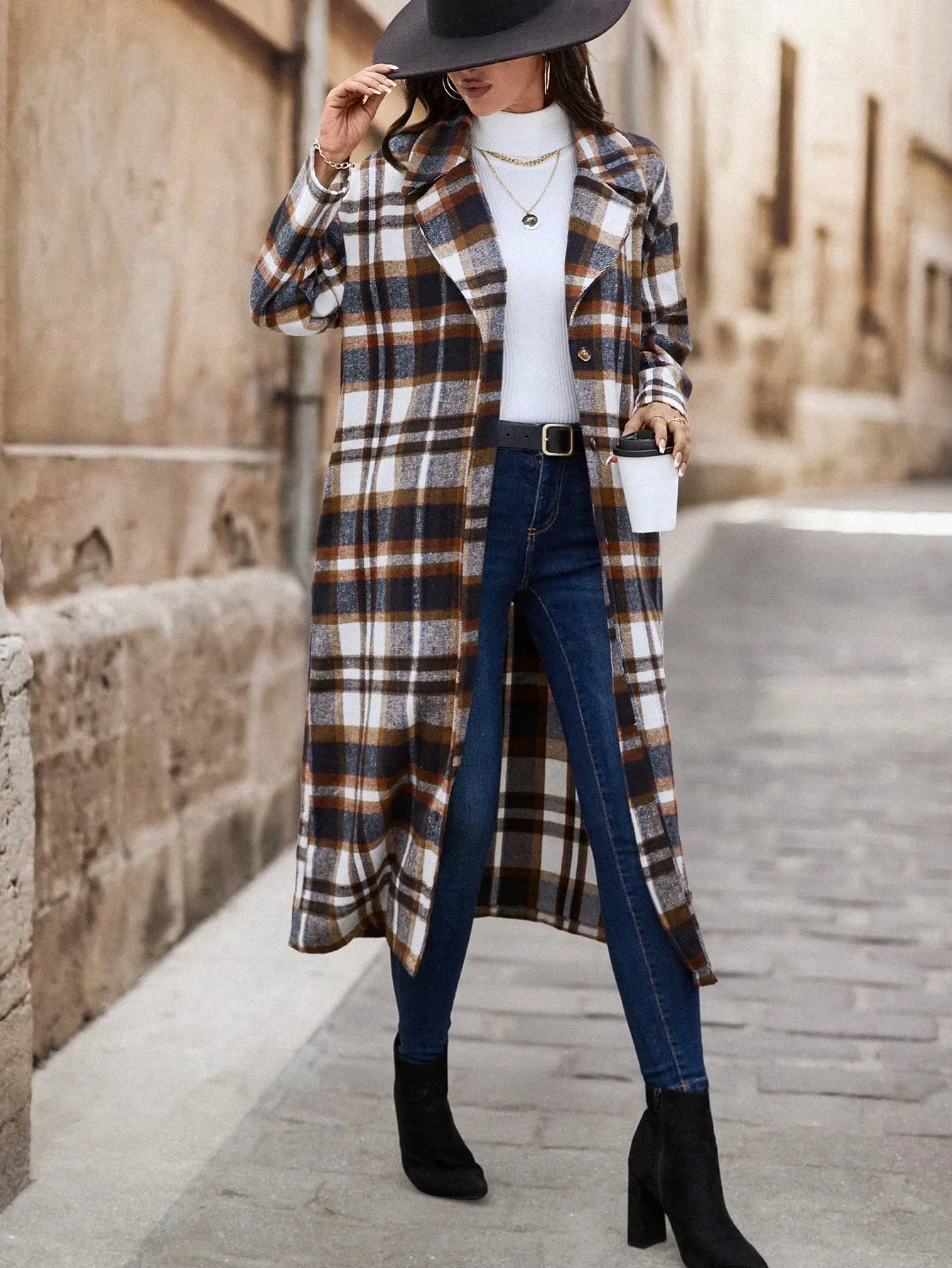 SMY Clasi Women’s Plaid Print Lapel Loose Fit Coat