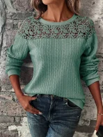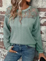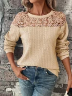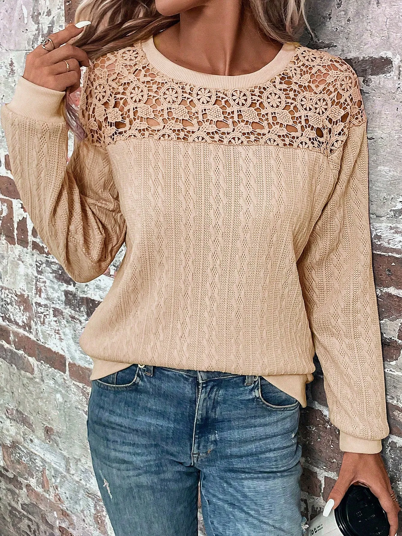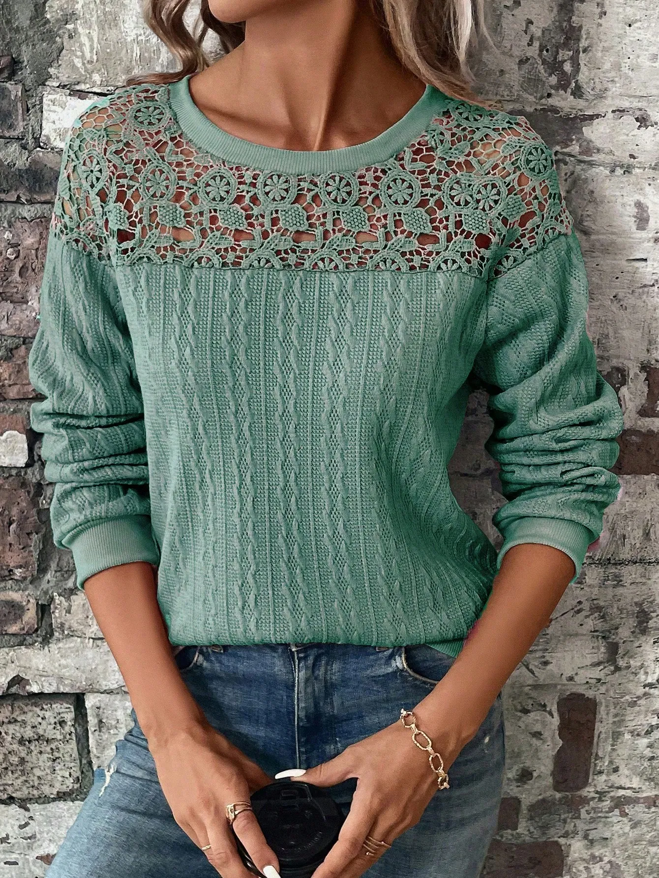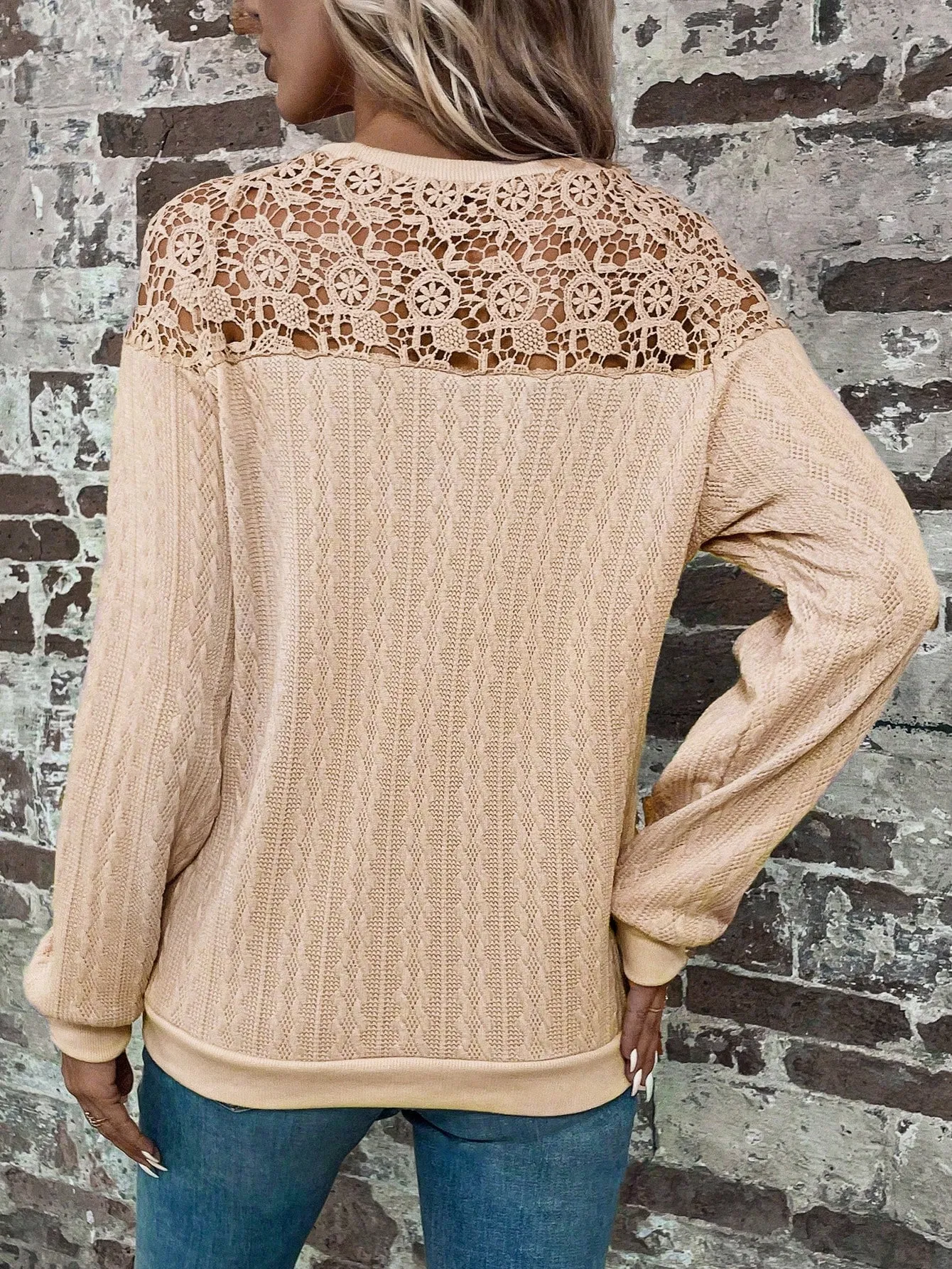 SMY Contrast Guipure Lace Drop Shoulder Sweatshirt