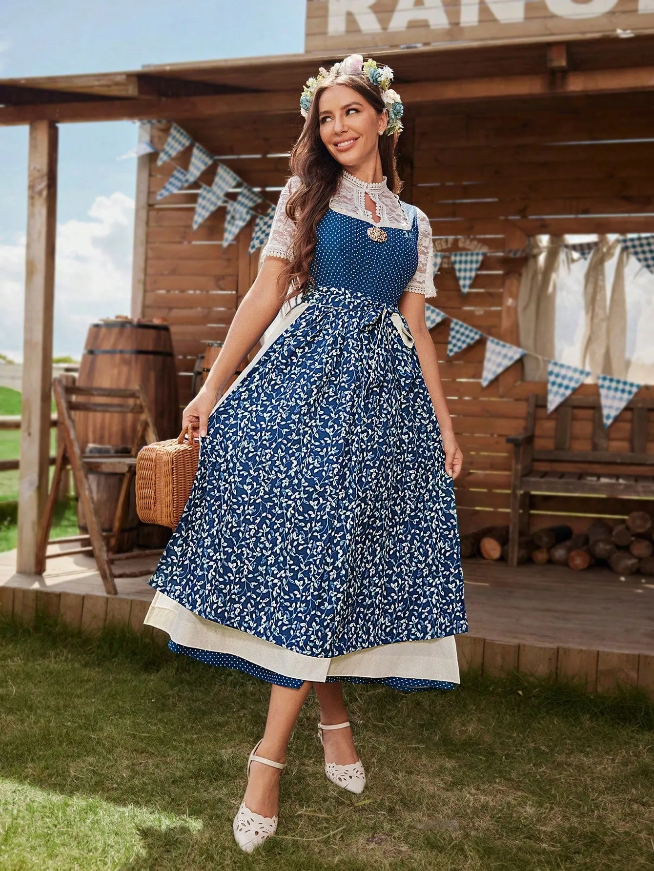 SMY Frenchy Women’s Elegant All-Over Floral Print Vintage Style Dress