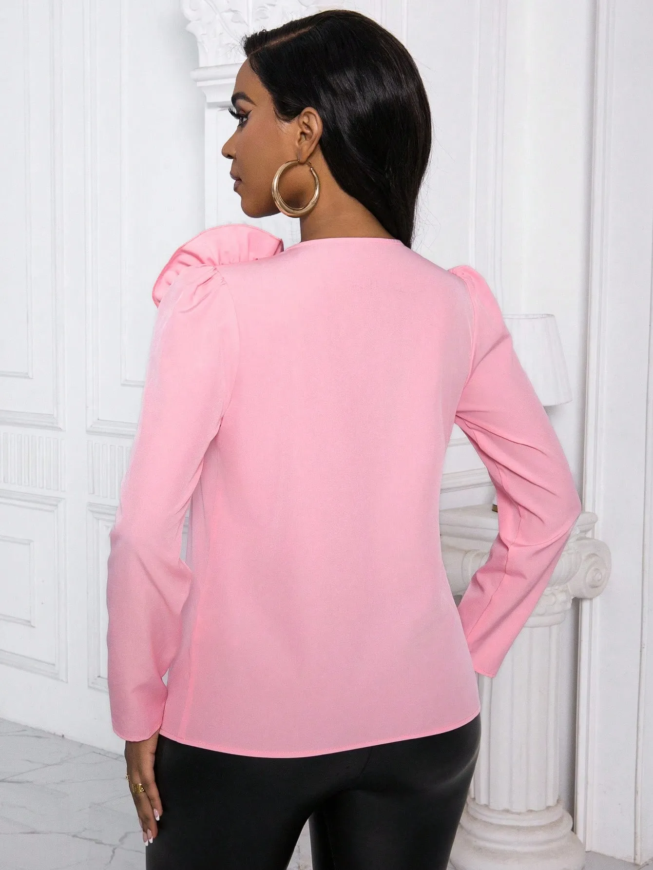 SMY Ladiora Women’s Casual Elegant Solid Color Shirt With 3D Floral Patchwork