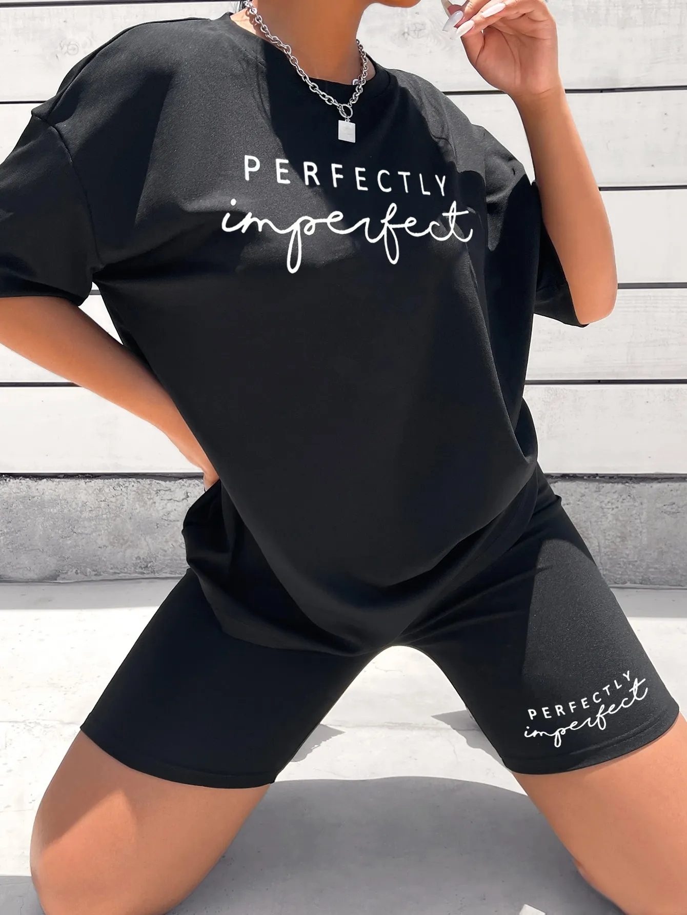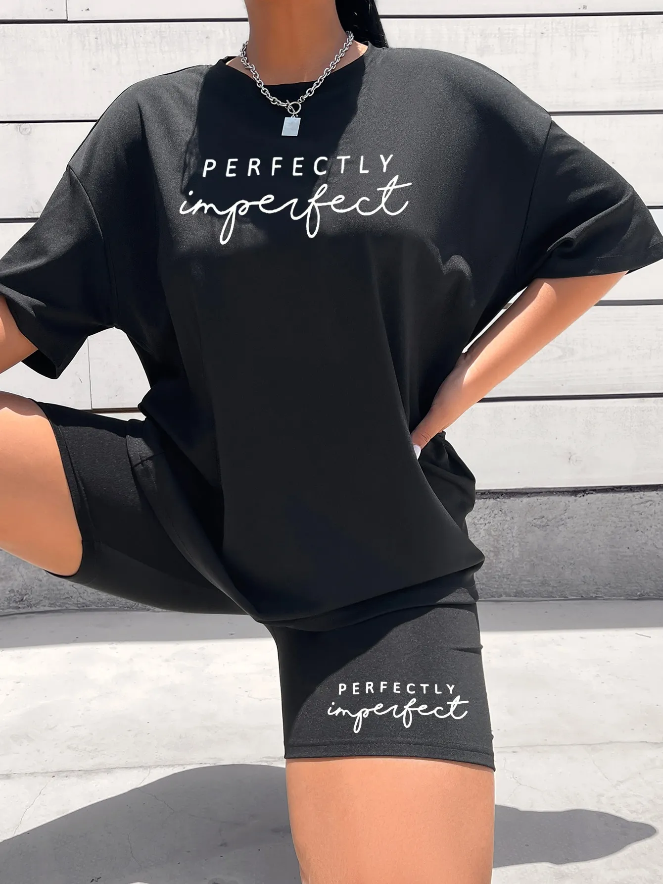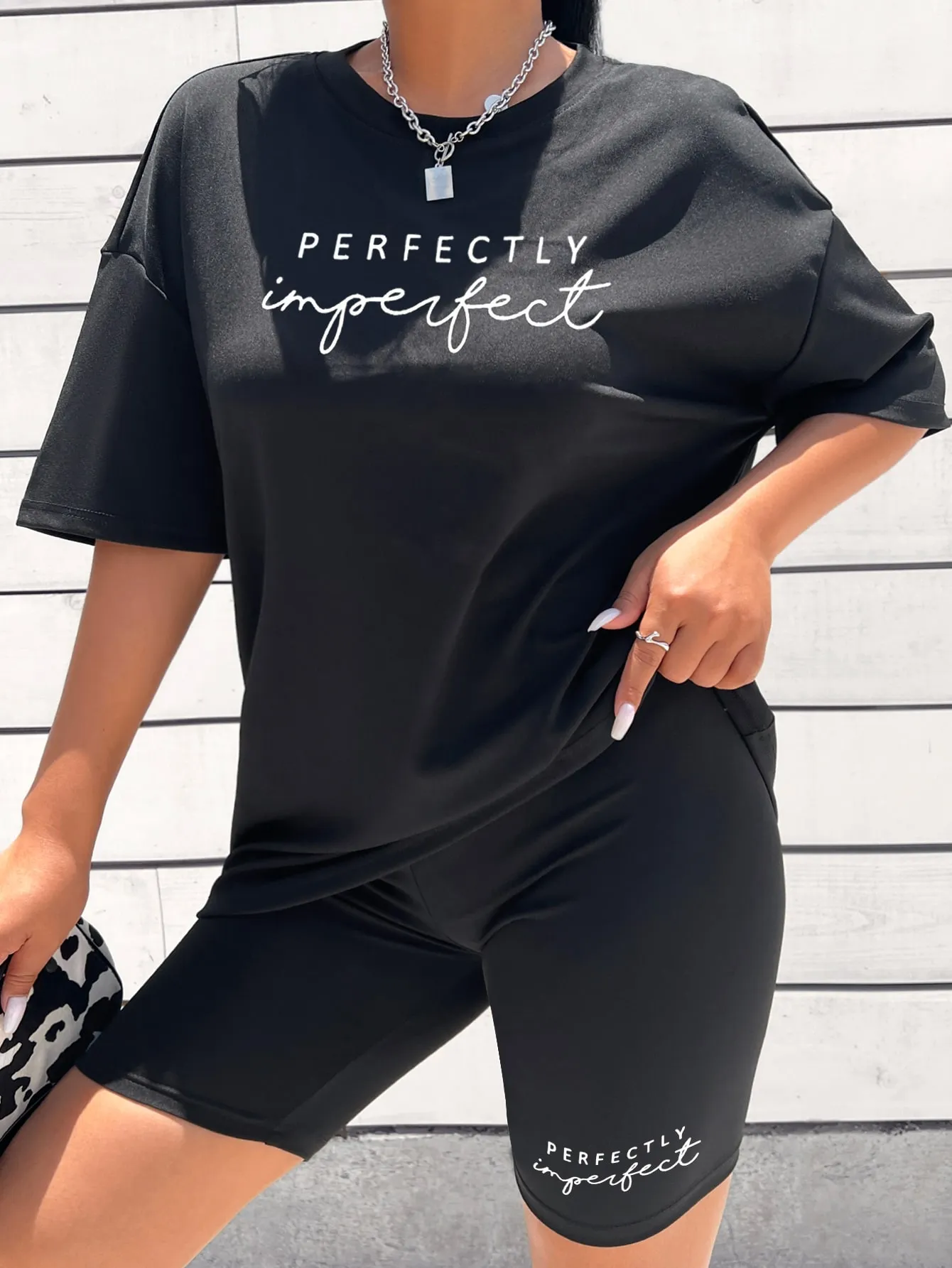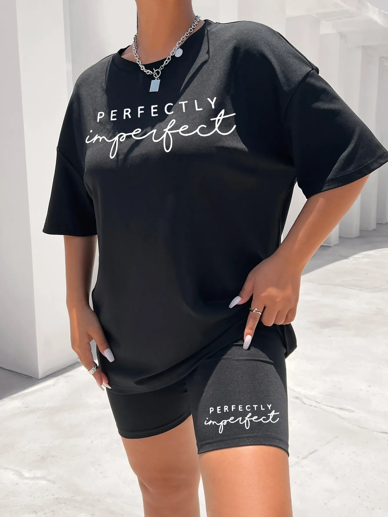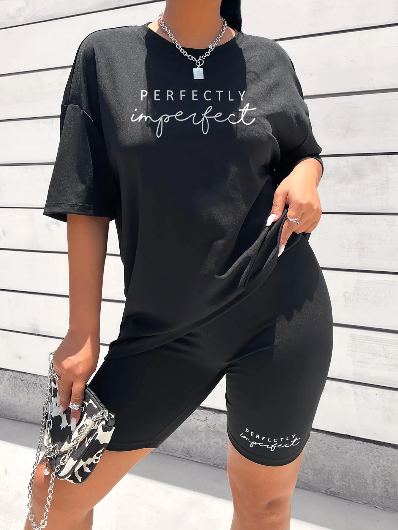 SMY Letter Graphic Drop Shoulder Tee & Biker Shorts
