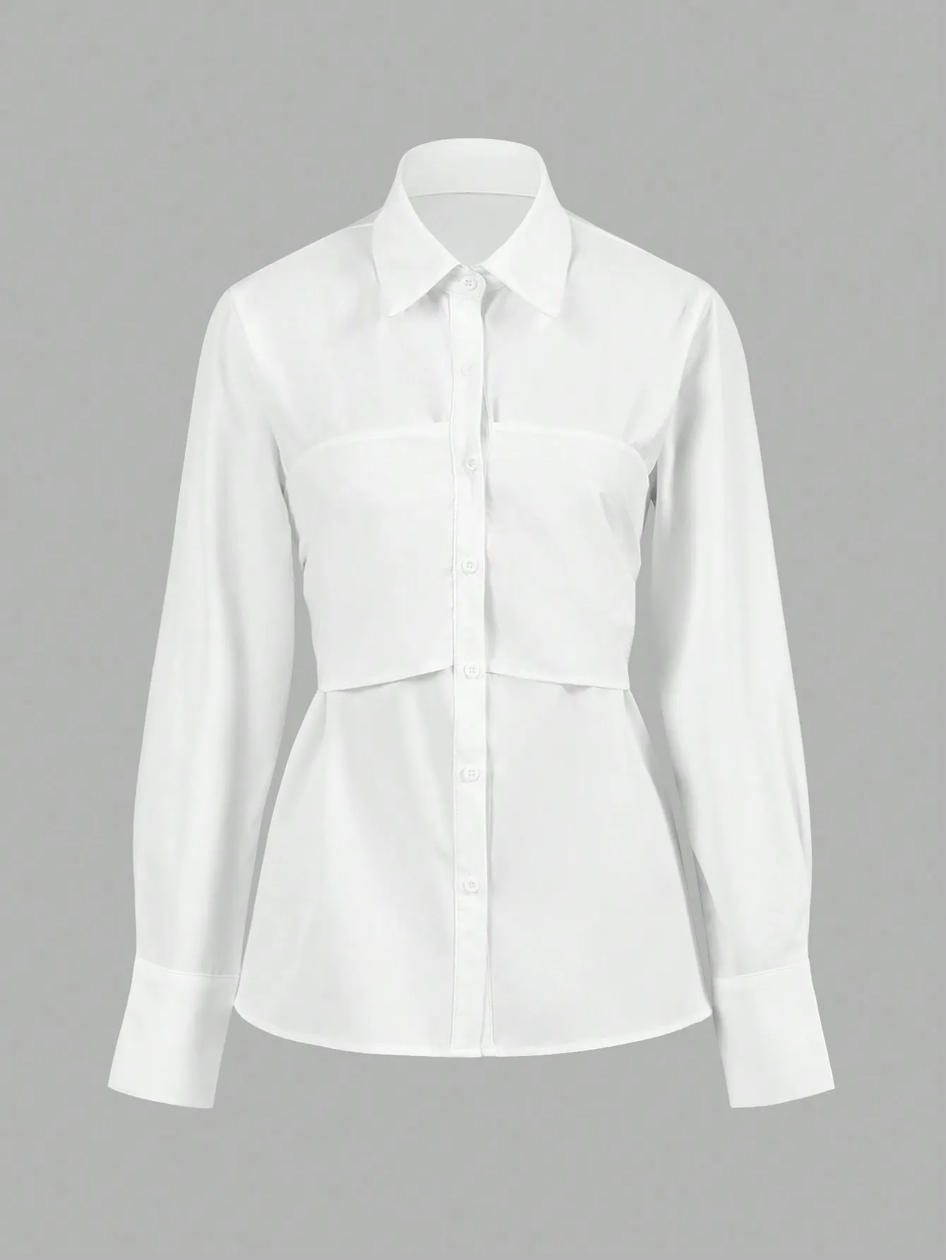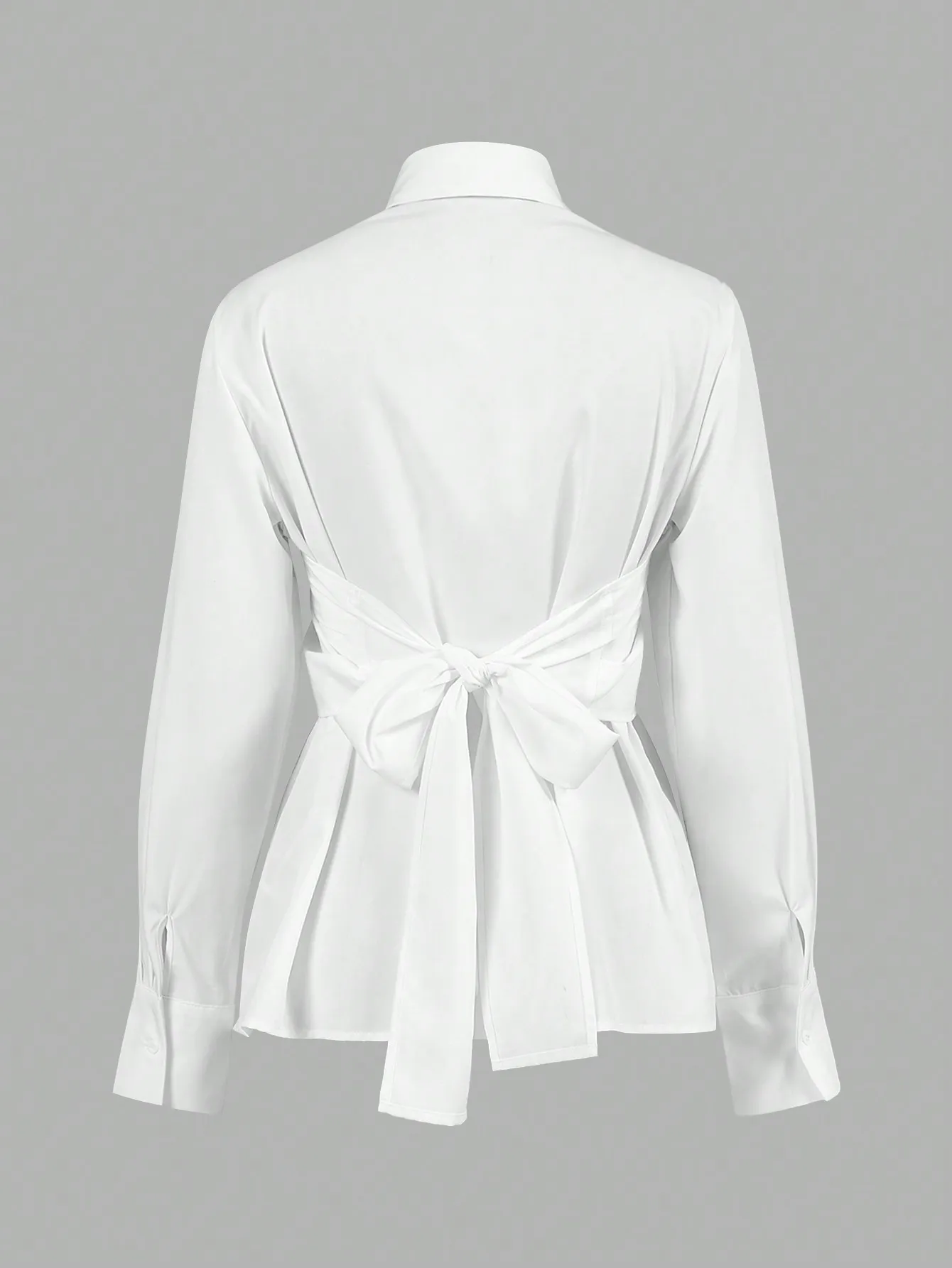 SMY Privé Women’s Casual Solid Color Drawstring Waist Shirt, Autumn