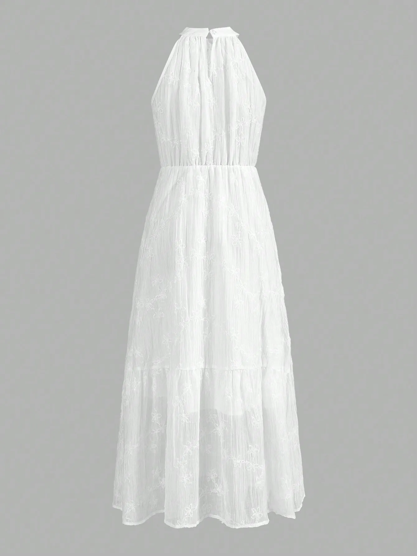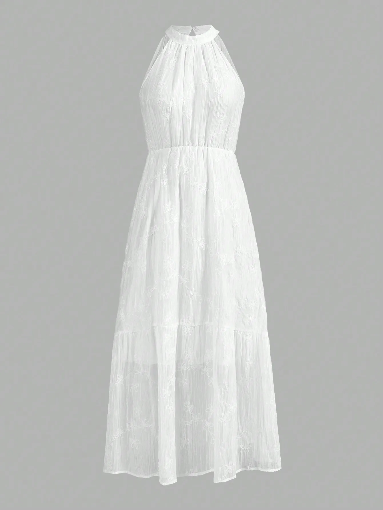 Be the first to review “SMY Privé Women’s Solid Color Sleeveless Floral Embroidered Ruffle Hem Halter Tank Dress, Fashionable” Cancel reply