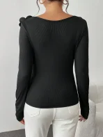 Be the first to review “SMY 1pc Women’s Fashionable Elegant Black 3D Floral Knit Ribbed T-Shirt” Cancel reply