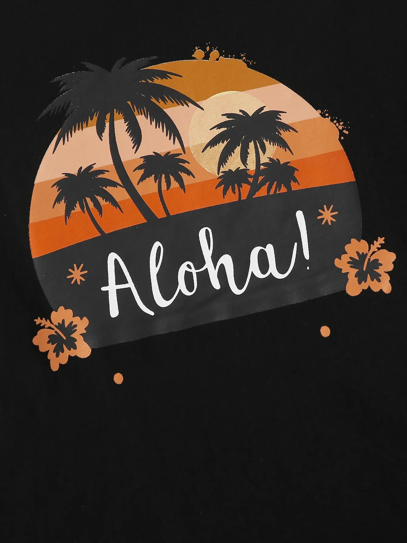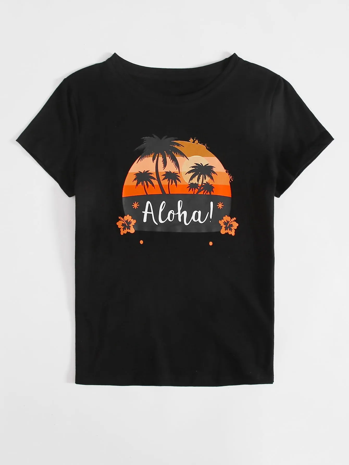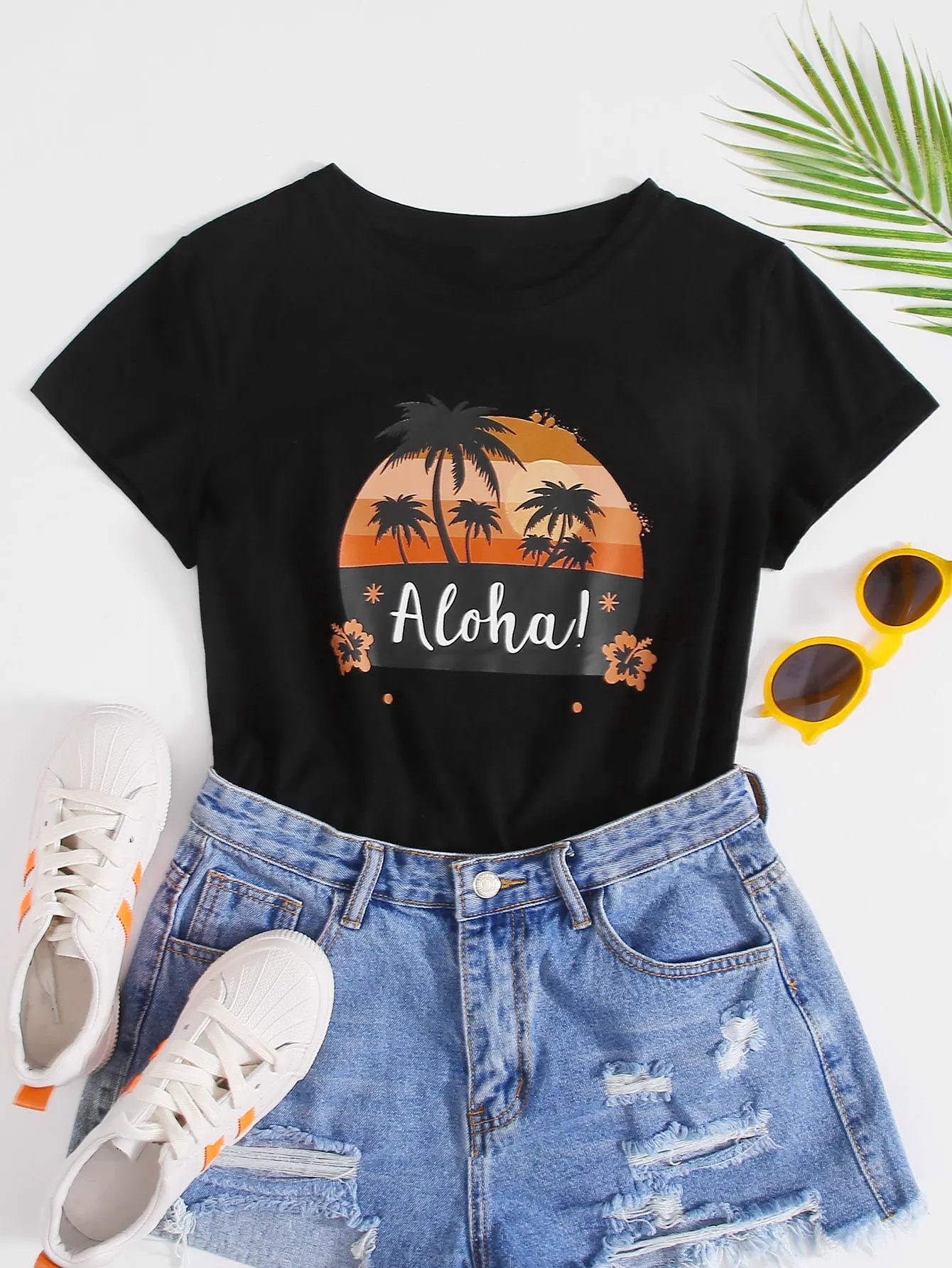 SMY ALOHA Pattern Printed Small Round Neck Simple T-Shirt