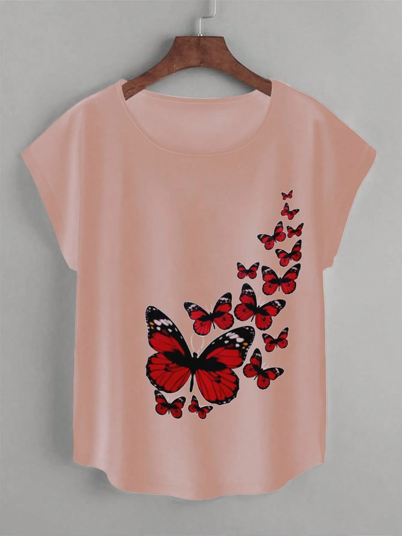 SMY Butterfly Pattern Casual Round Neck Short Sleeved T-Shirt