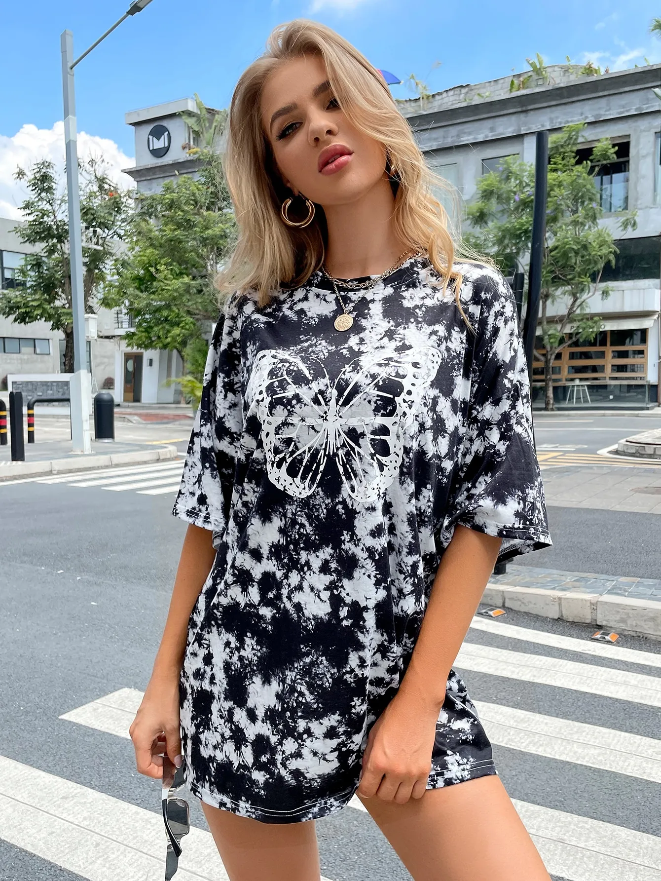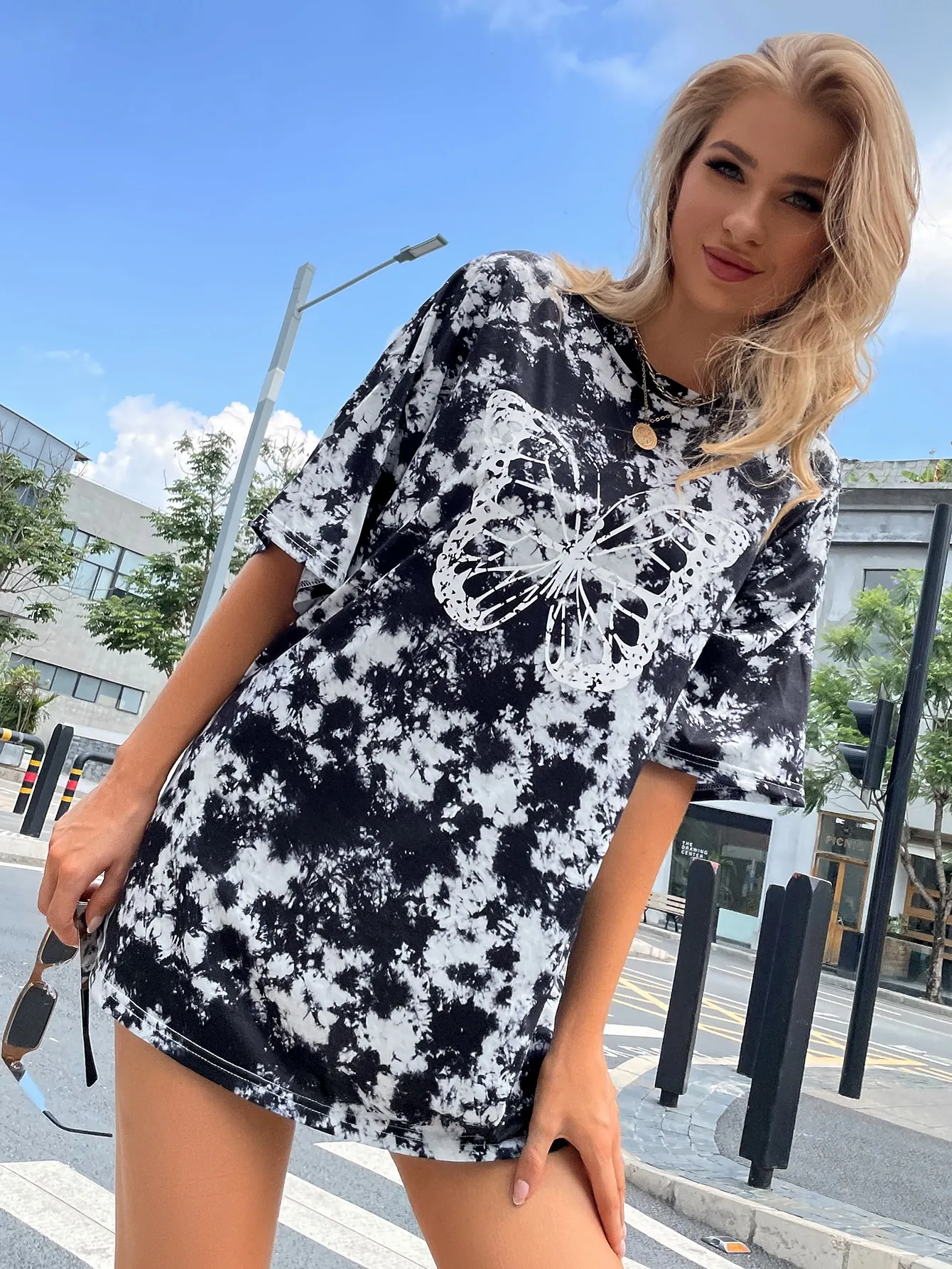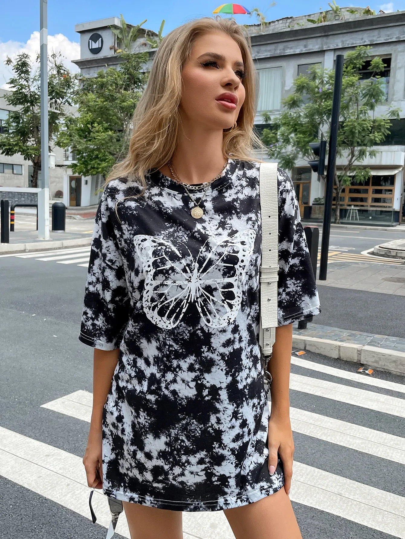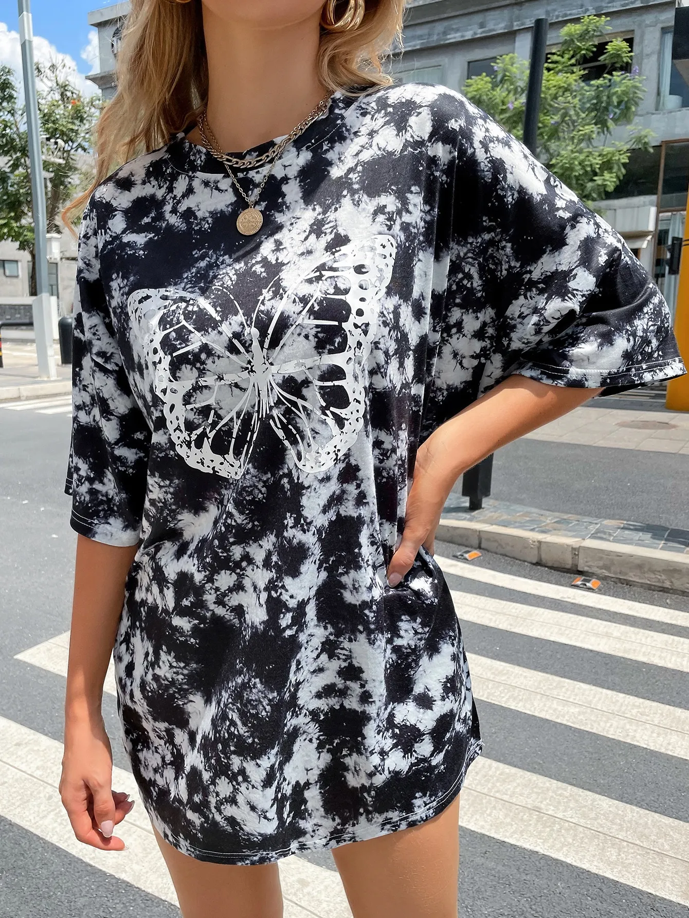SMY Butterfly Pattern Casual Round Neck T-Shirt