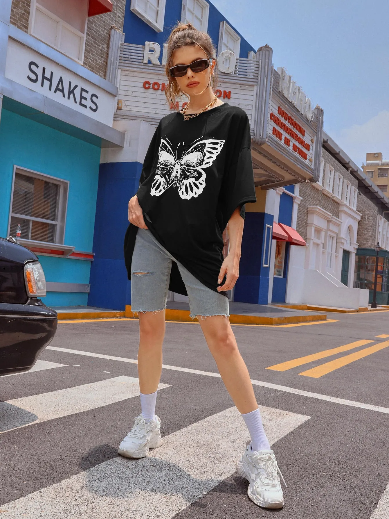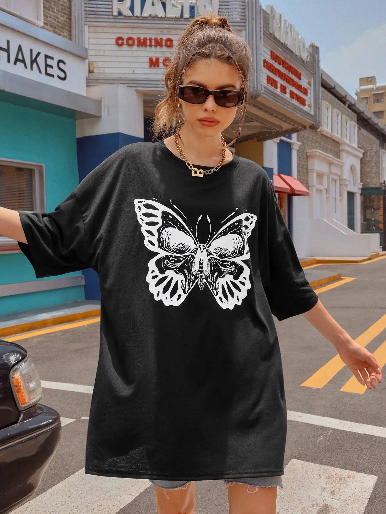 SMY Butterfly Pattern Casual Round Neck T-Shirt