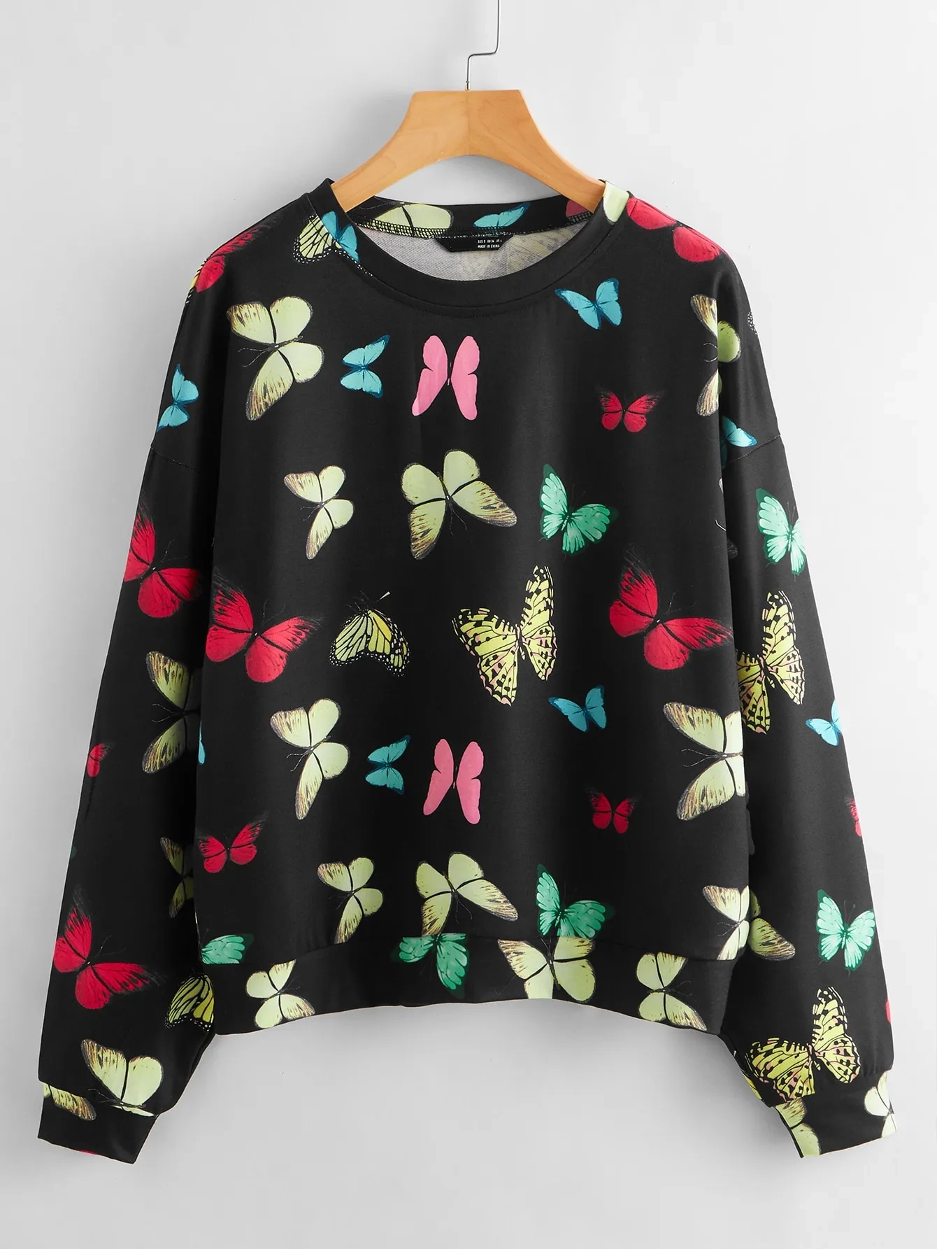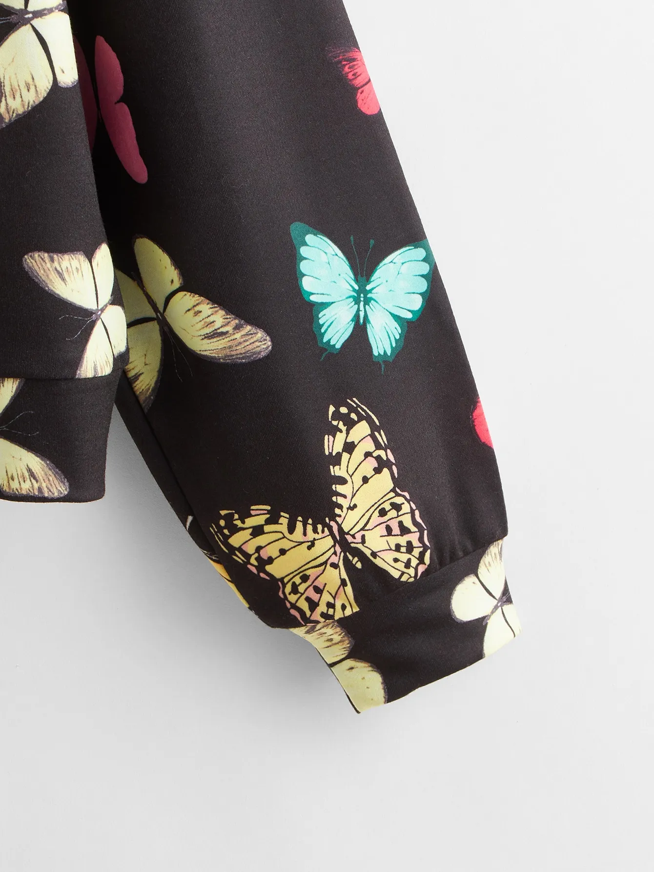 SMY Butterfly Pattern Small Round Neck Regular Printed Hoodie