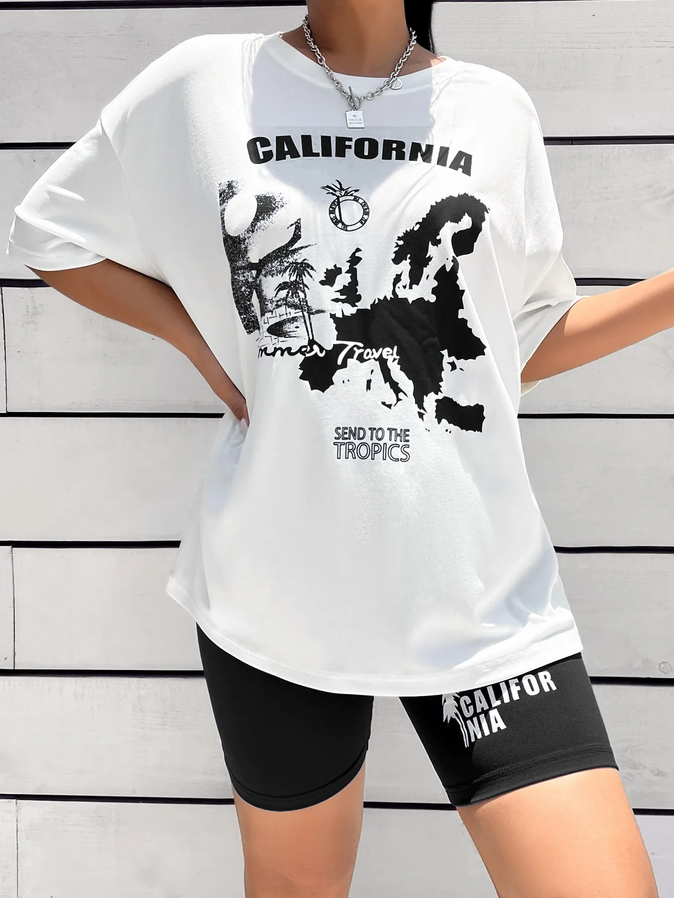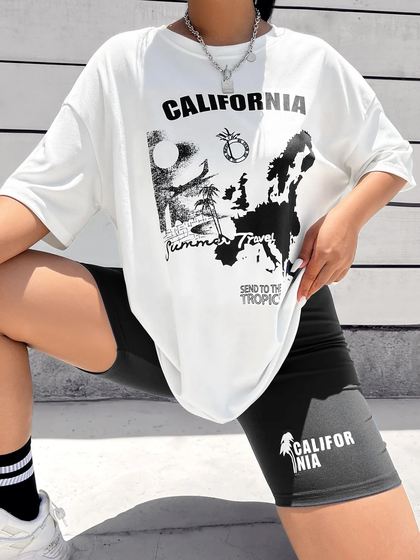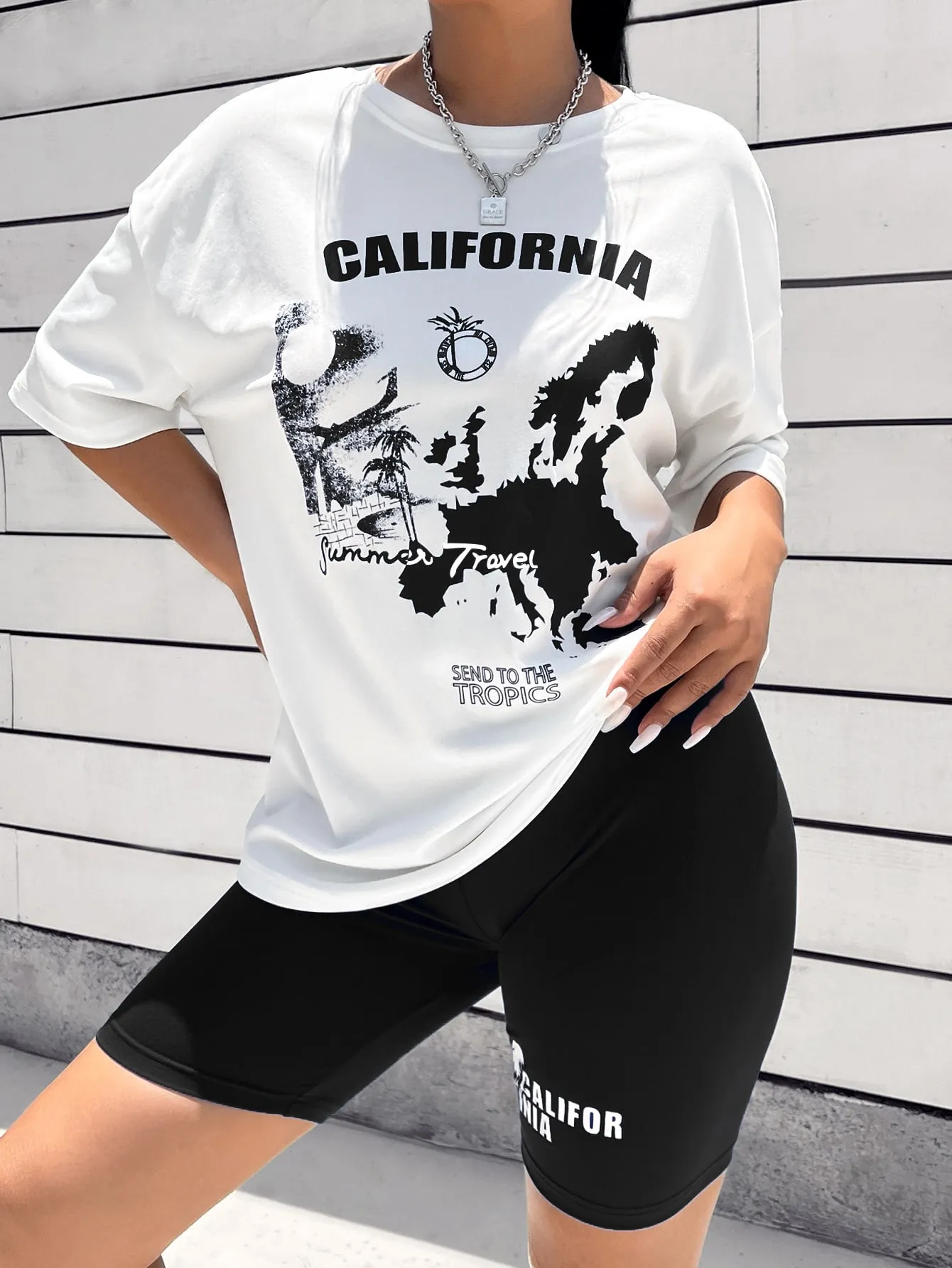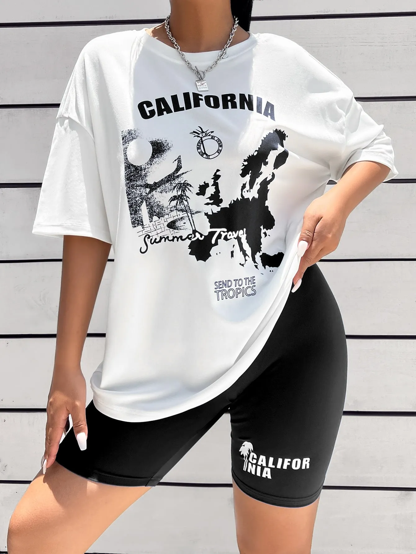 SMY California Landmark Pattern Two Piece Set Of Casual Round Neck Shorts