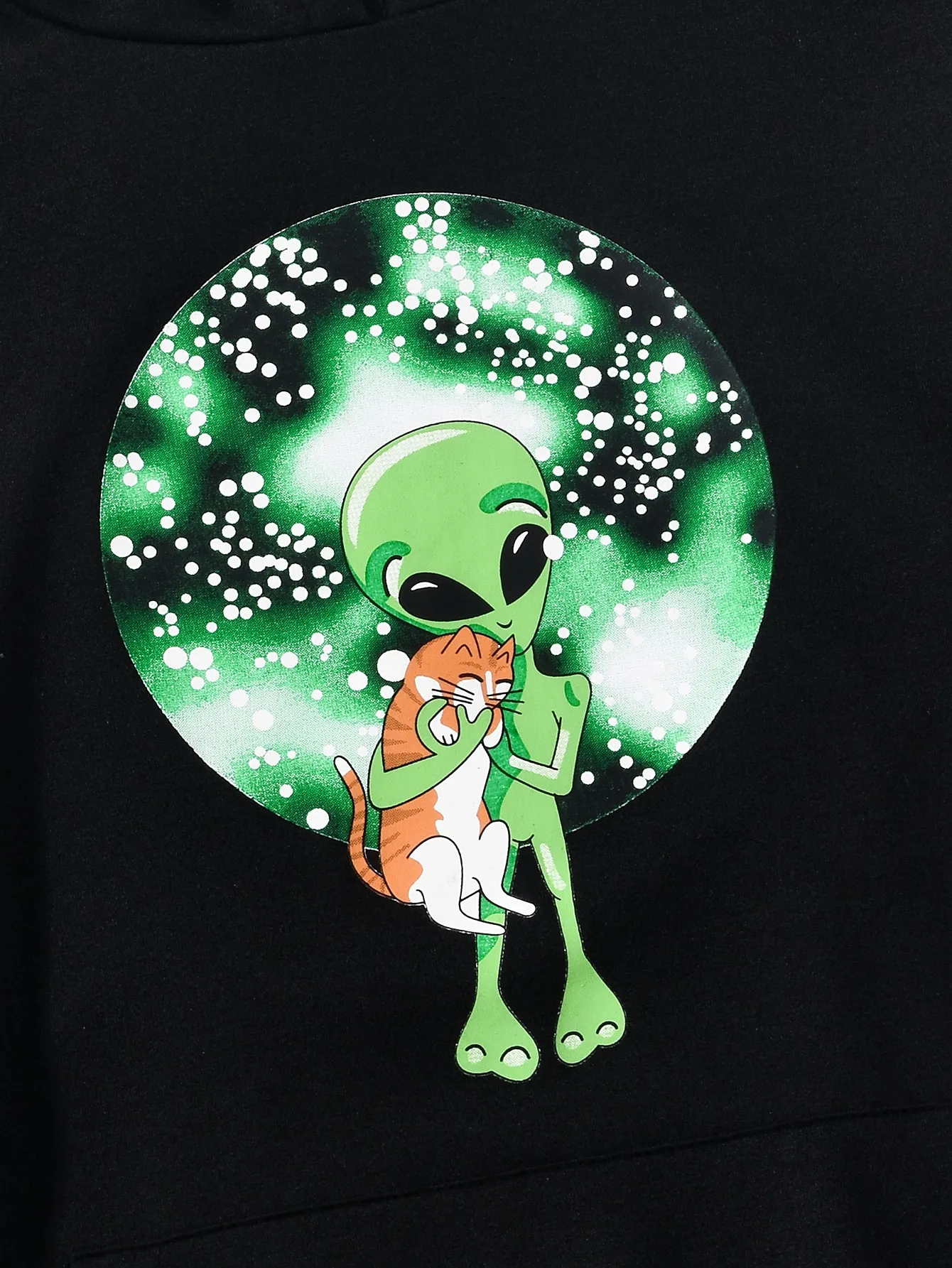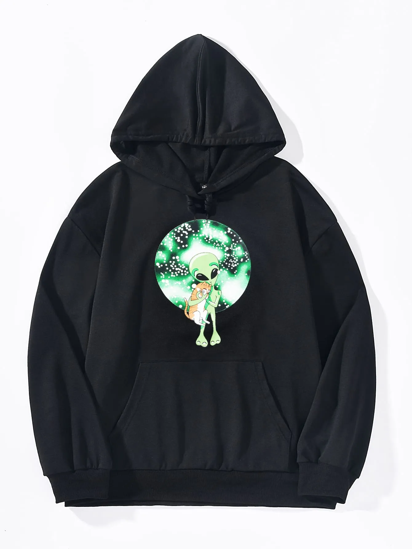 SMY Casual Alien And Cat Pattern Hooded Regular Hoodie