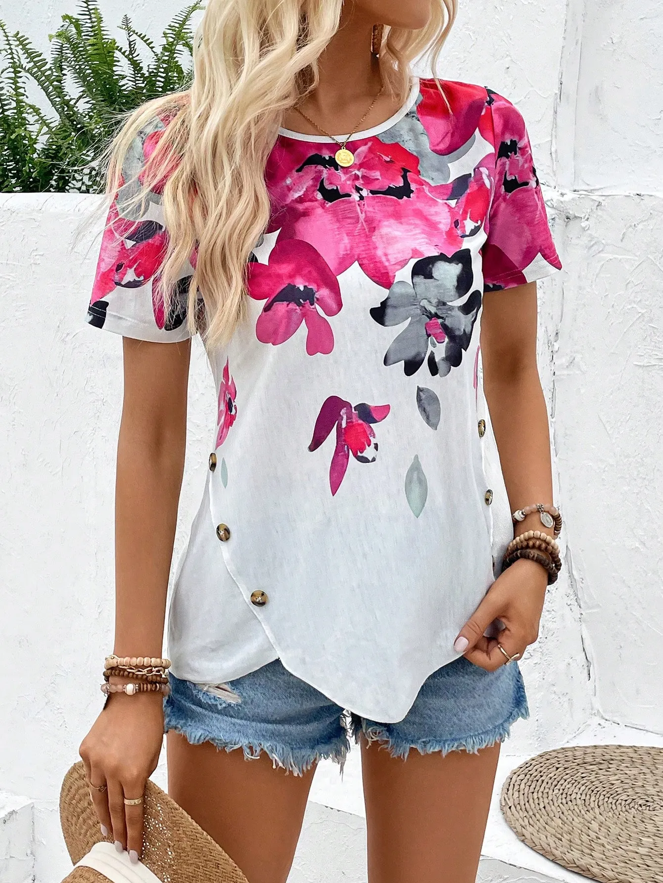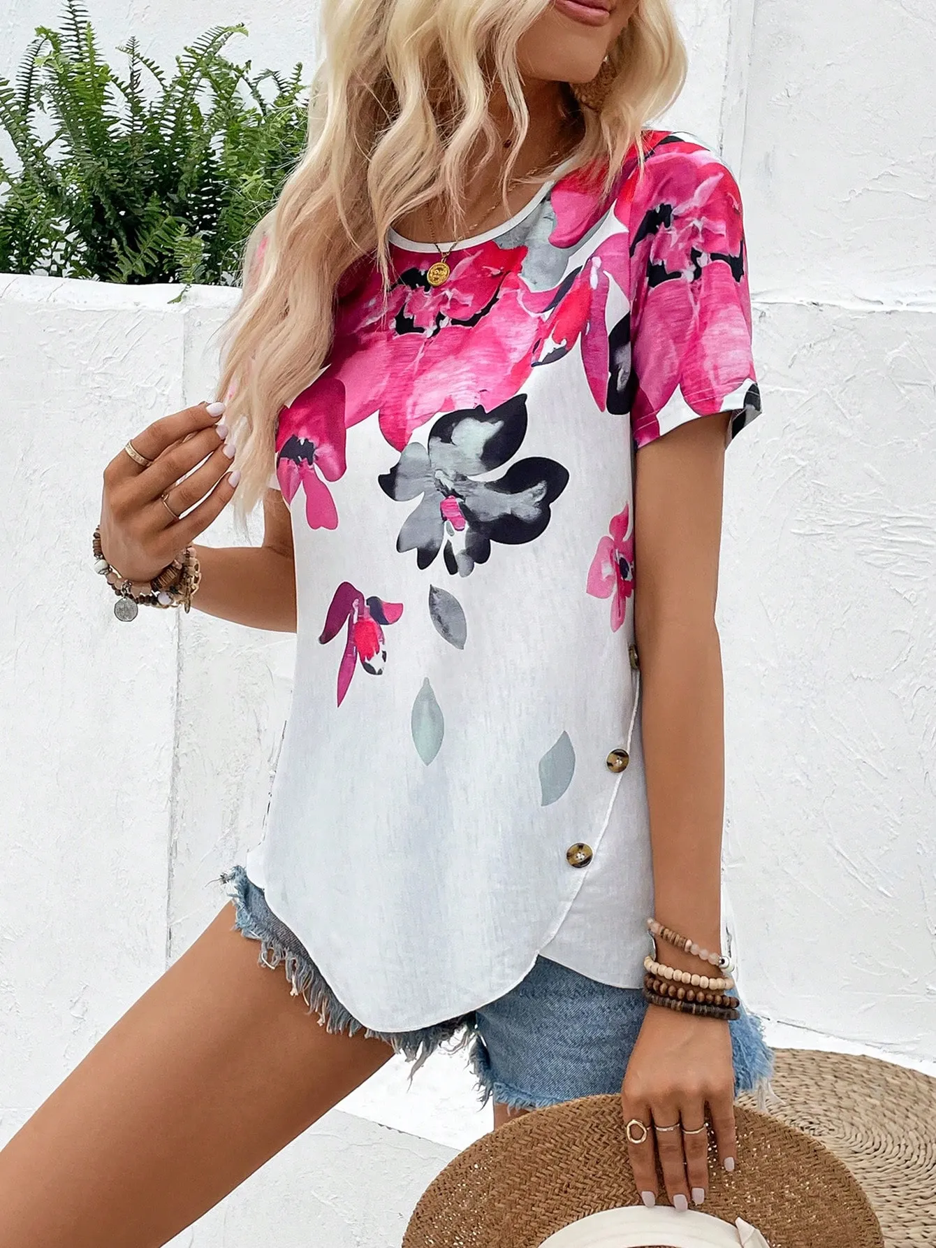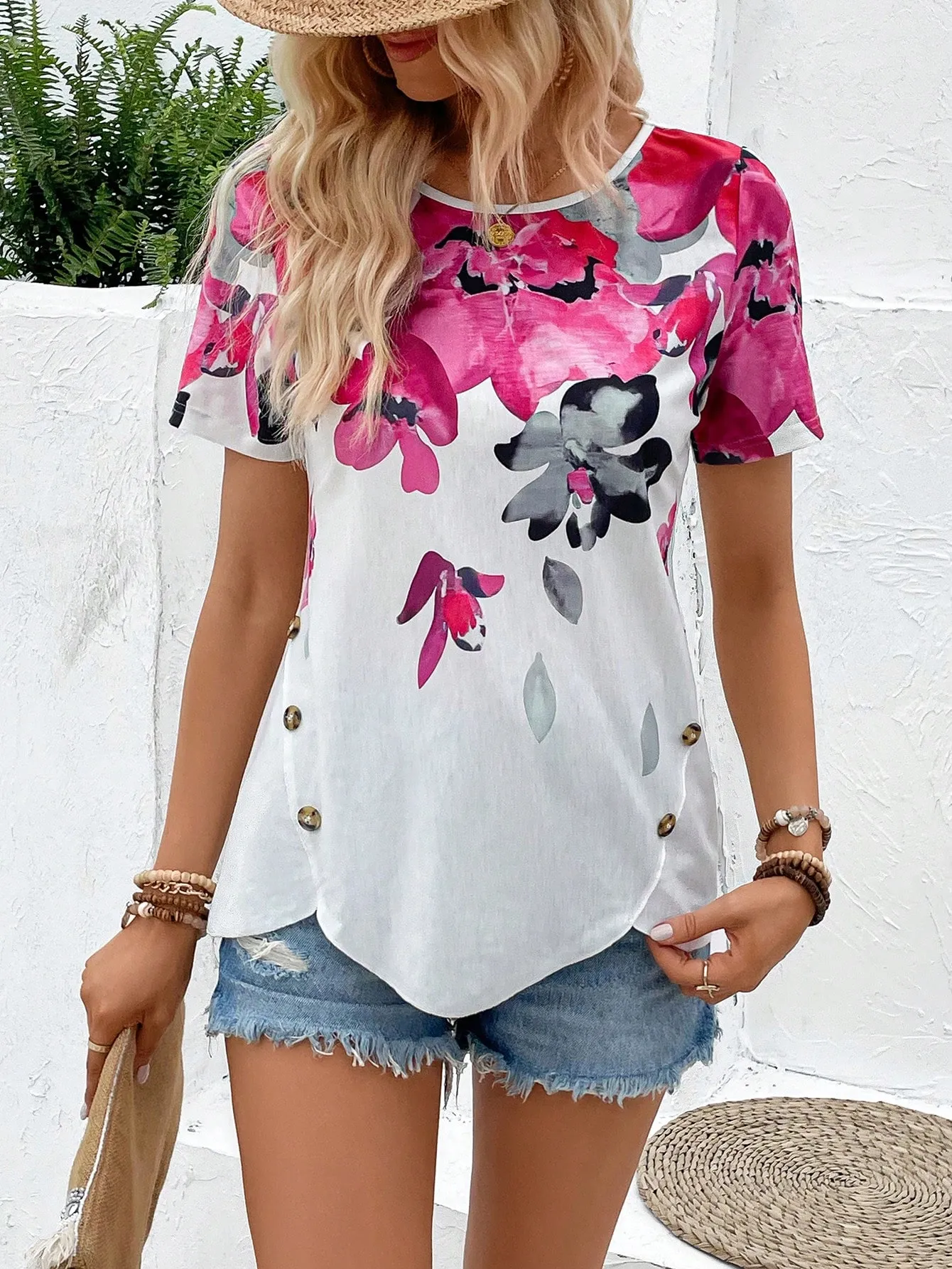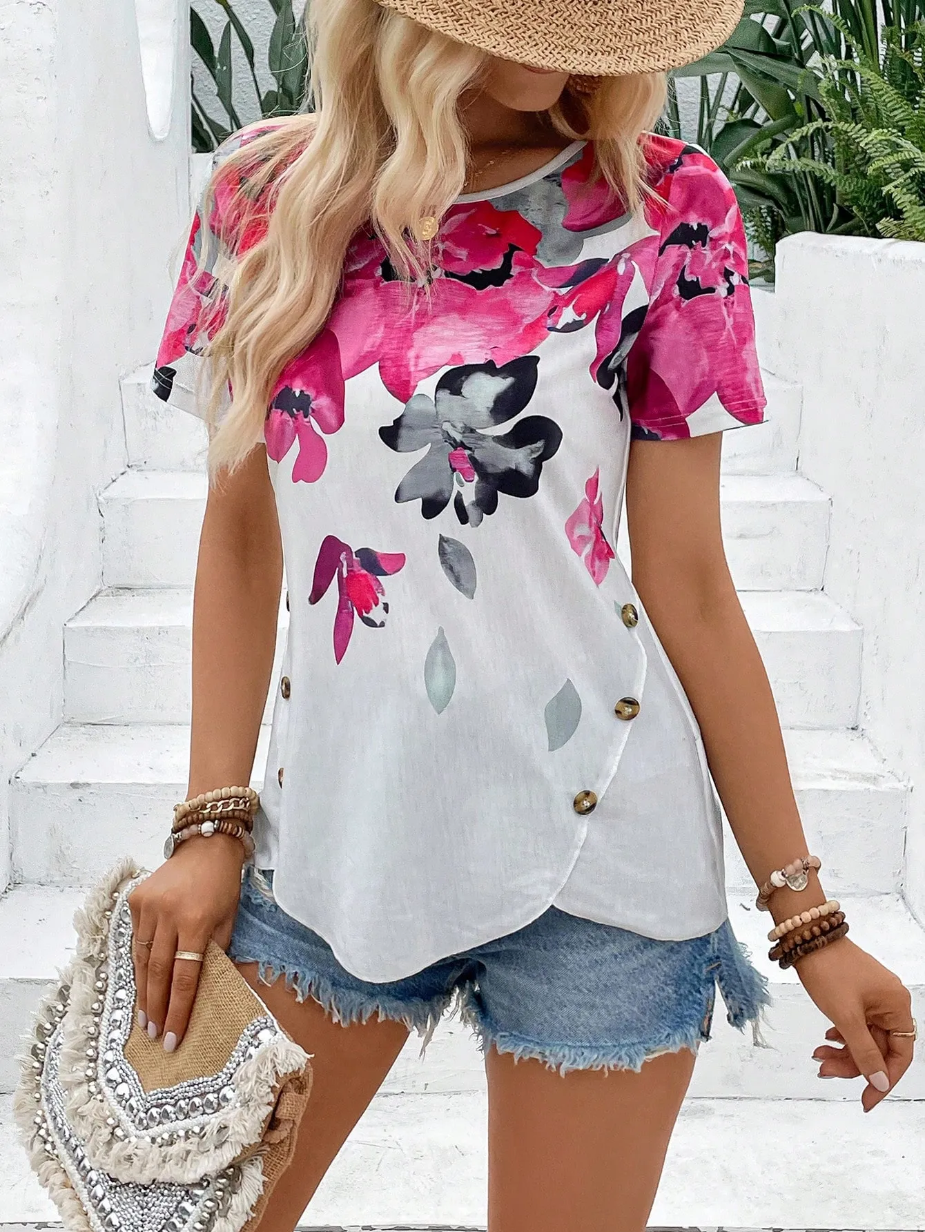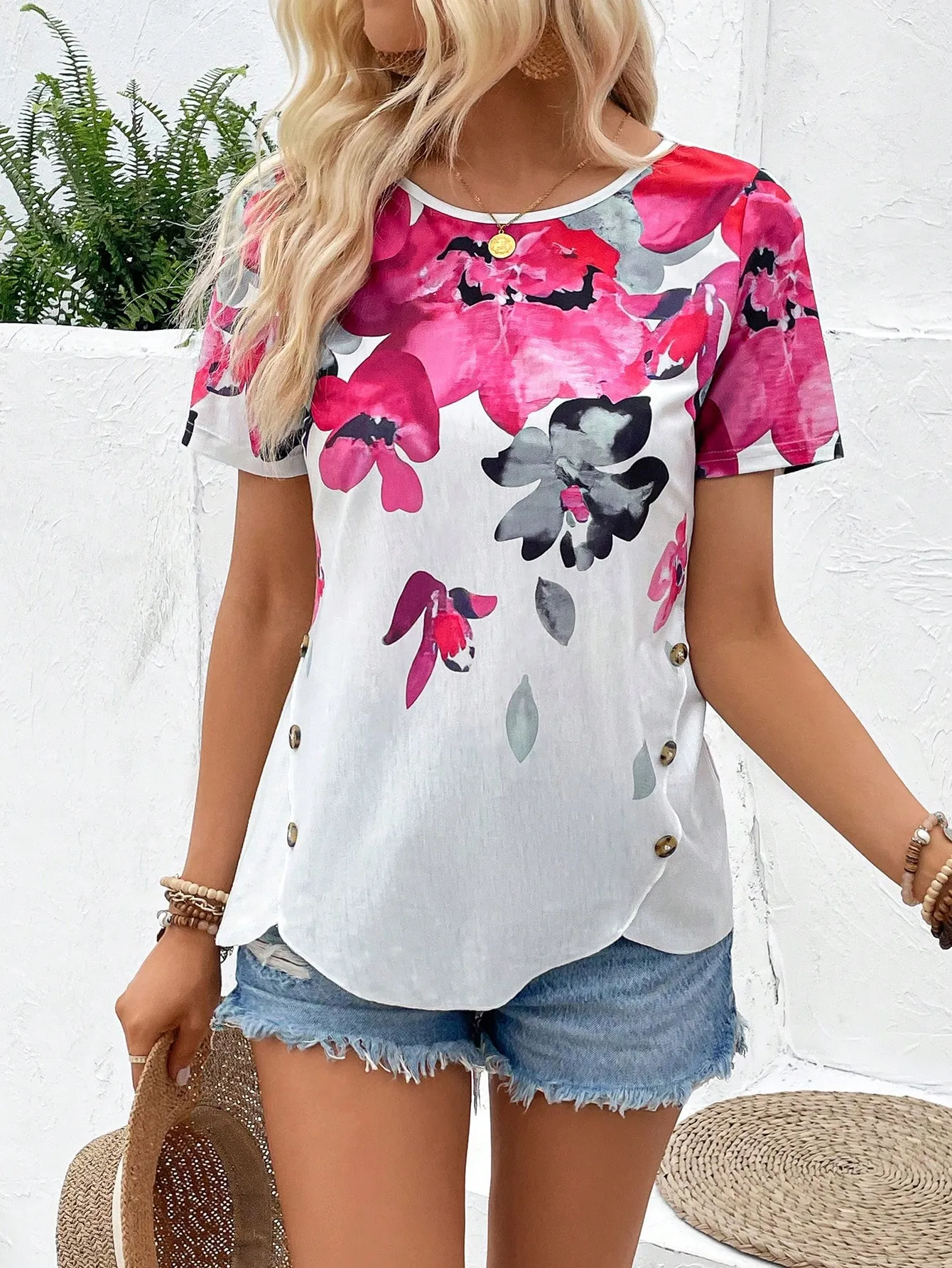 Tags: 2025 S/S, Casual Style, Daily Essentials, Elegant Fashion, Floral Print, Graphic, S/S, Tops, Tops & Tees, Work Outfits