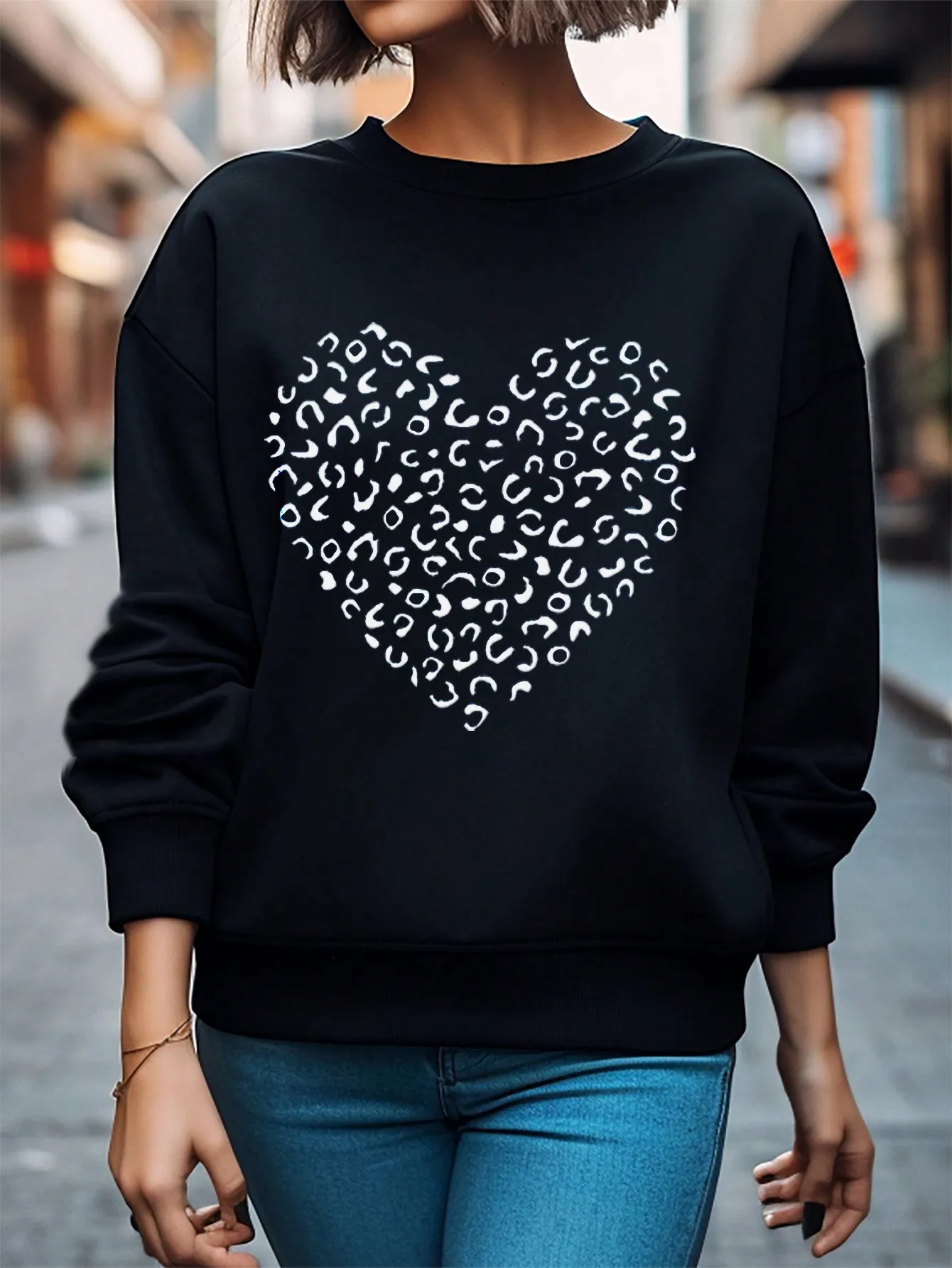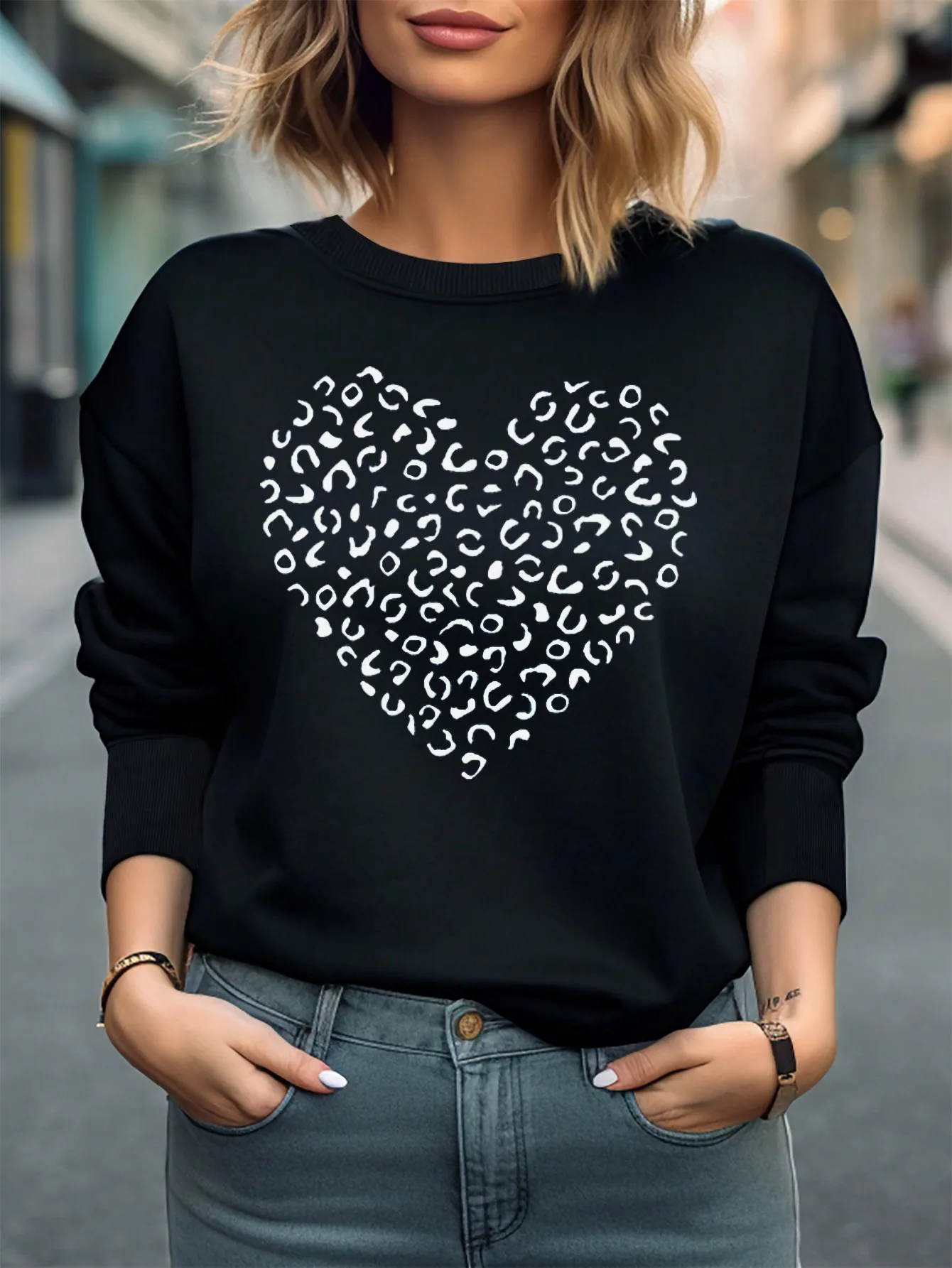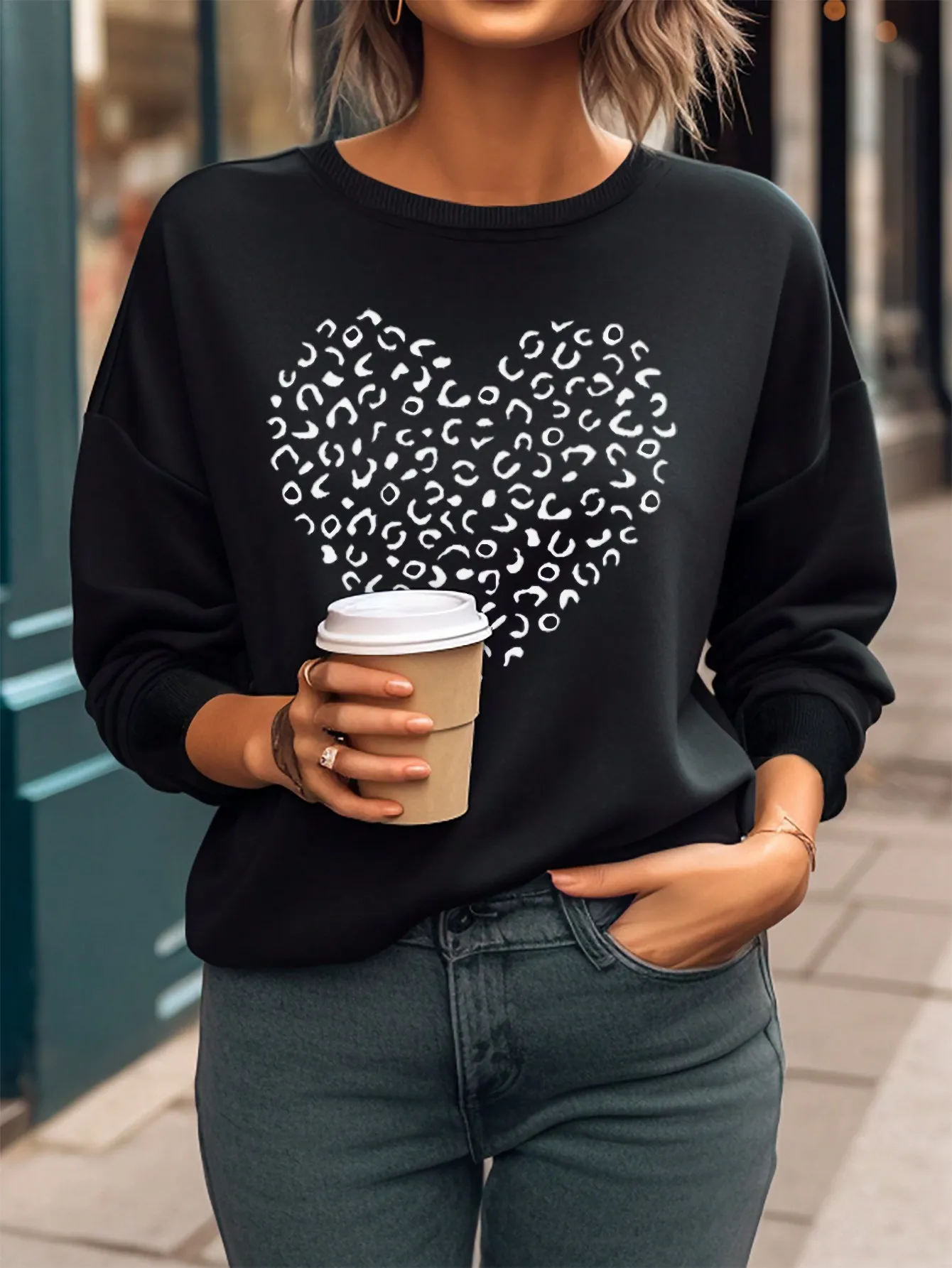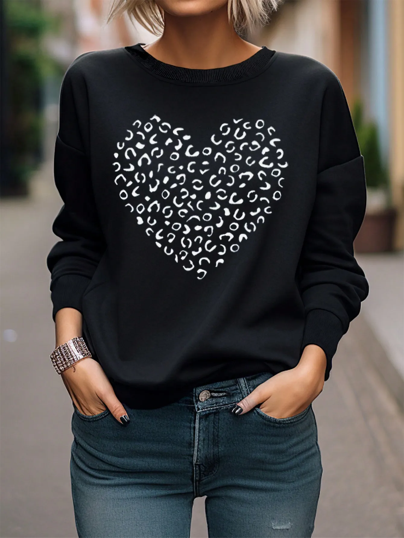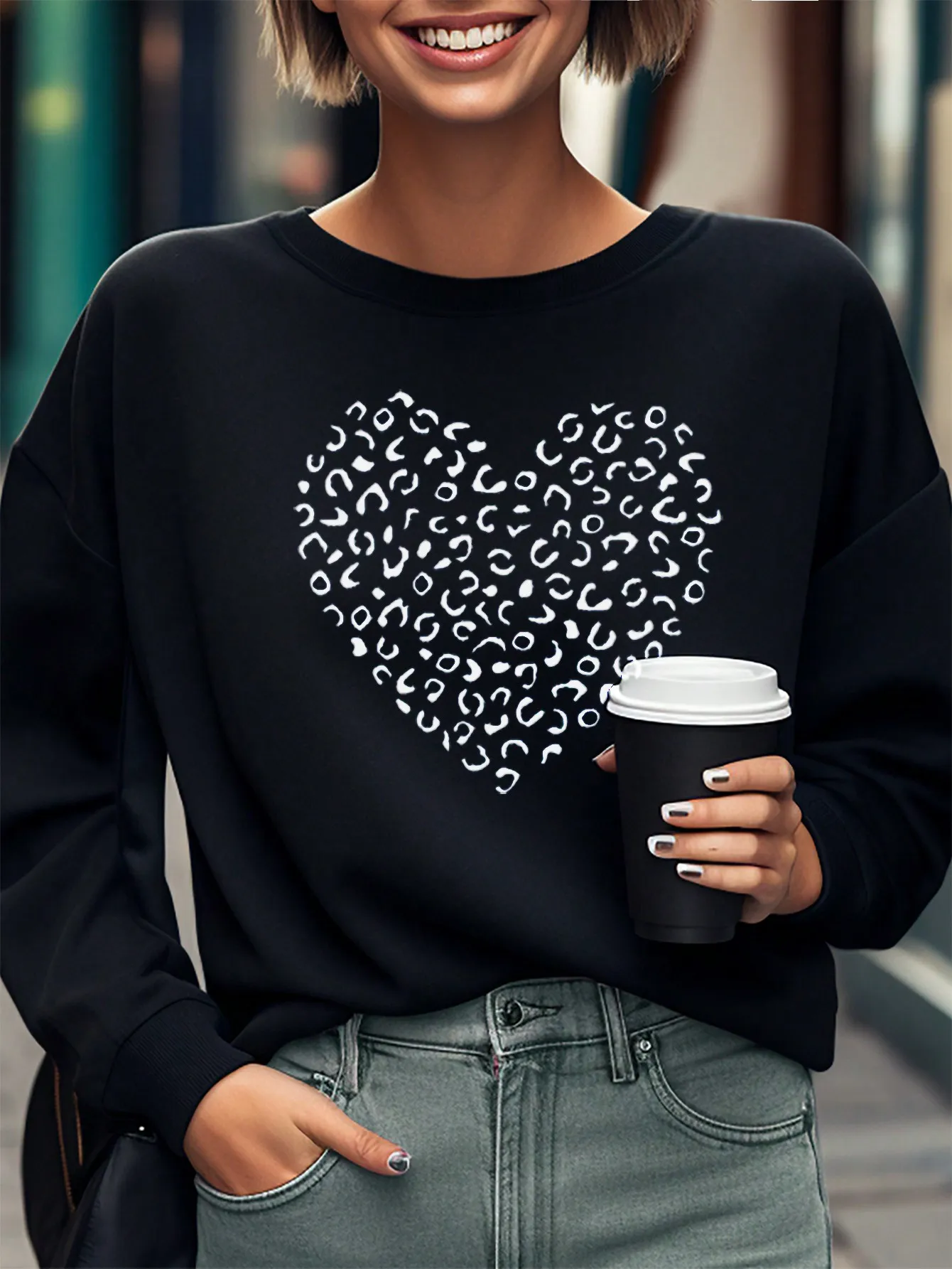 SMY Casual Big Heart Printed Small Round Neck Long Sleeved Sweatshirt