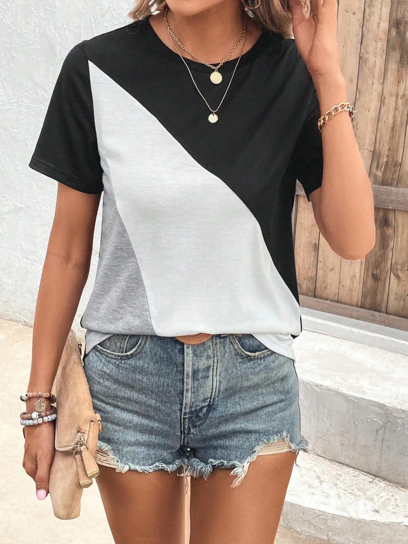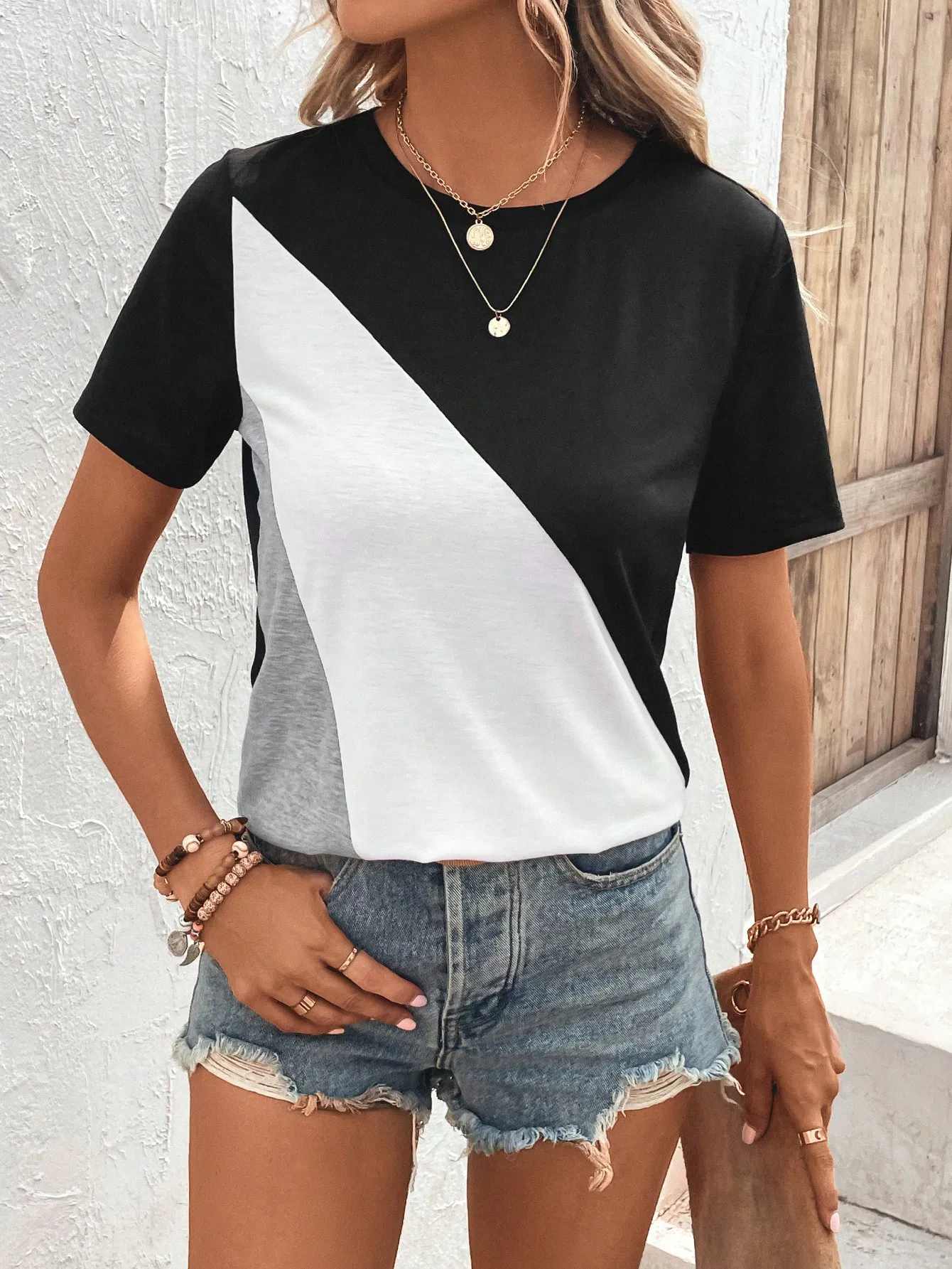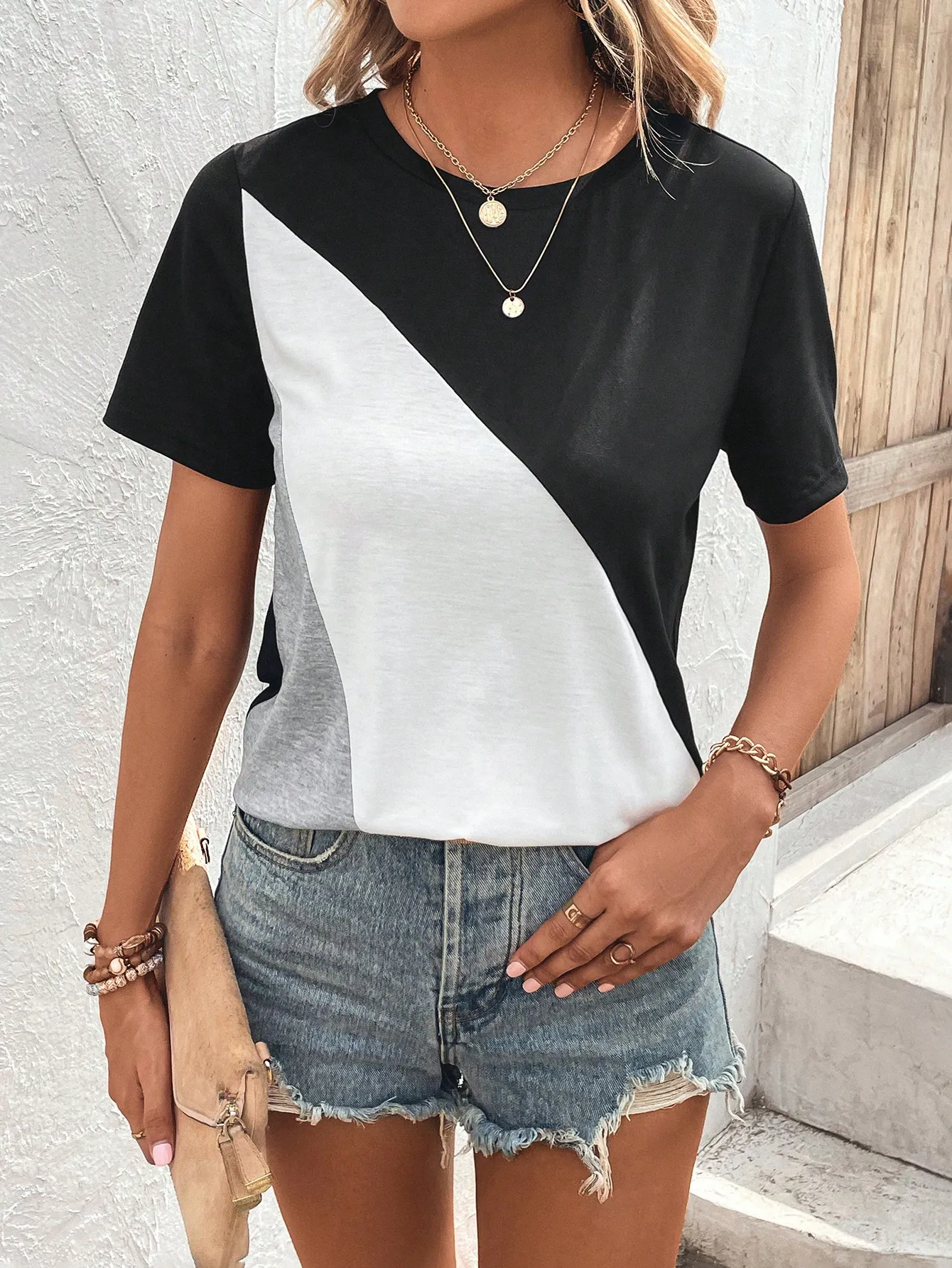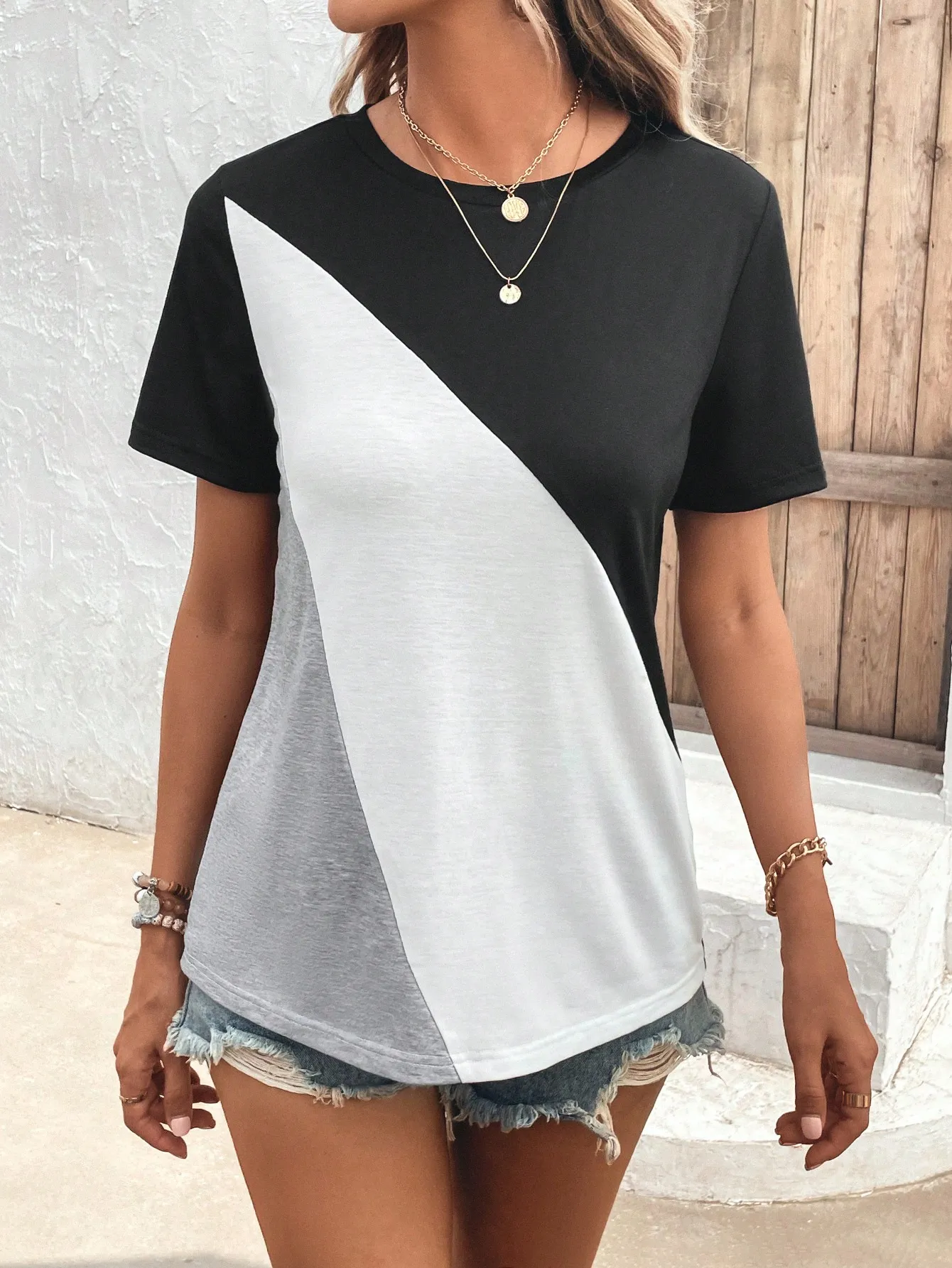 SMY Casual Color Block Trend Small Round Neck T-Shirt
