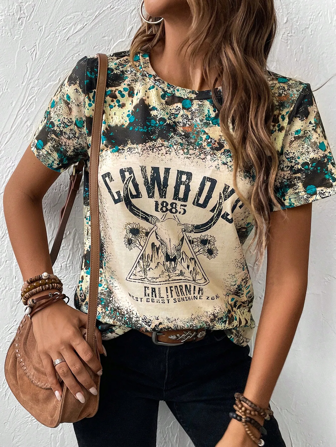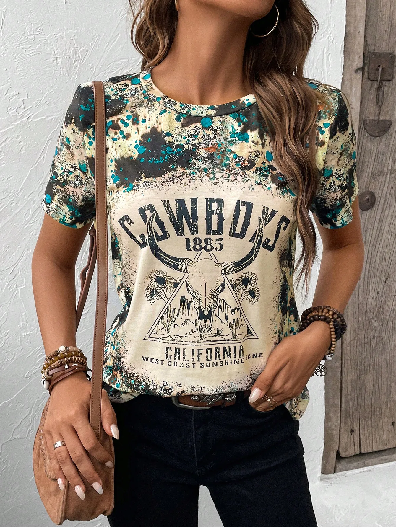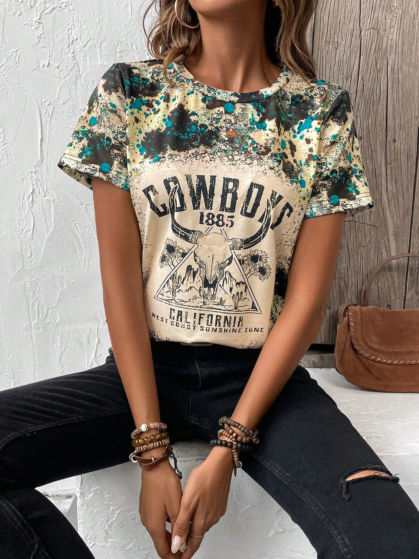 SMY Casual COWBOYS Pattern Trend Small Round Neck T-Shirt