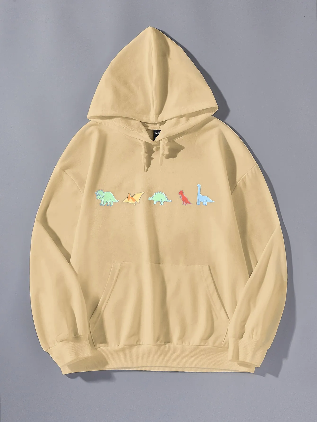 SMY Casual Dinosaur Pattern Drawstring Hooded Regular Hoodie