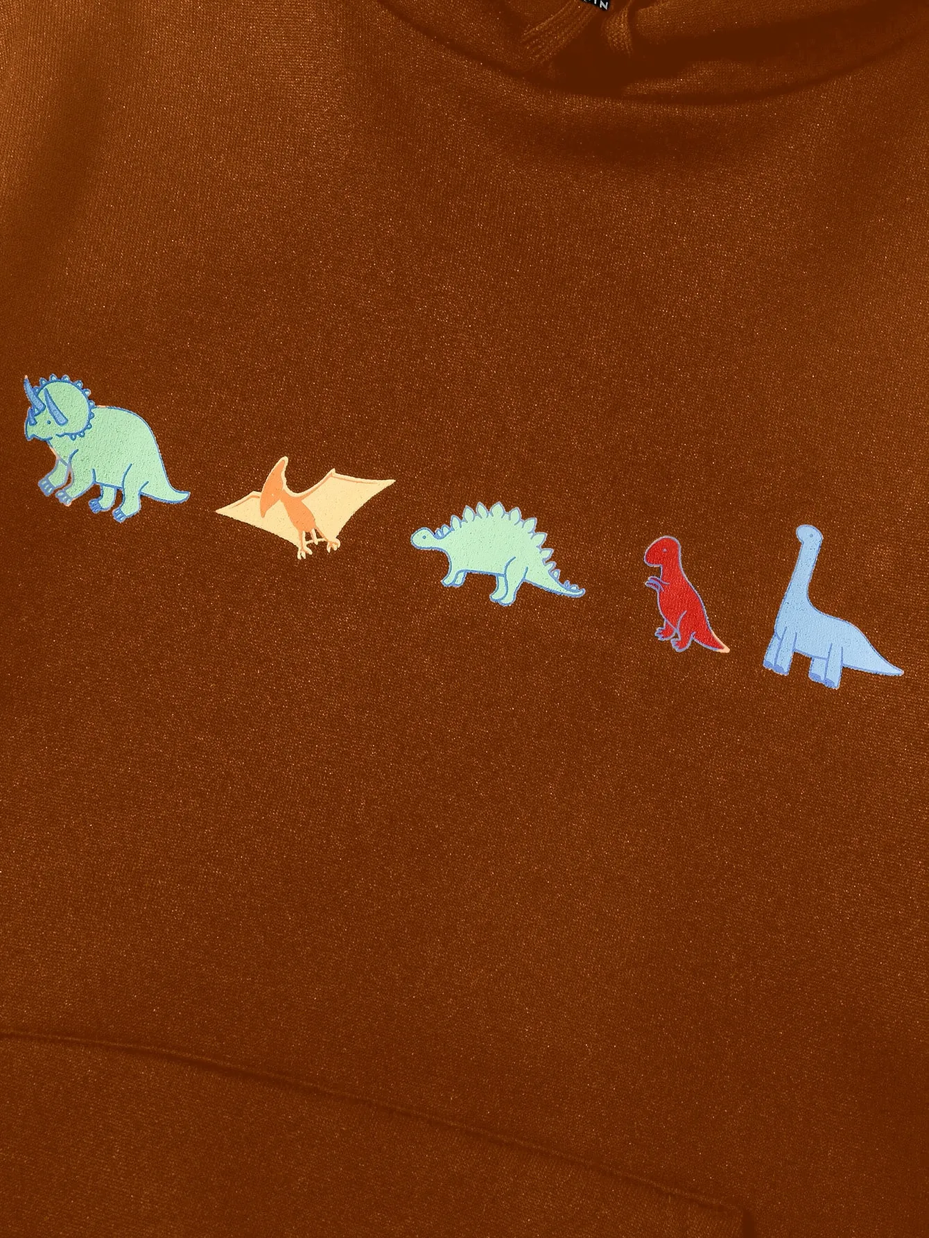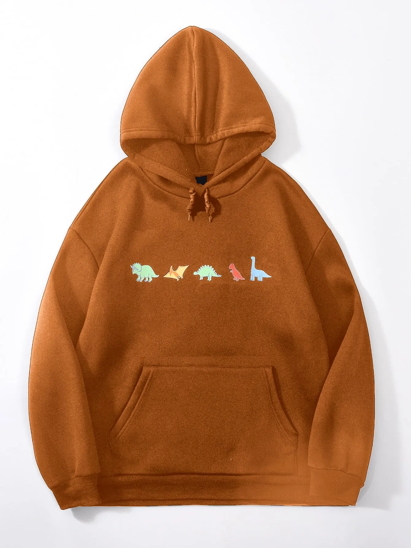 SMY Casual Dinosaur Pattern Drawstring Hooded Regular Hoodie