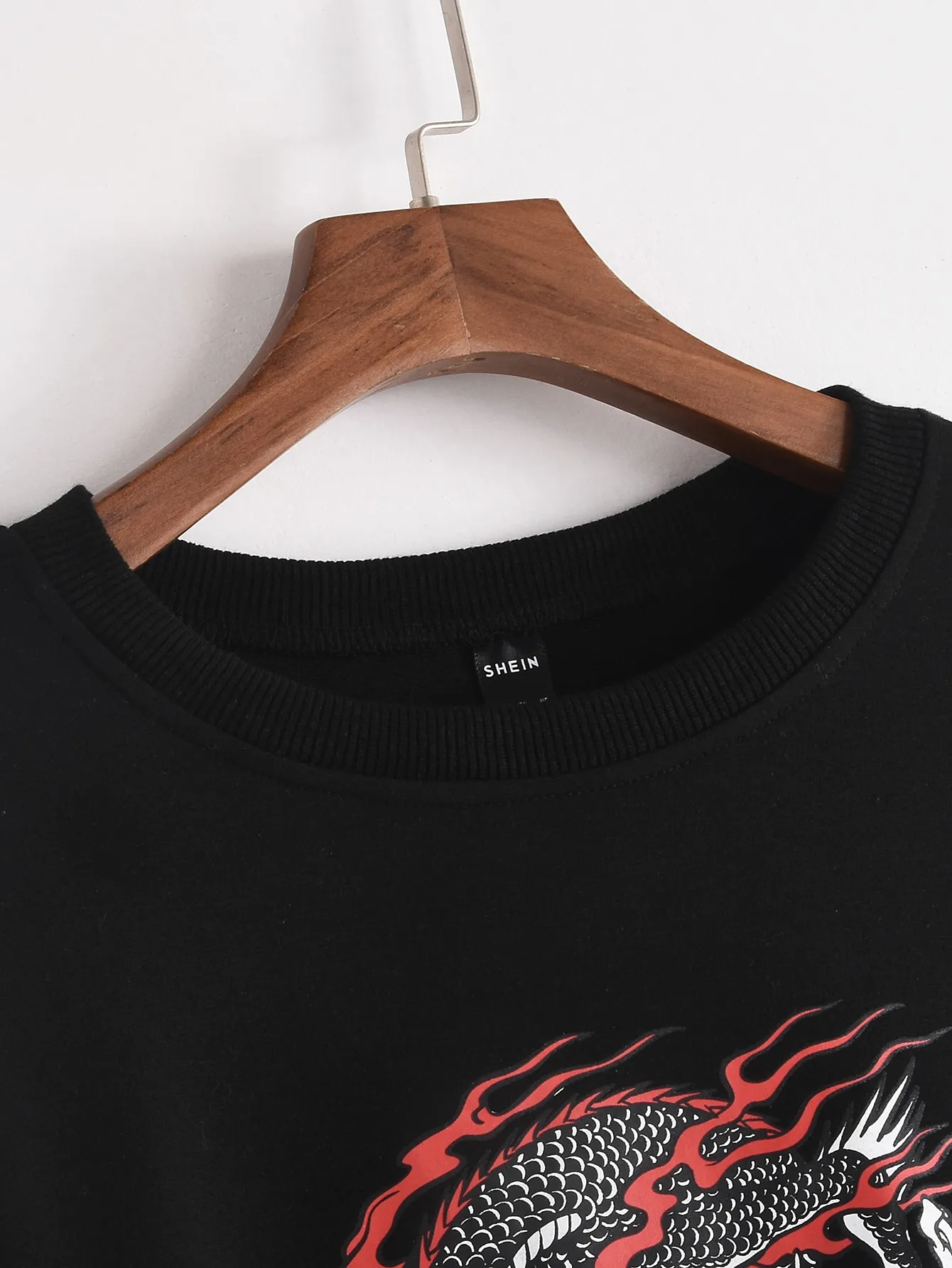 SMY Casual Dragon Pattern Round Neck Long Hoodie