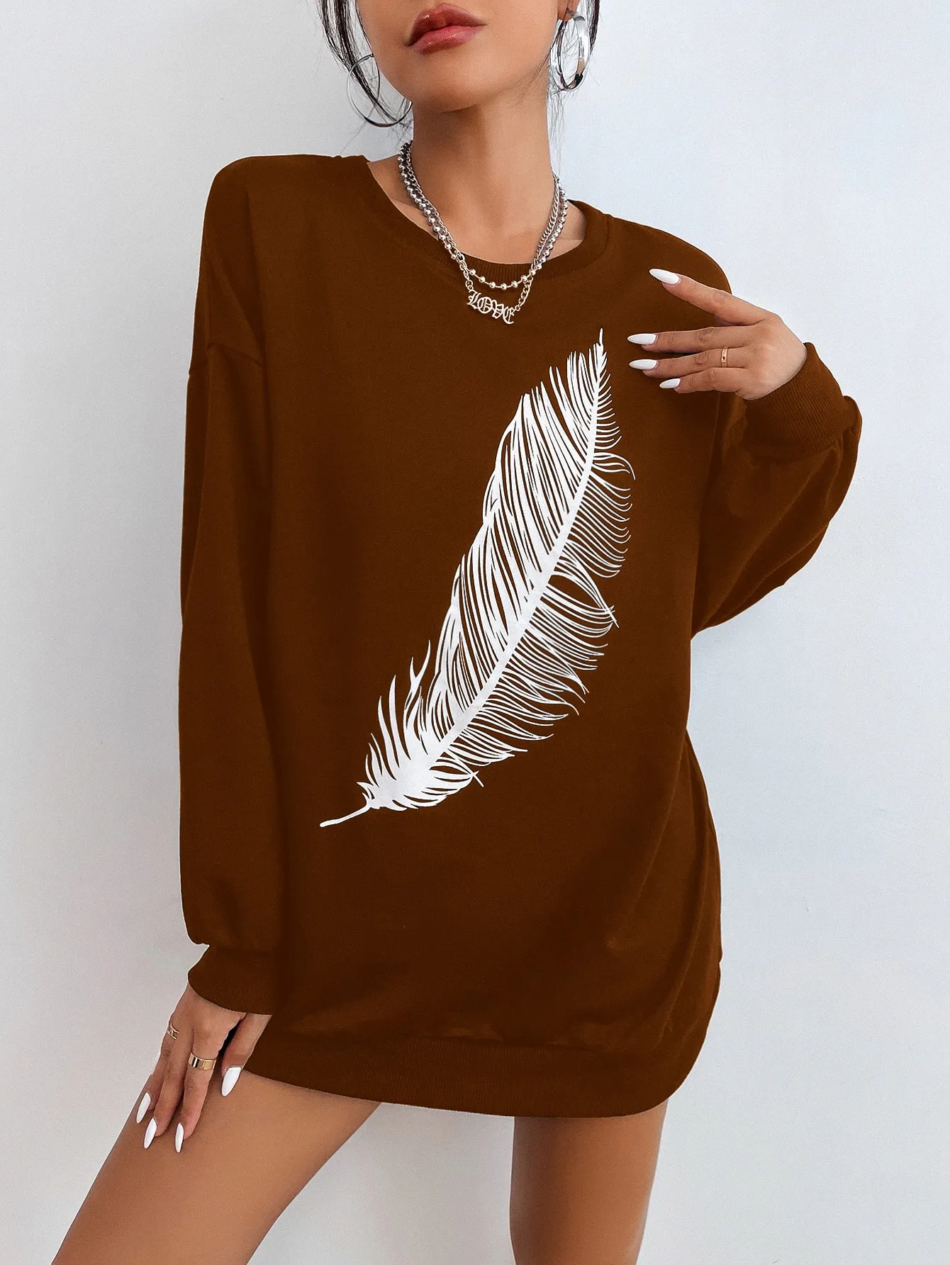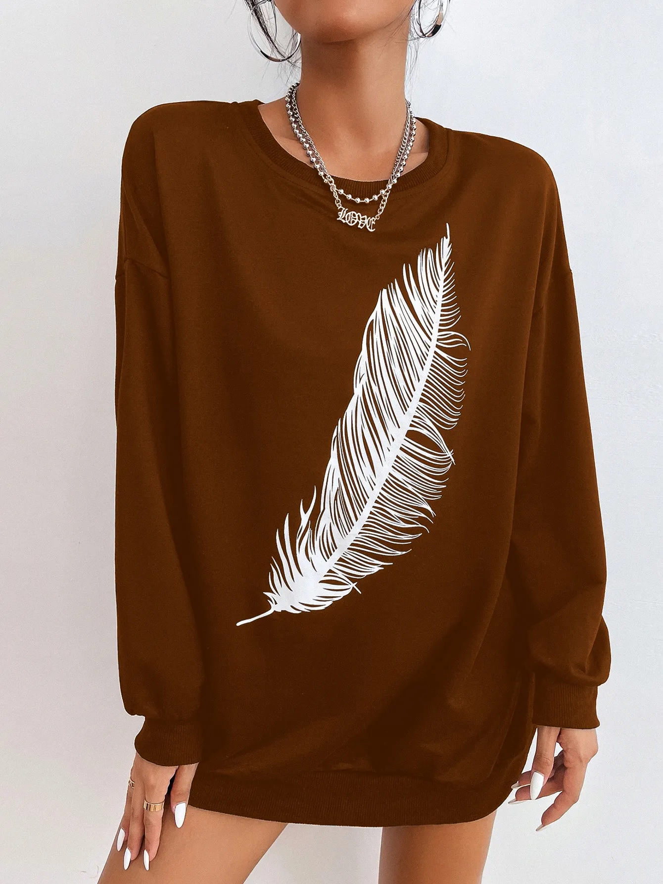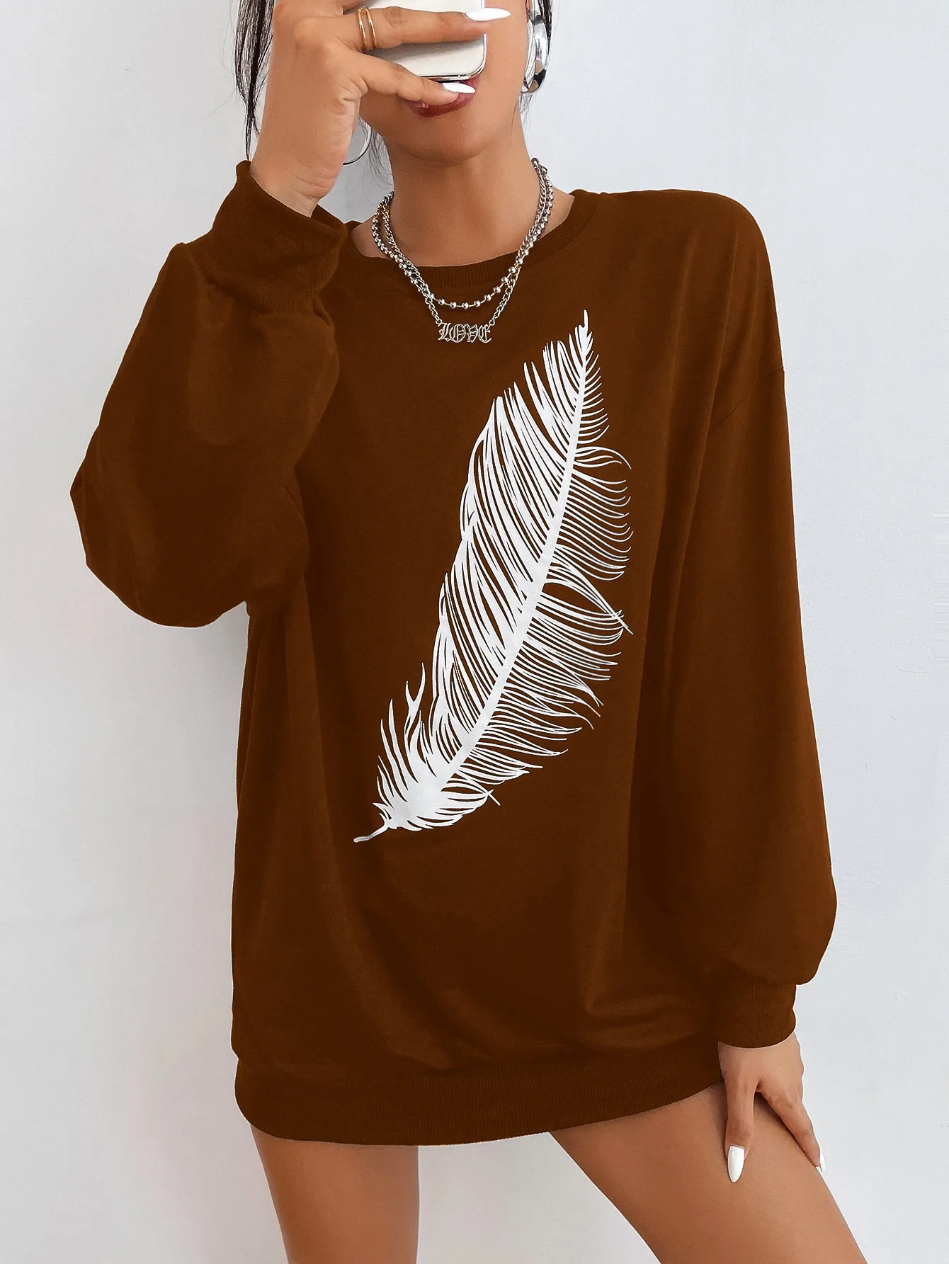 Be the first to review “SMY Casual Feather Pattern Round Neck Long Hoodie” Cancel reply