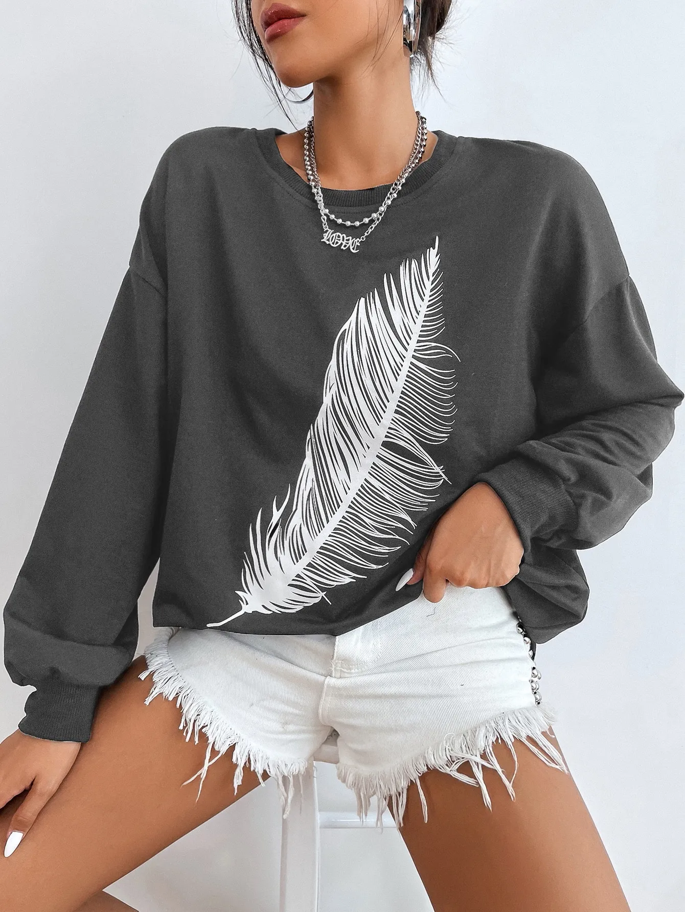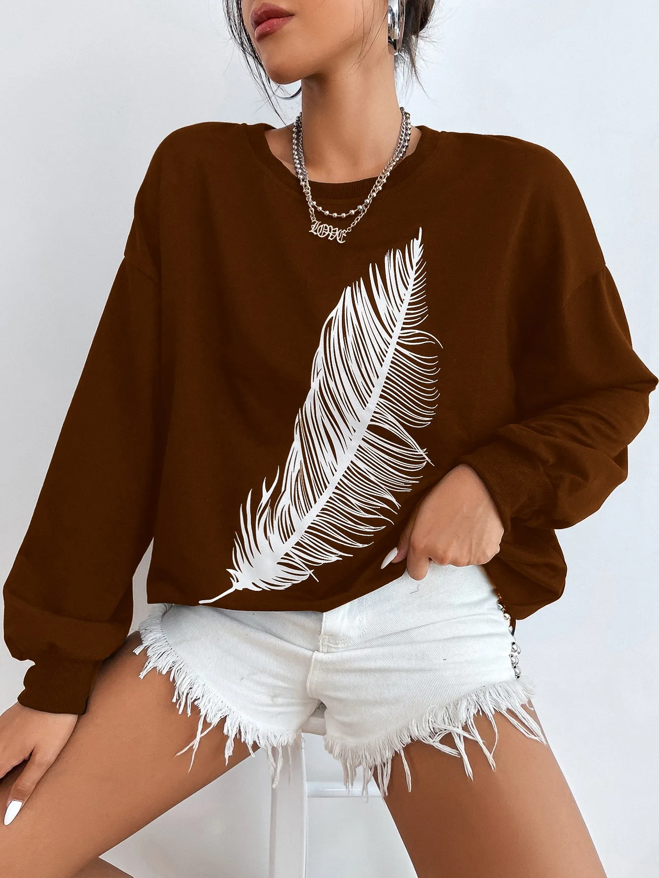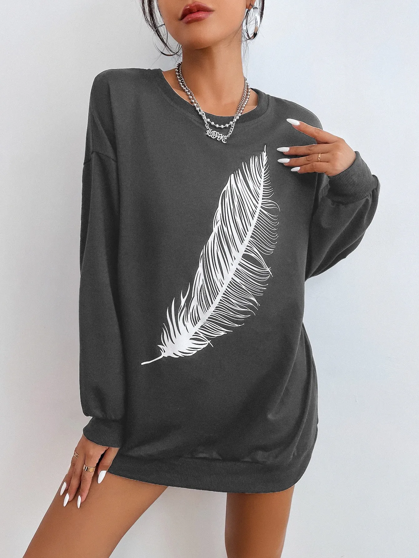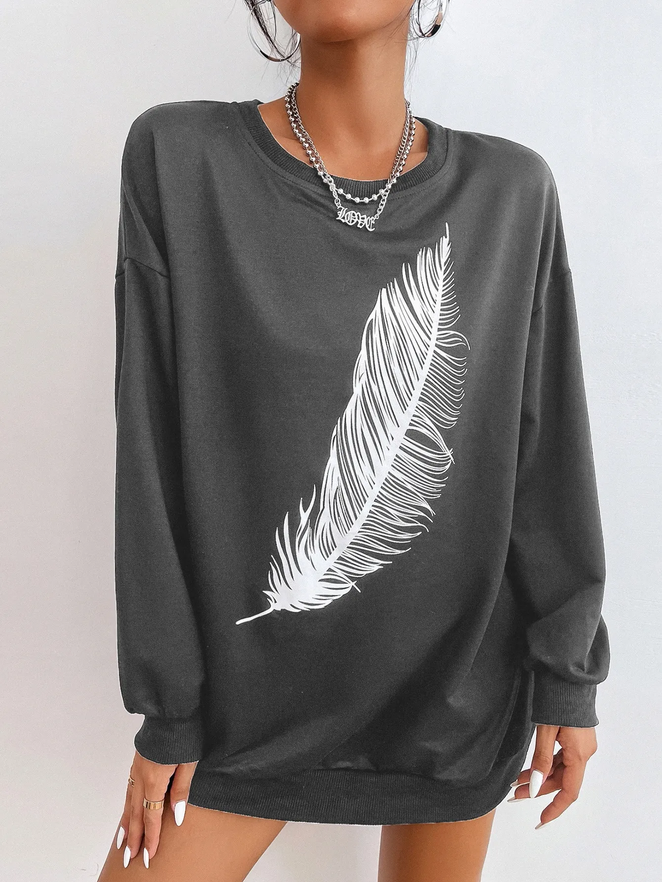 Be the first to review “SMY Casual Feather Pattern Round Neck Long Hoodie” Cancel reply
