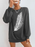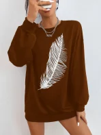 SMY Casual Feather Pattern Round Neck Long Hoodie