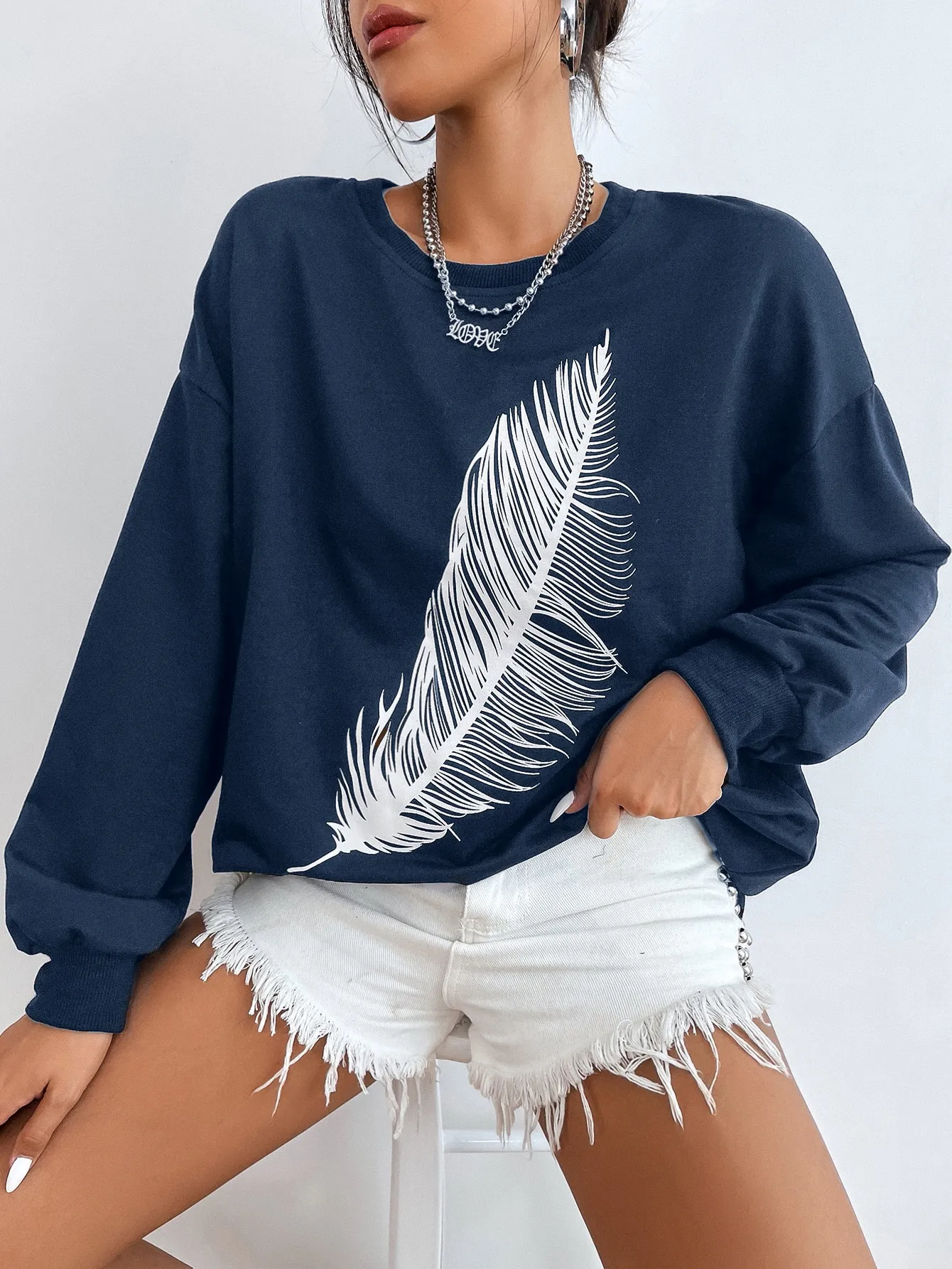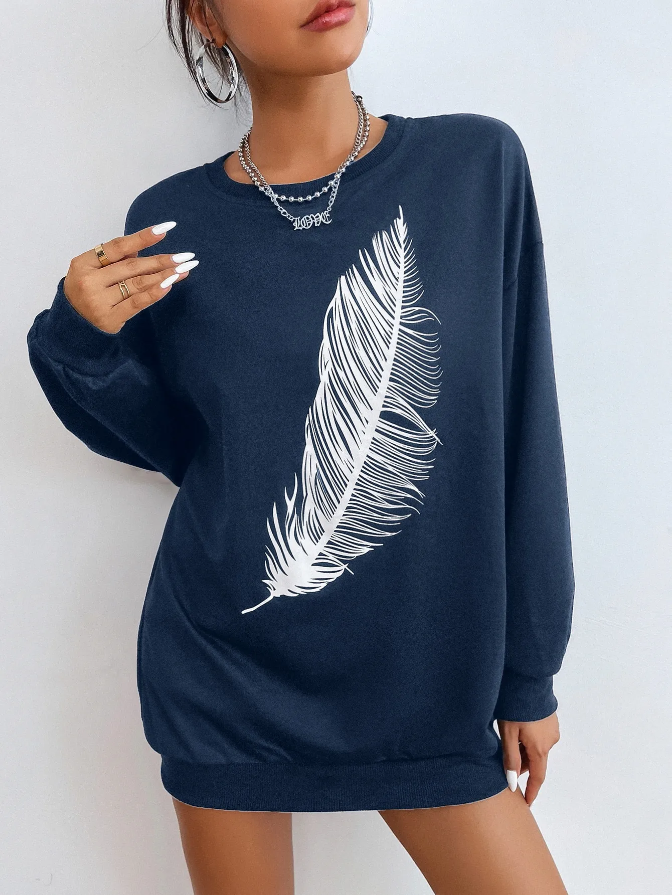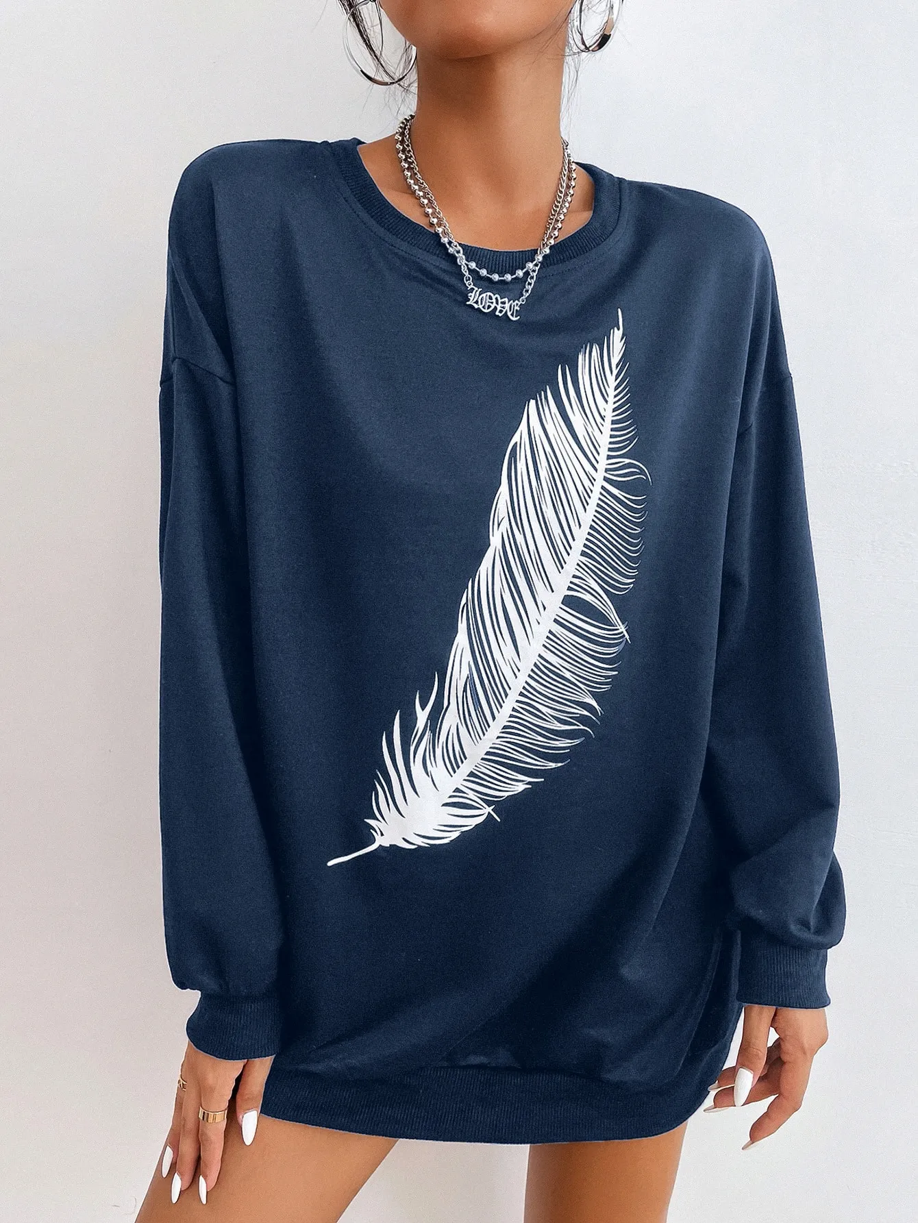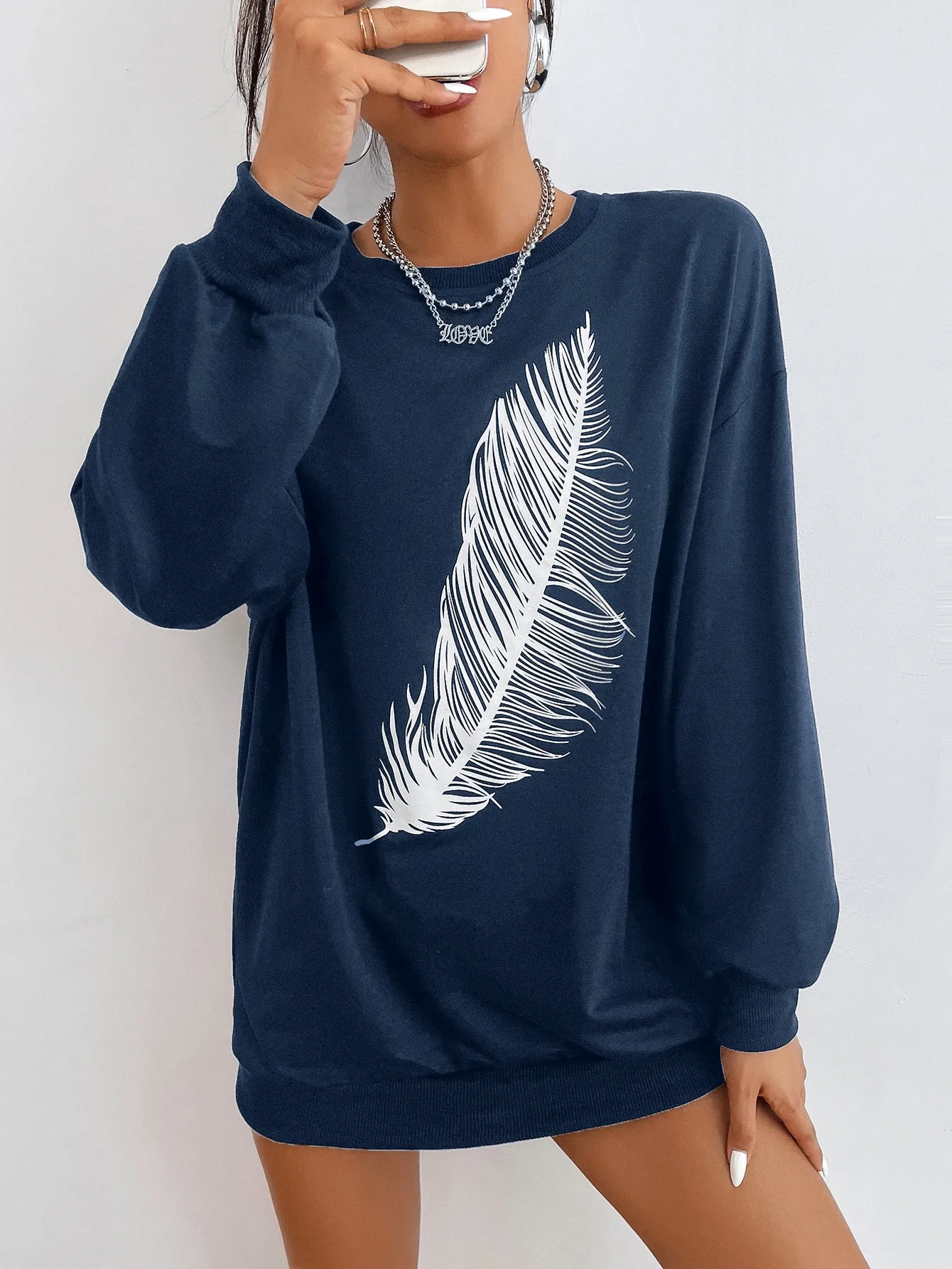 Be the first to review “SMY Casual Feather Pattern Round Neck Long Hoodie” Cancel reply