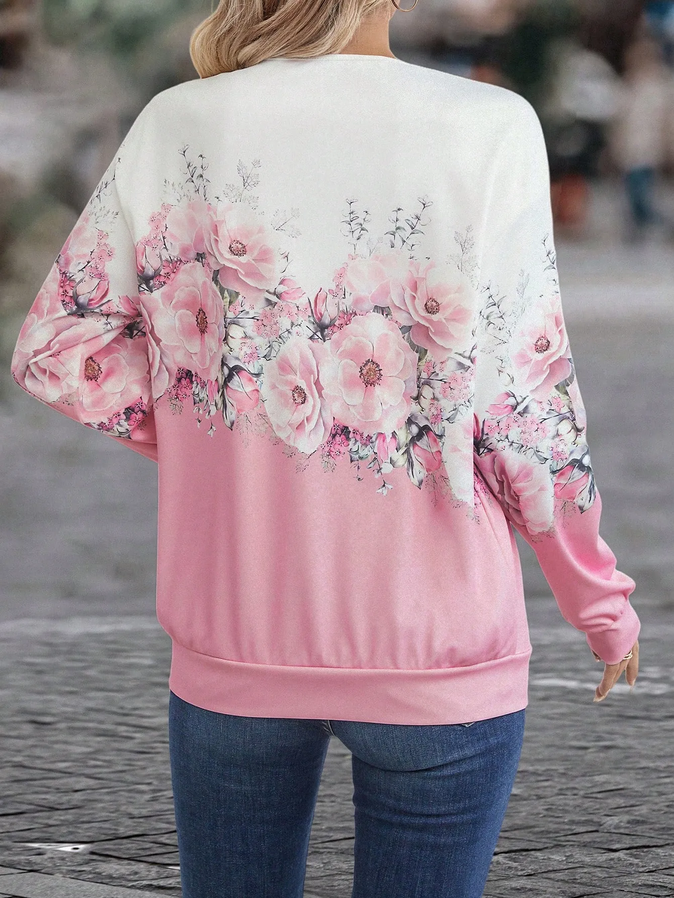 SMY Women’s V-neck Button Decoration Patchwork Long Sleeve Casual T-shirt