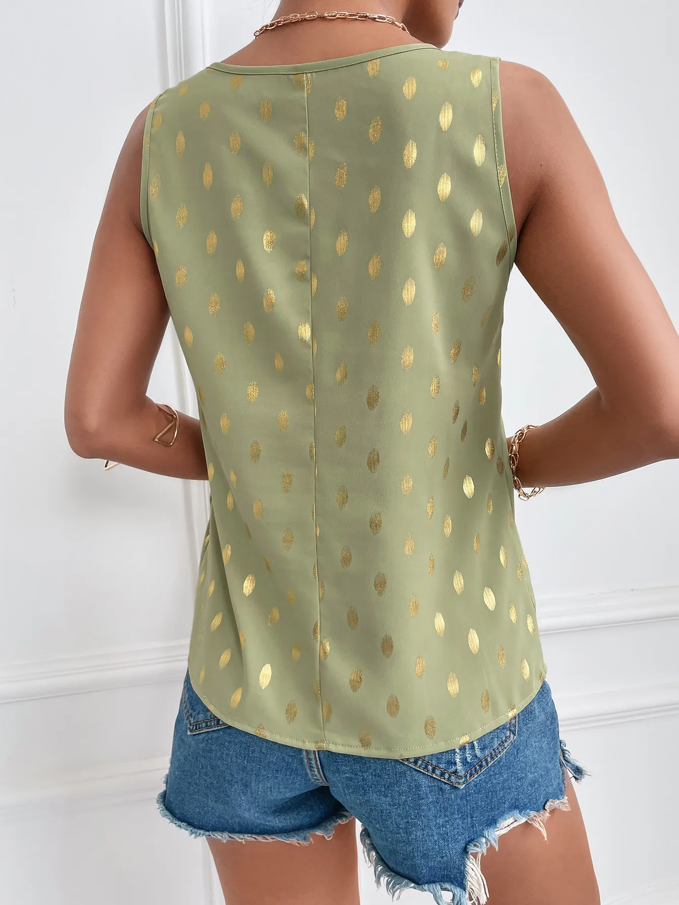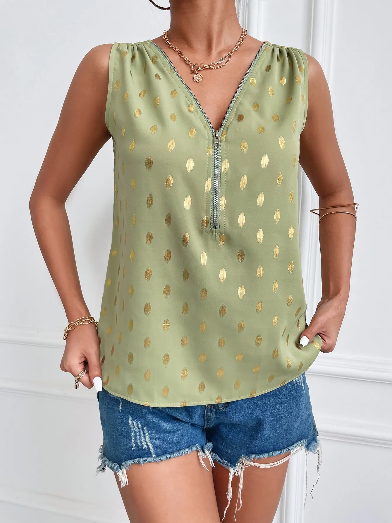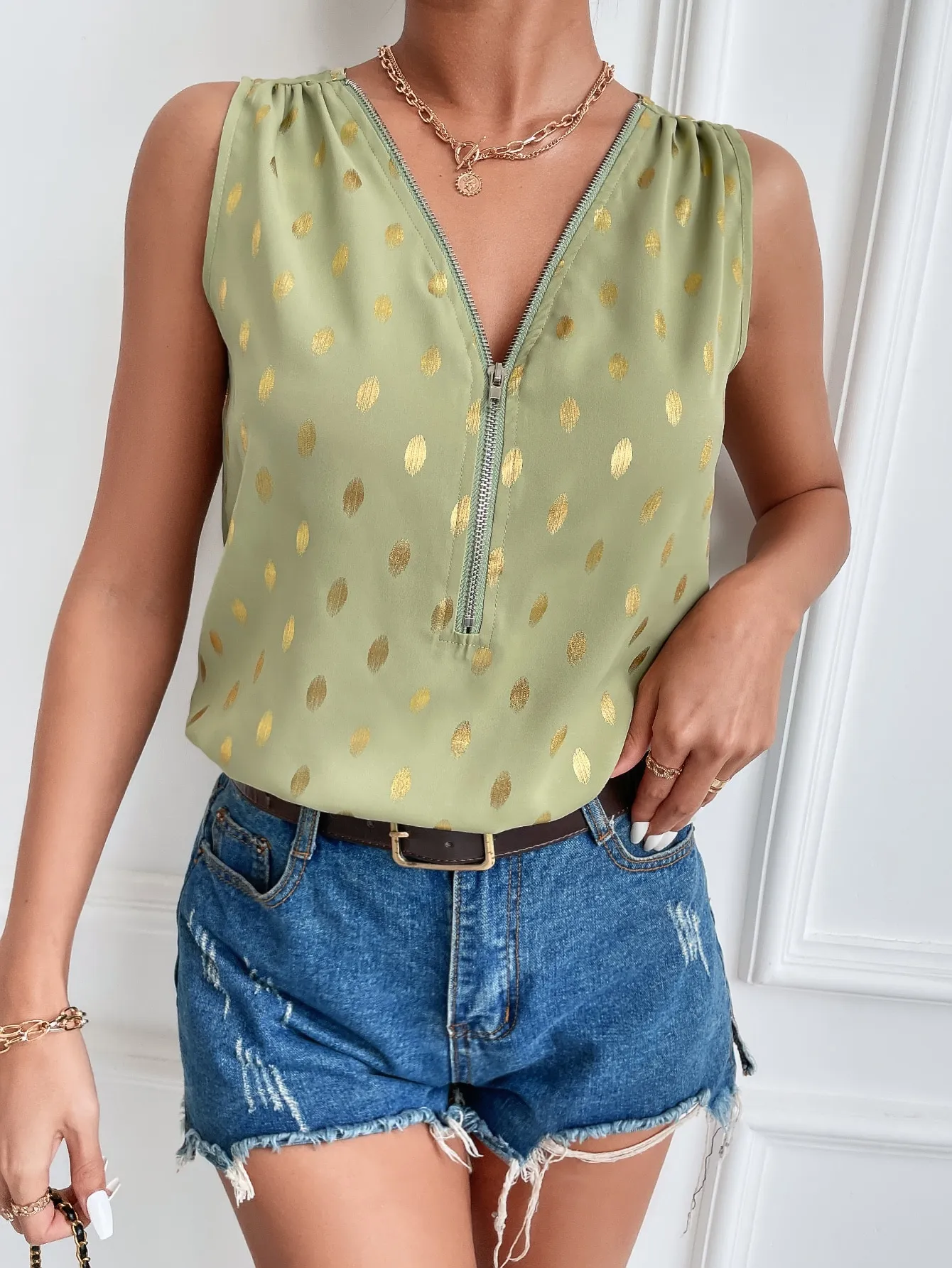 SMY Casual Front Zipper V-Neck Sleeveless Shirt