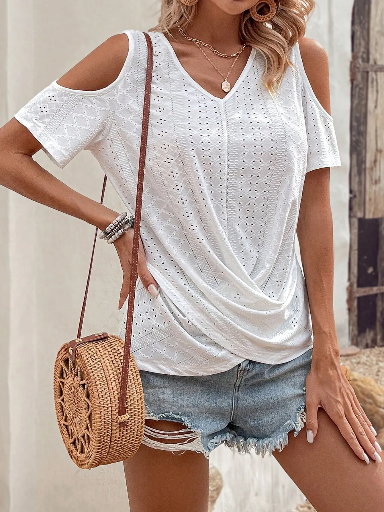 SMY Casual Hollow Trend Small V-Neck Women’s T-Shirt