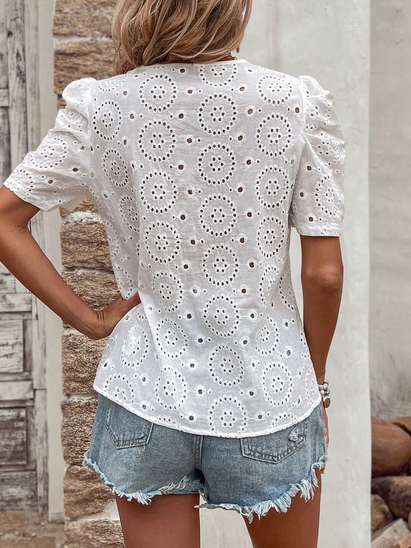 SMY Casual Hollowed out Pattern Trend Small Round Neck Women’s Shirt