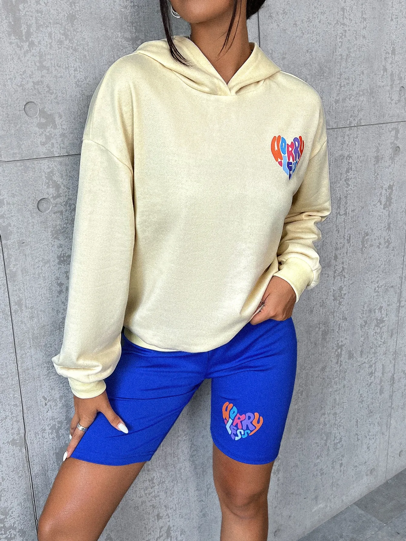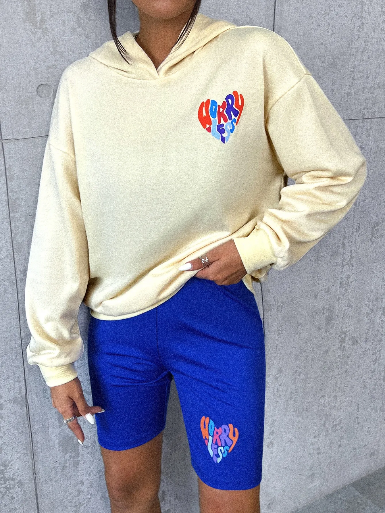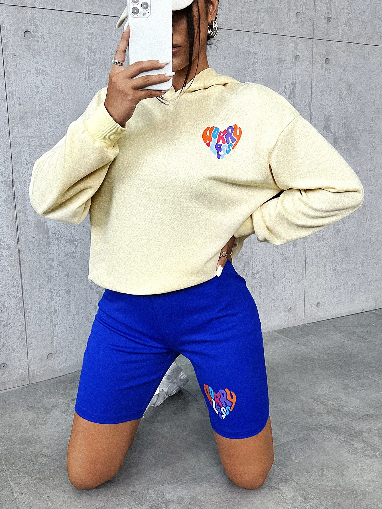 SMY Letter Pattern Drop Shoulder Tee & Biker Shorts