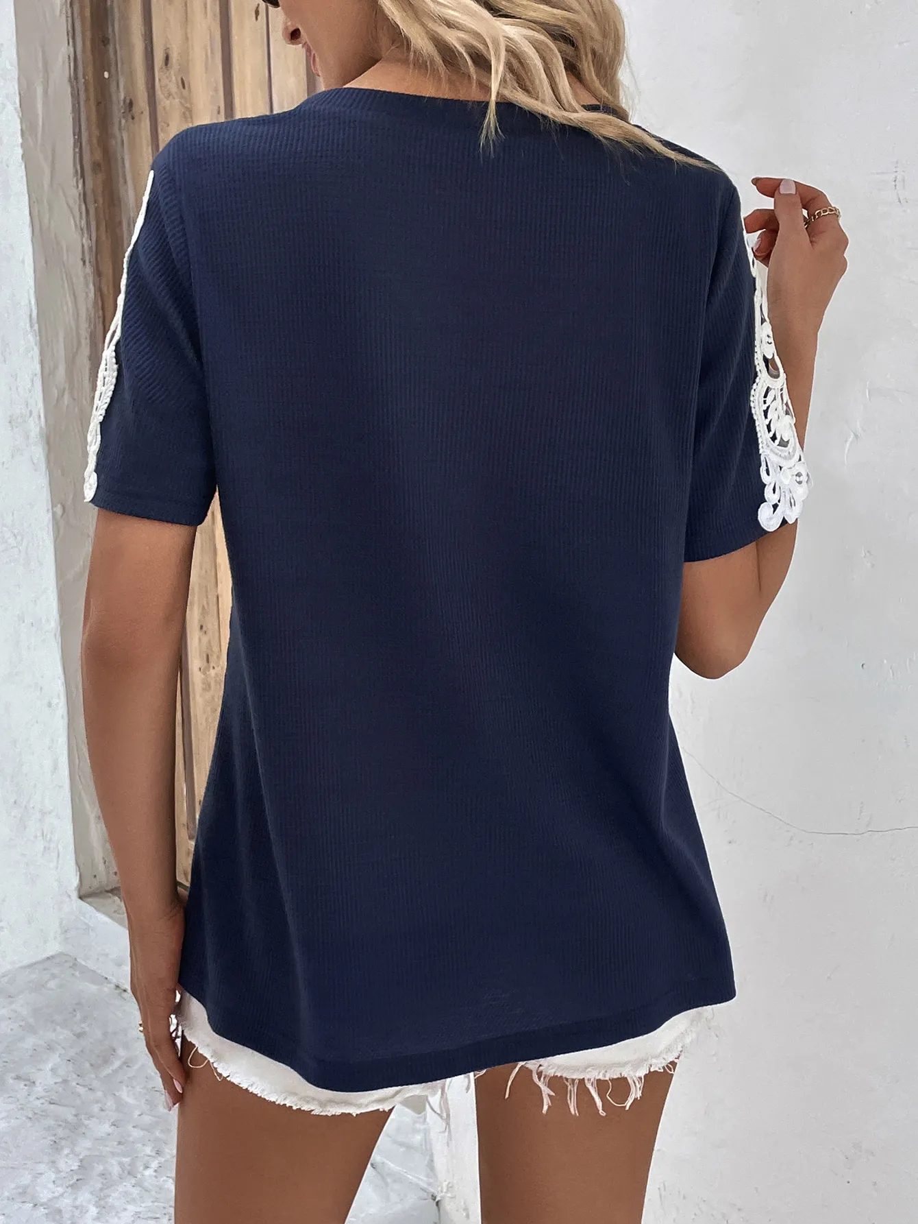 SMY Casual Lace Cuffs Trend Small V-Neck T-Shirt