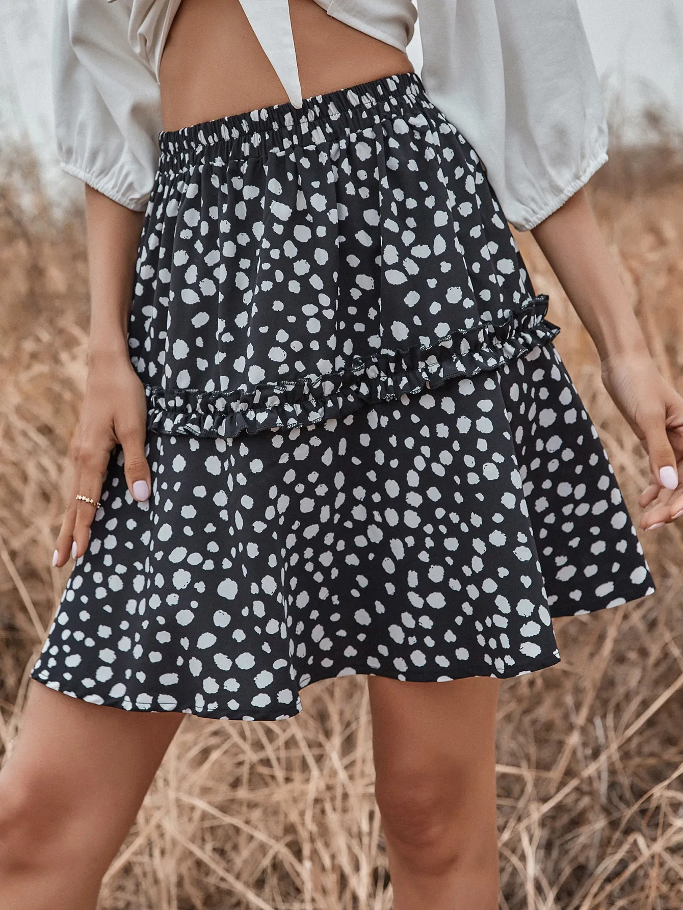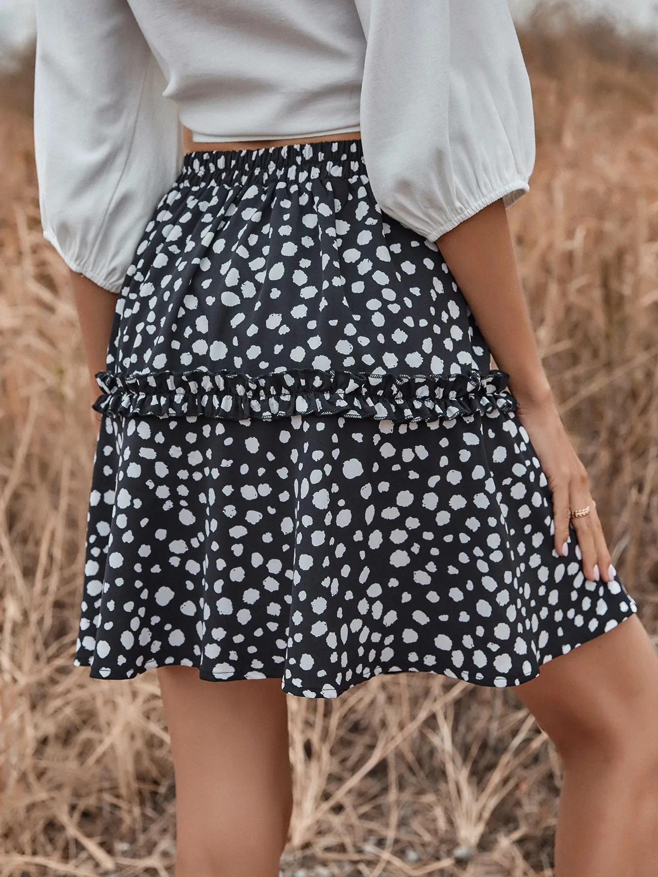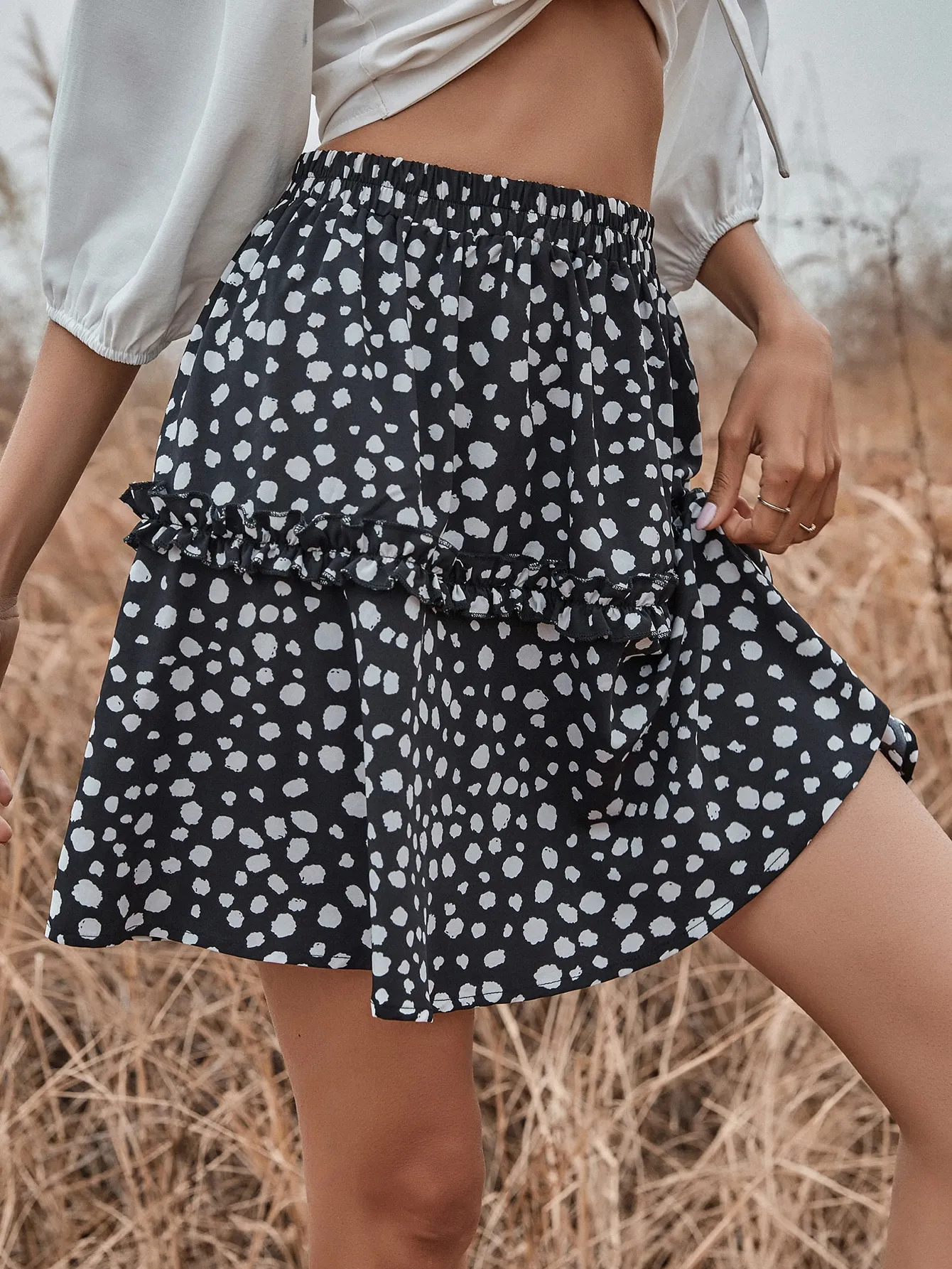 SMY Casual Leisure Ear Fungus Edge Short Skirt