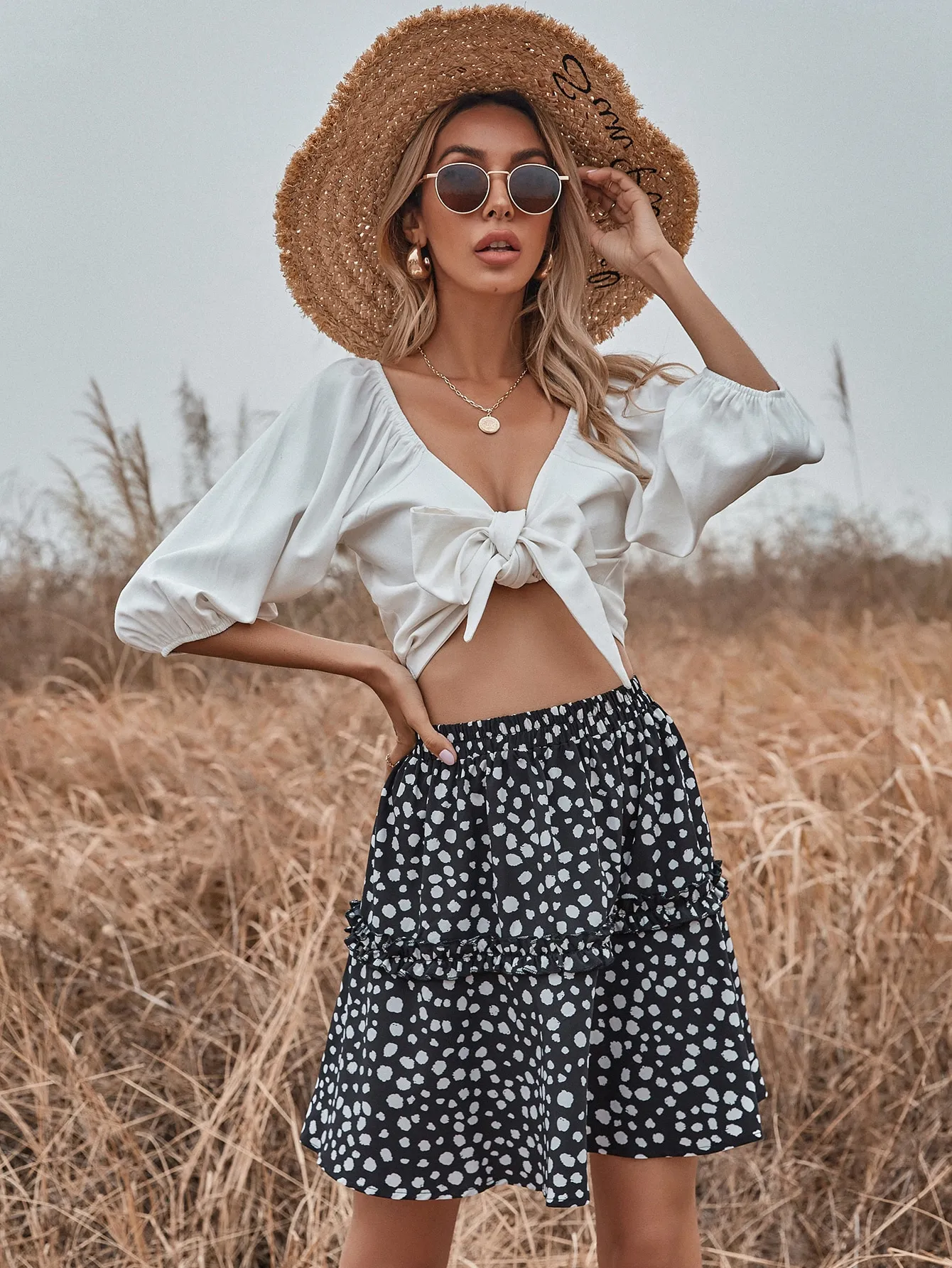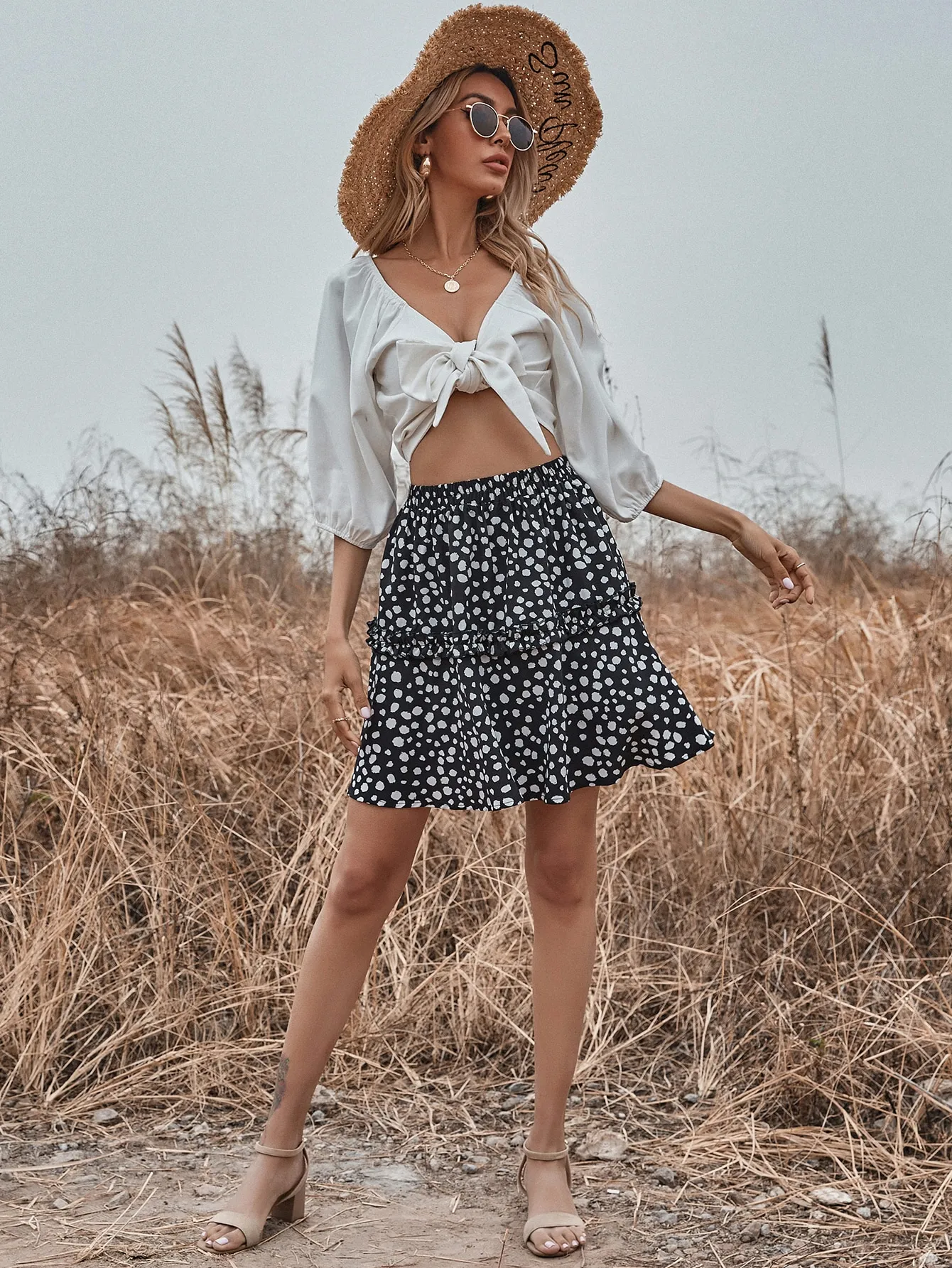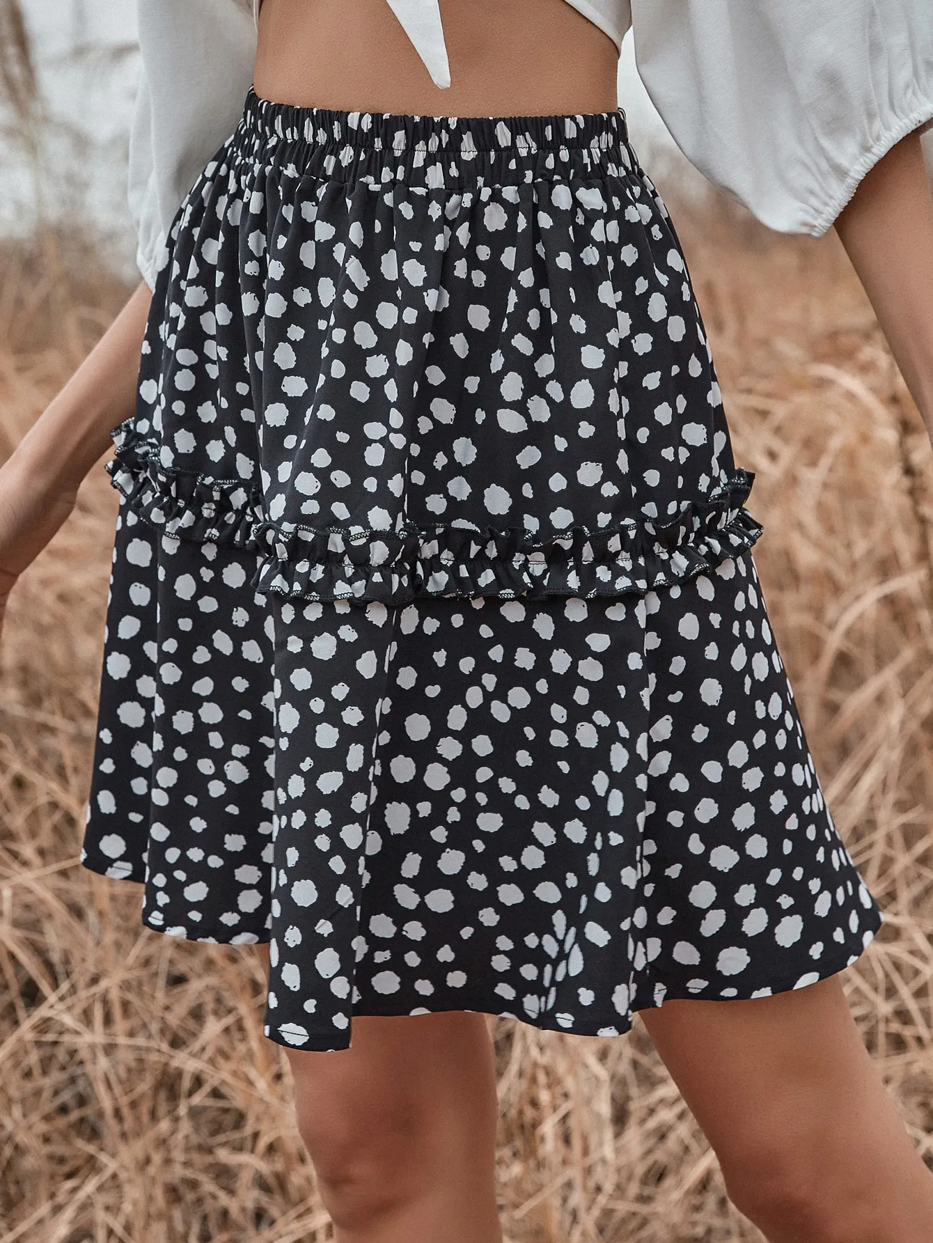SMY Casual Leisure Ear Fungus Edge Short Skirt