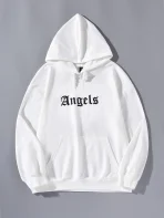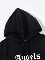 SMY Casual Letter Printed ANGELS Hooded Regular Hoodie