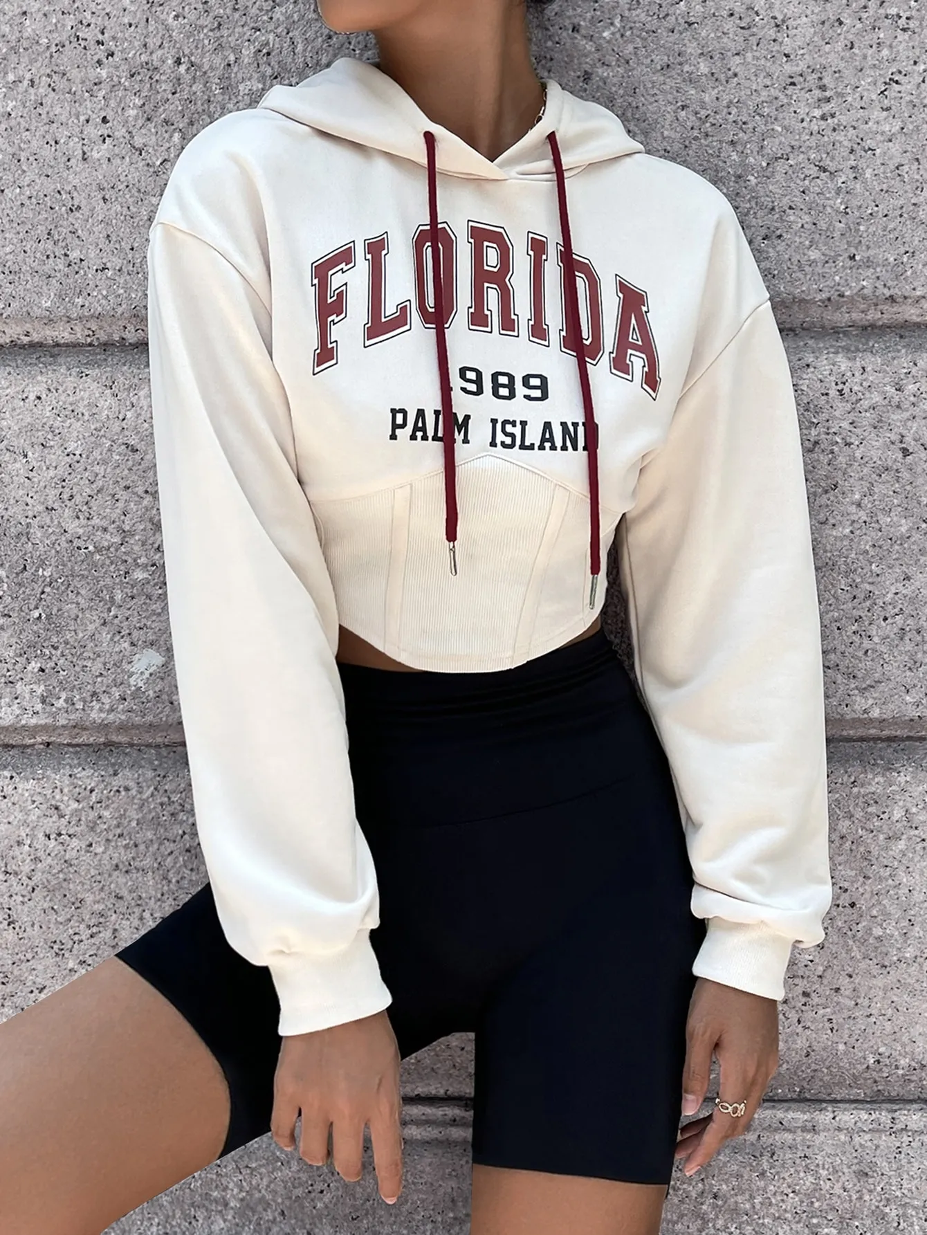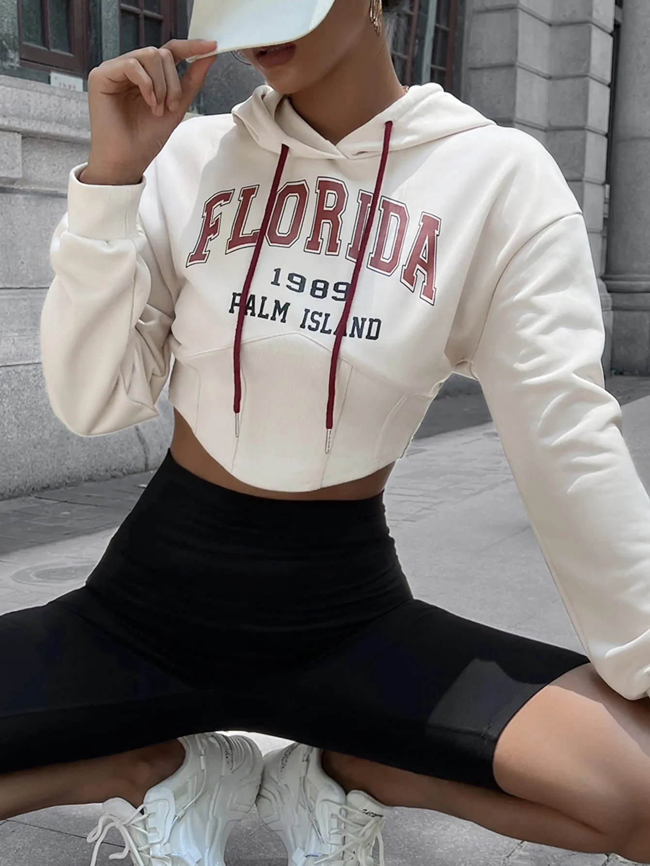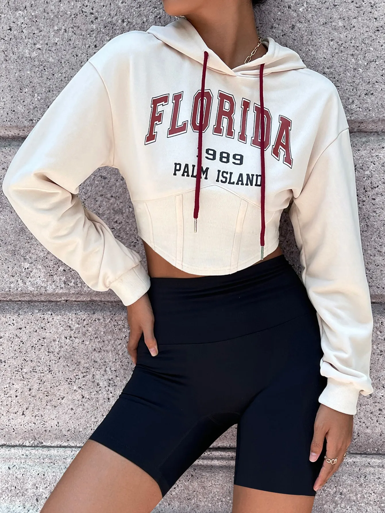 SMY Casual Letter Printed FLORIDA Hooded Long Hoodie