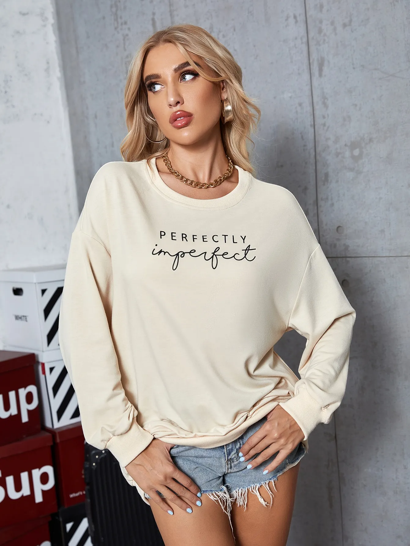 SMY Casual Letter Printed IMPECTECT Round Neck Long Hoodie