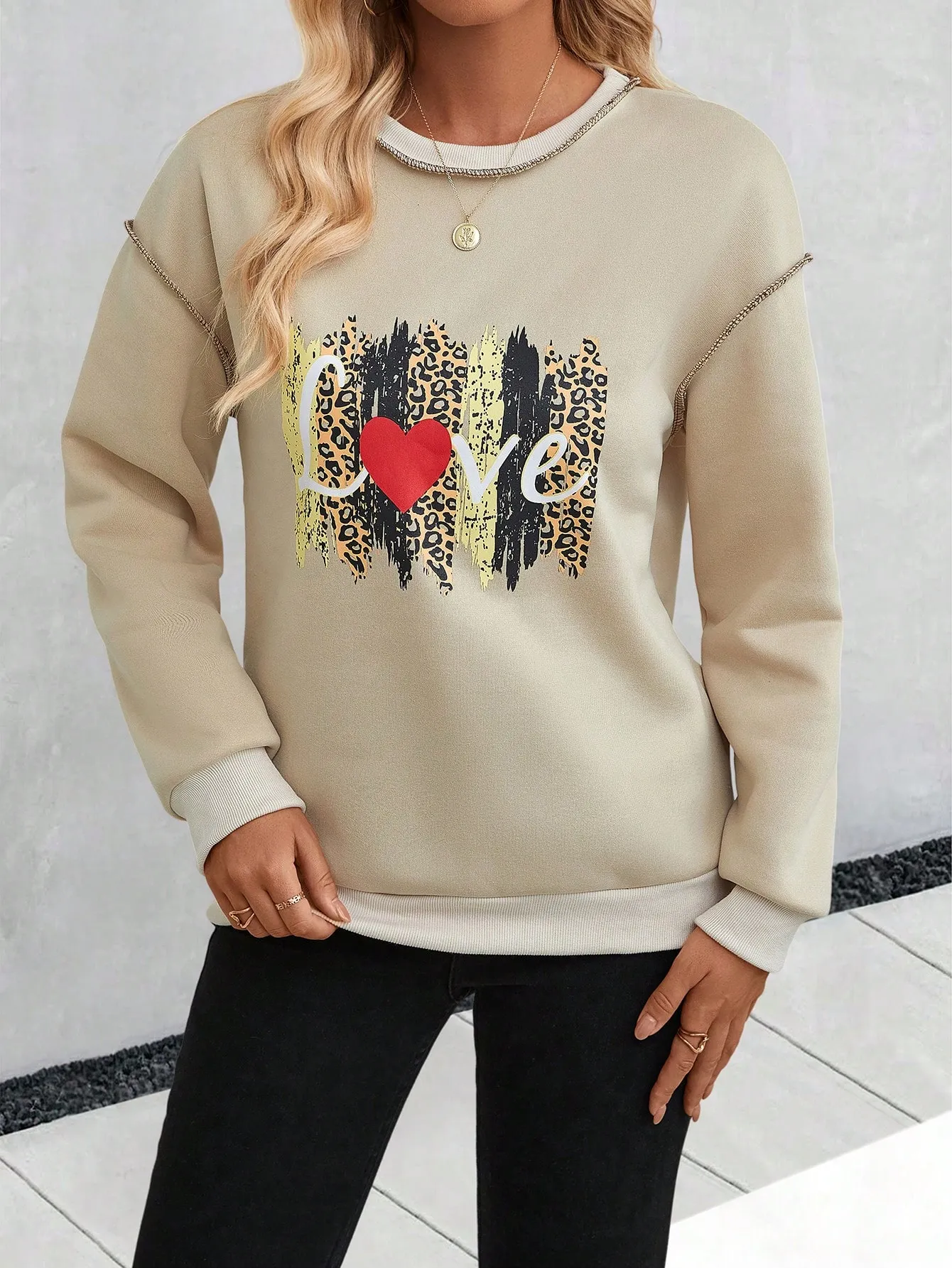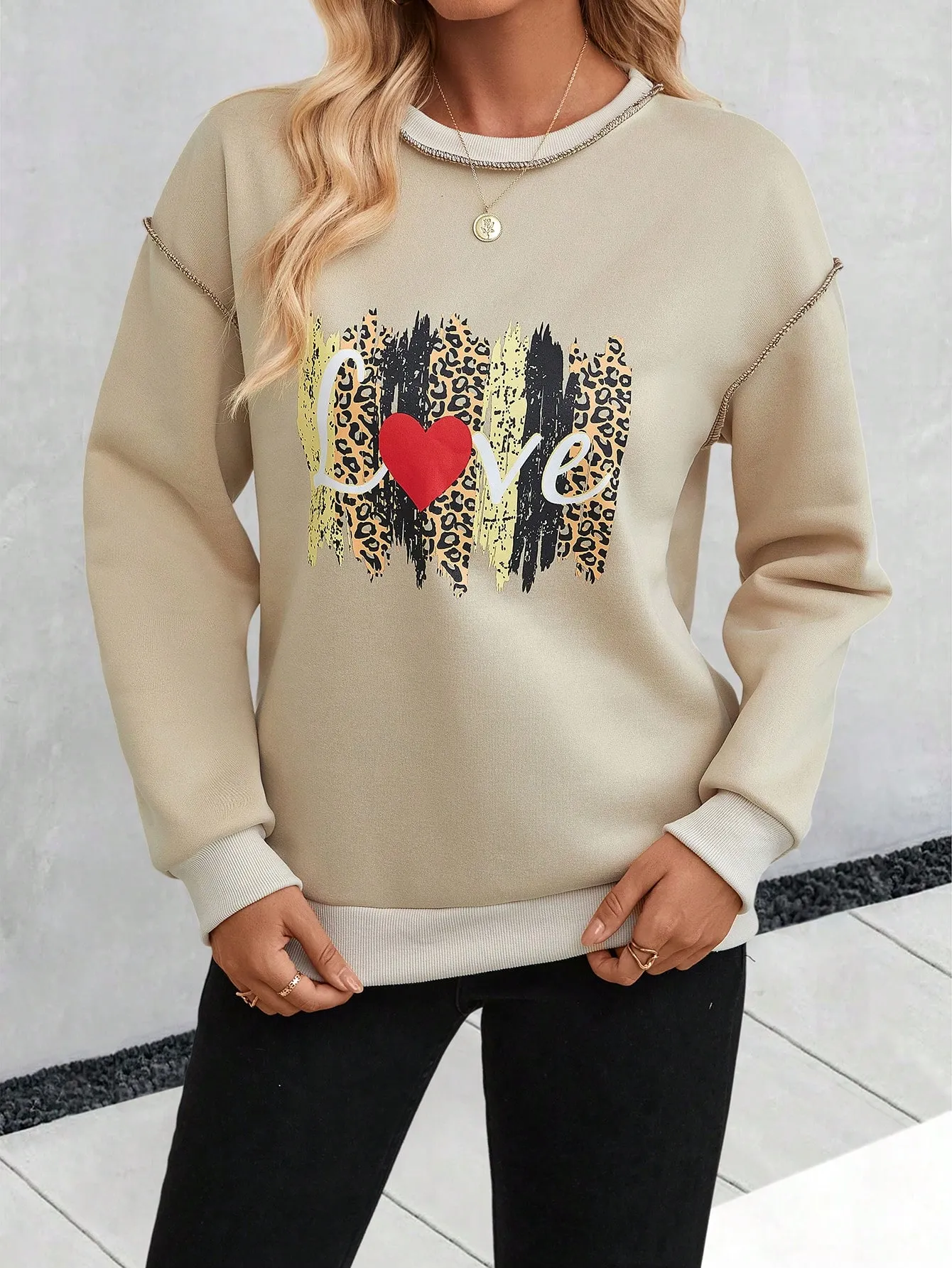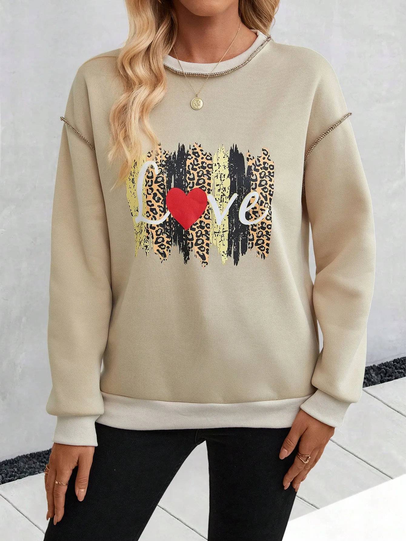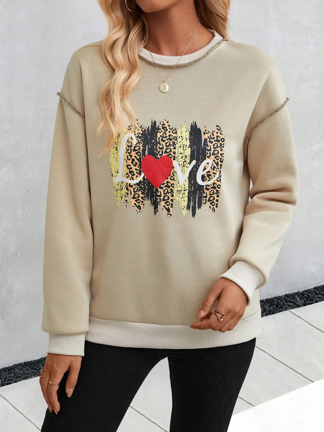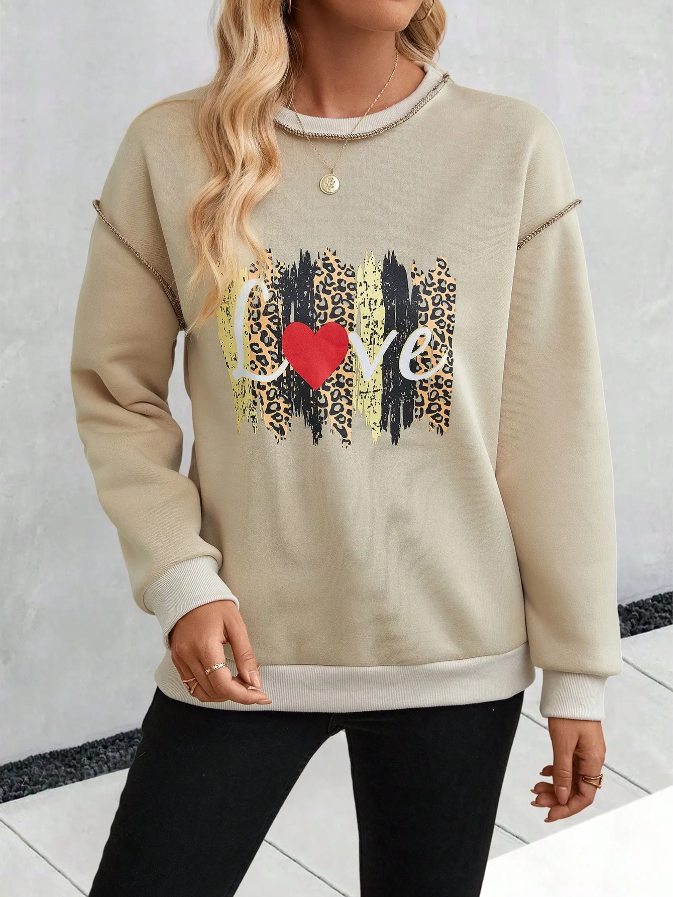 SMY Casual Letter Printed Love Small Round Neck Long Sleeved Sweatshirt