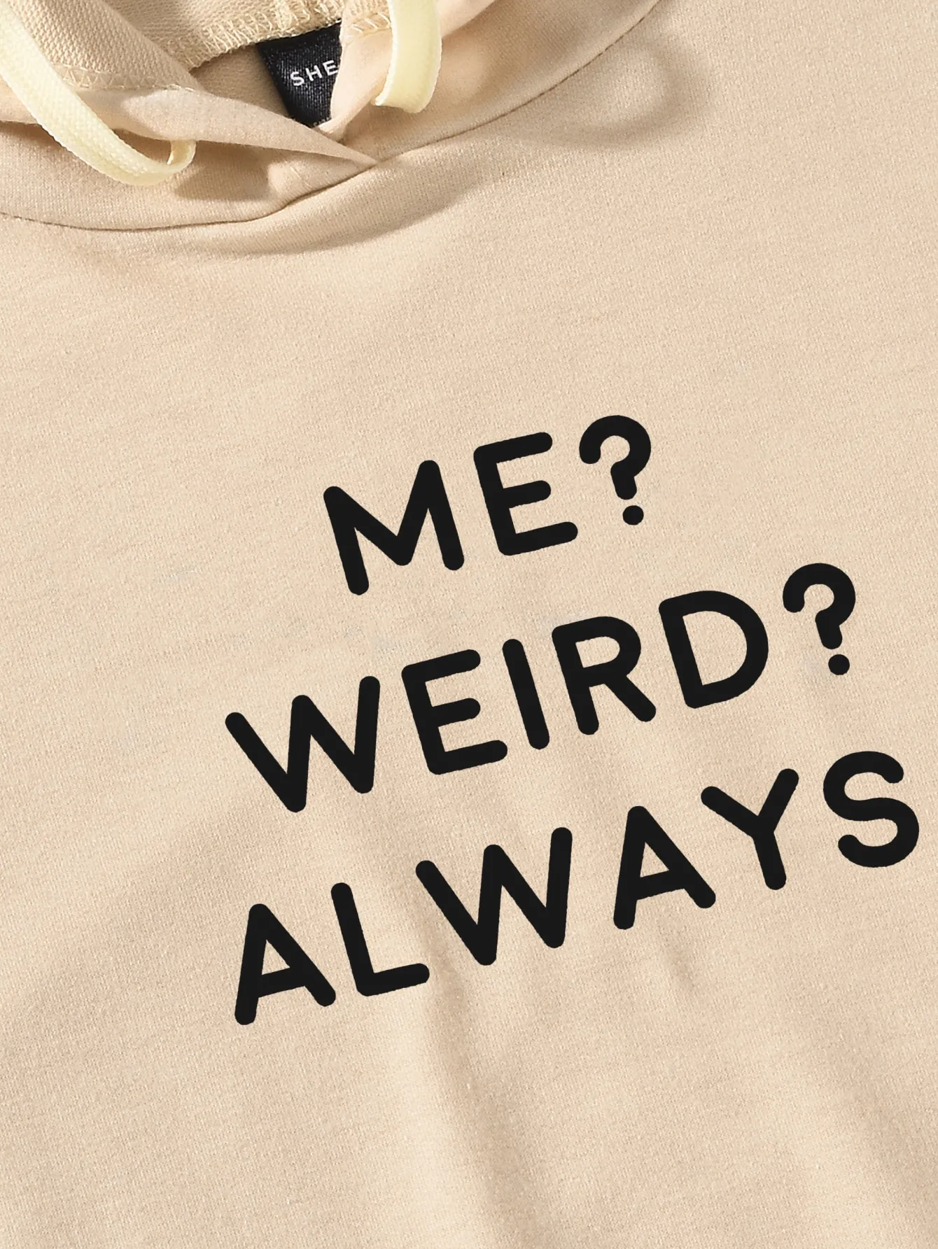 SMY Casual Letter Printed ME? WEIRD? ALWAYS Hooded Regular Hoodie