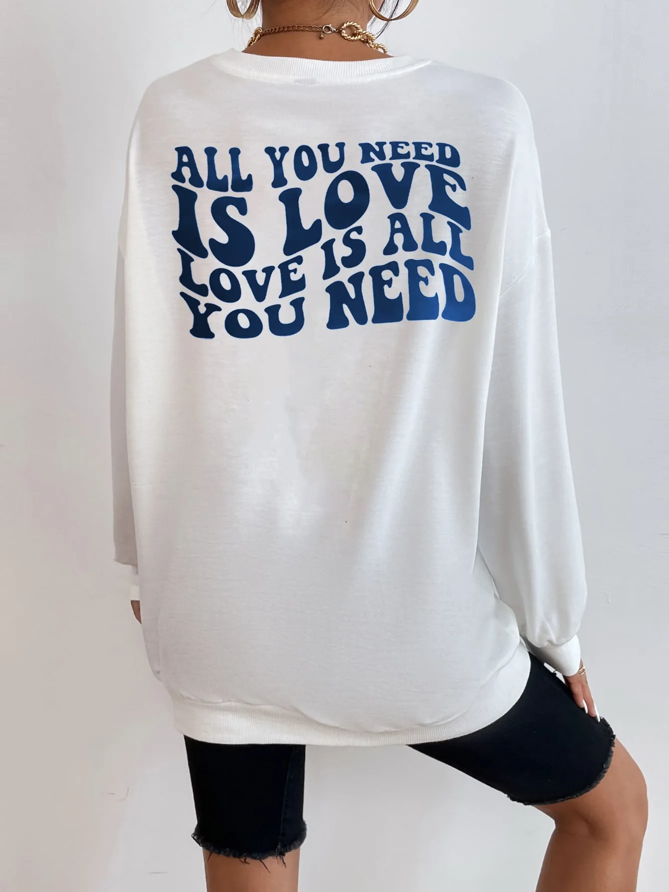 SMY Casual Letter Printed Round Neck Long Hoodie For Spring, Autumn