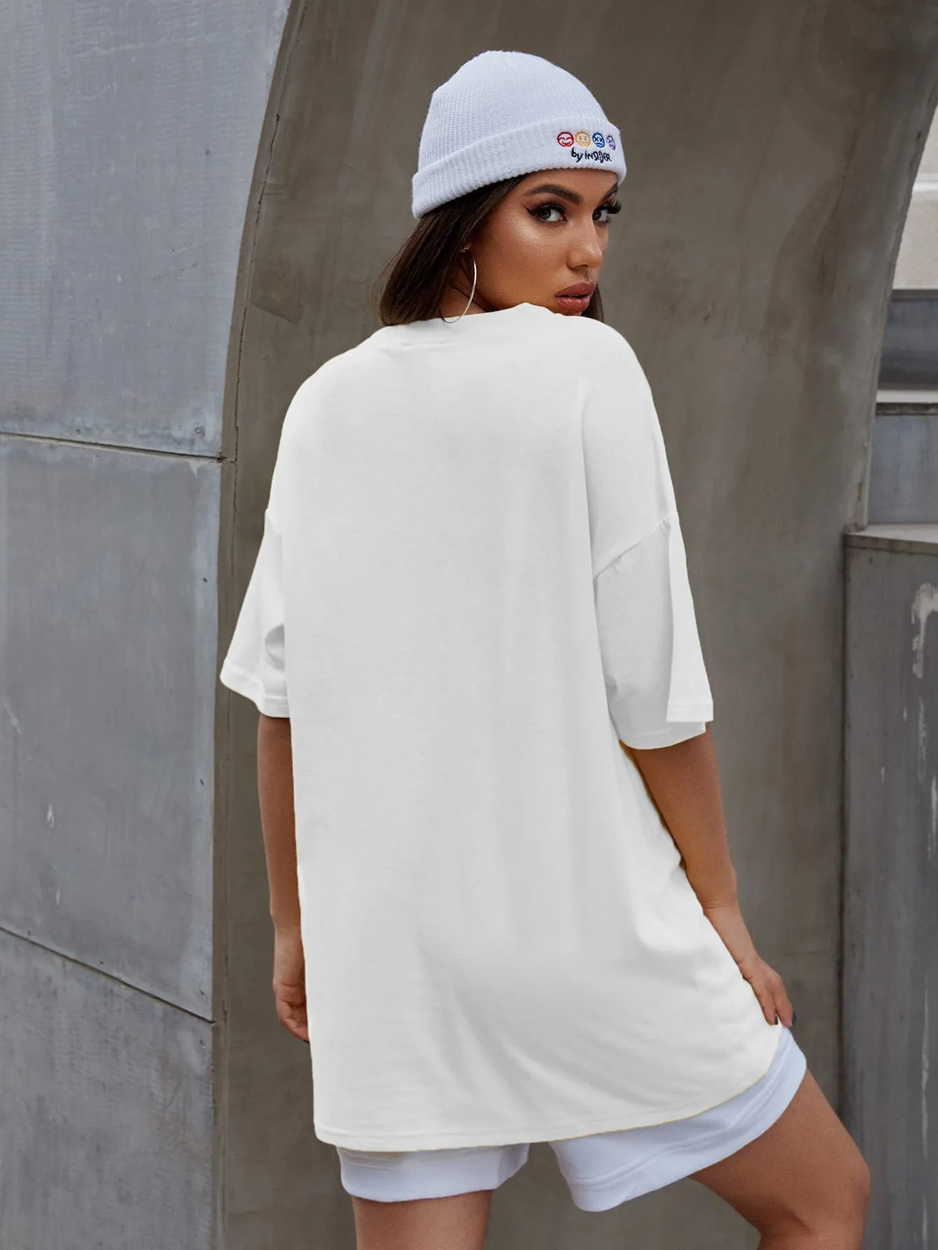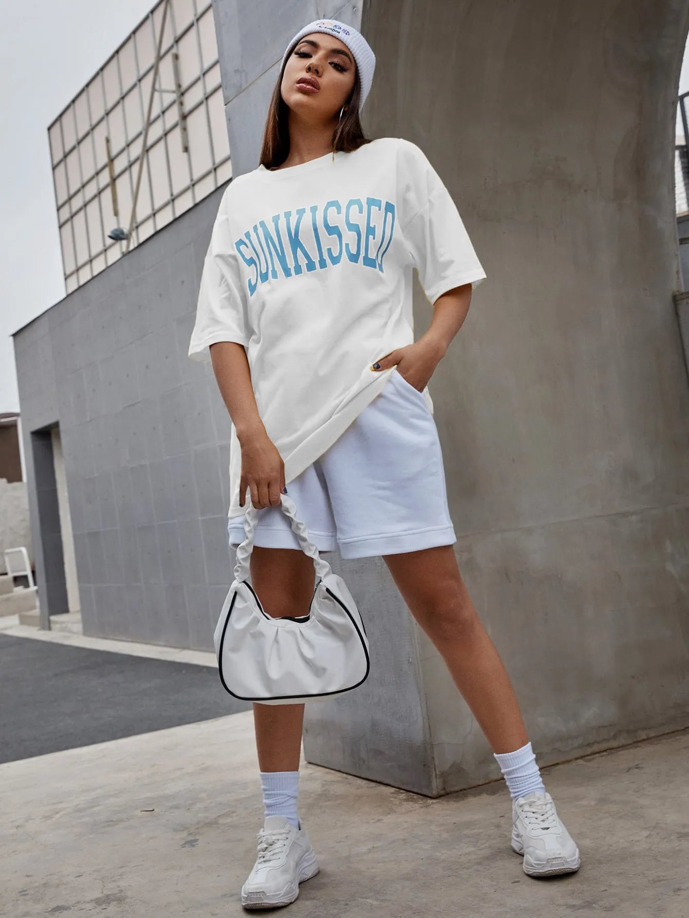 SMY Casual Letter Printed SUNKISSED Round Neck T-Shirt