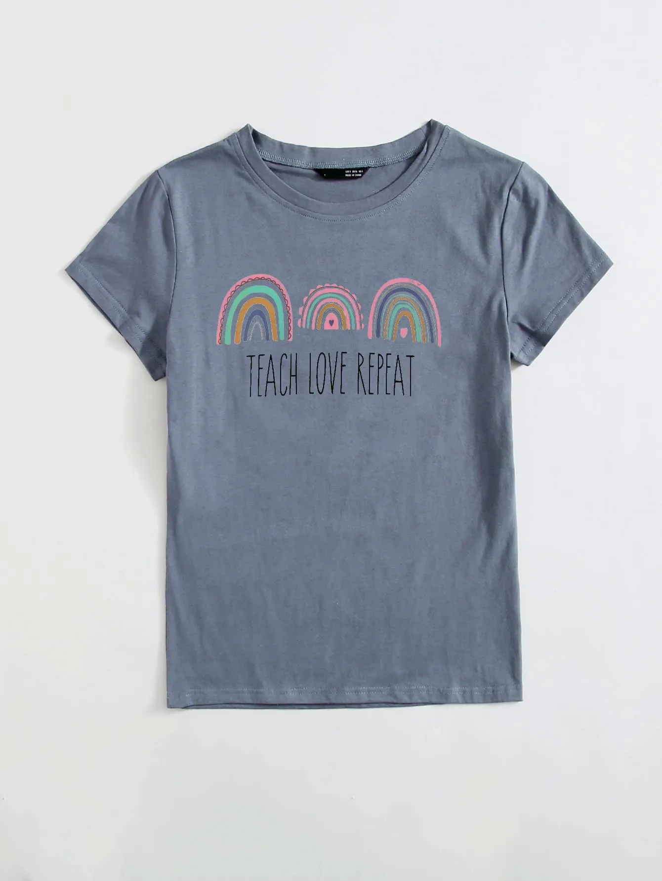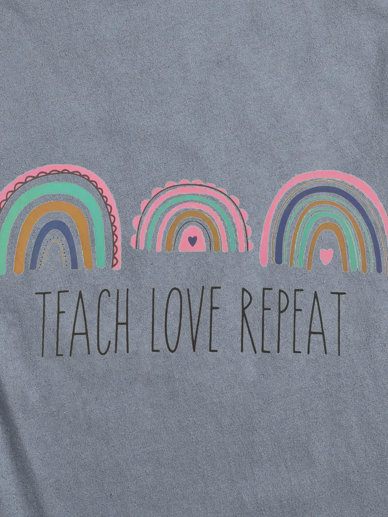 SMY Casual Letter Printed TEACH LOVE REPEAT Round Neck Simple Pattern Printed T-Shirt