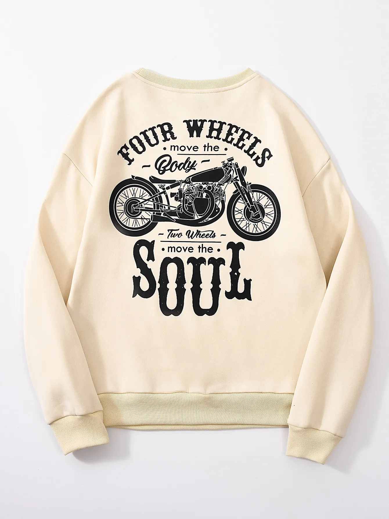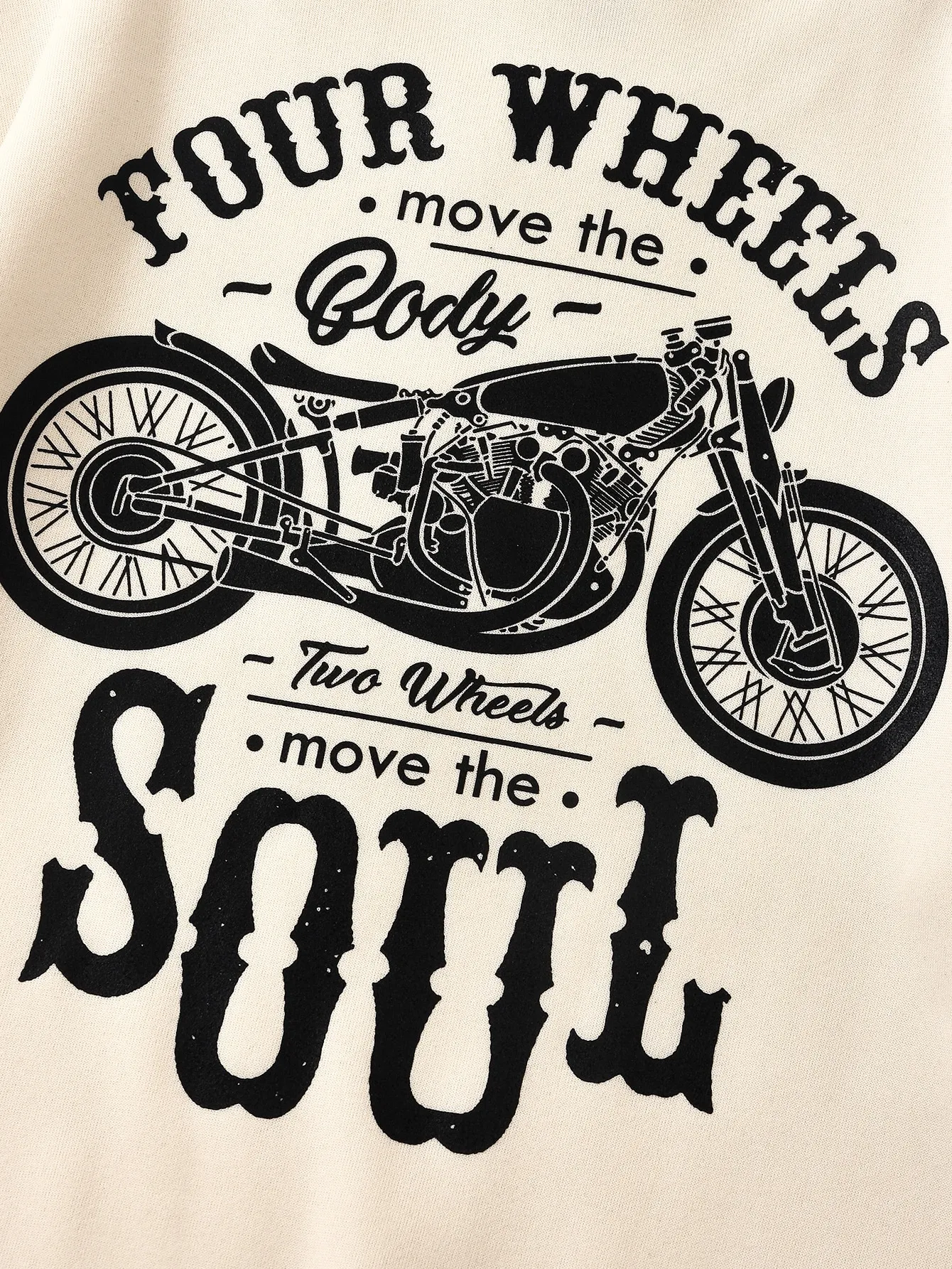 SMY Casual Motorcycle Pattern With Letter Print Round Neck Regular Printed Hoodie