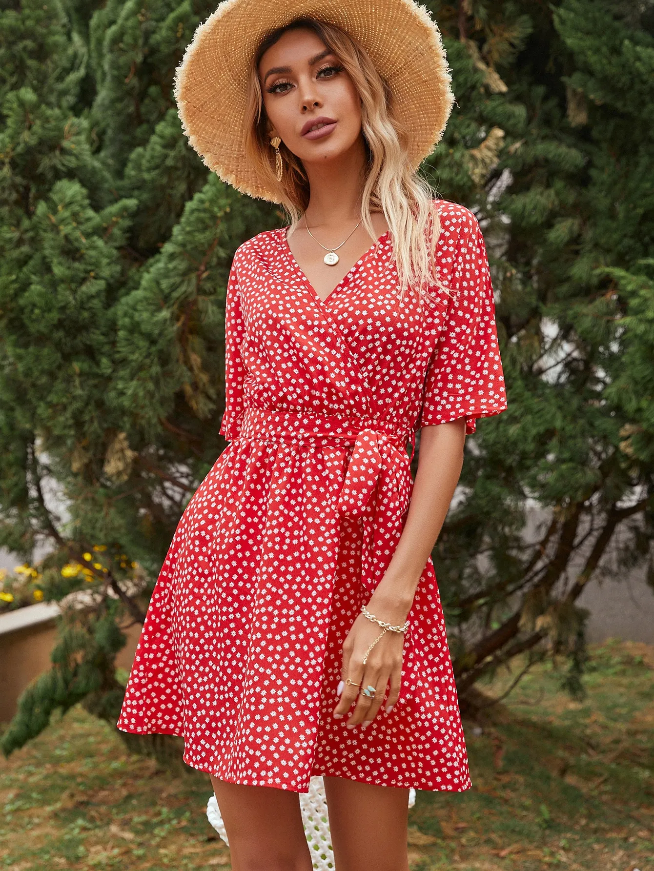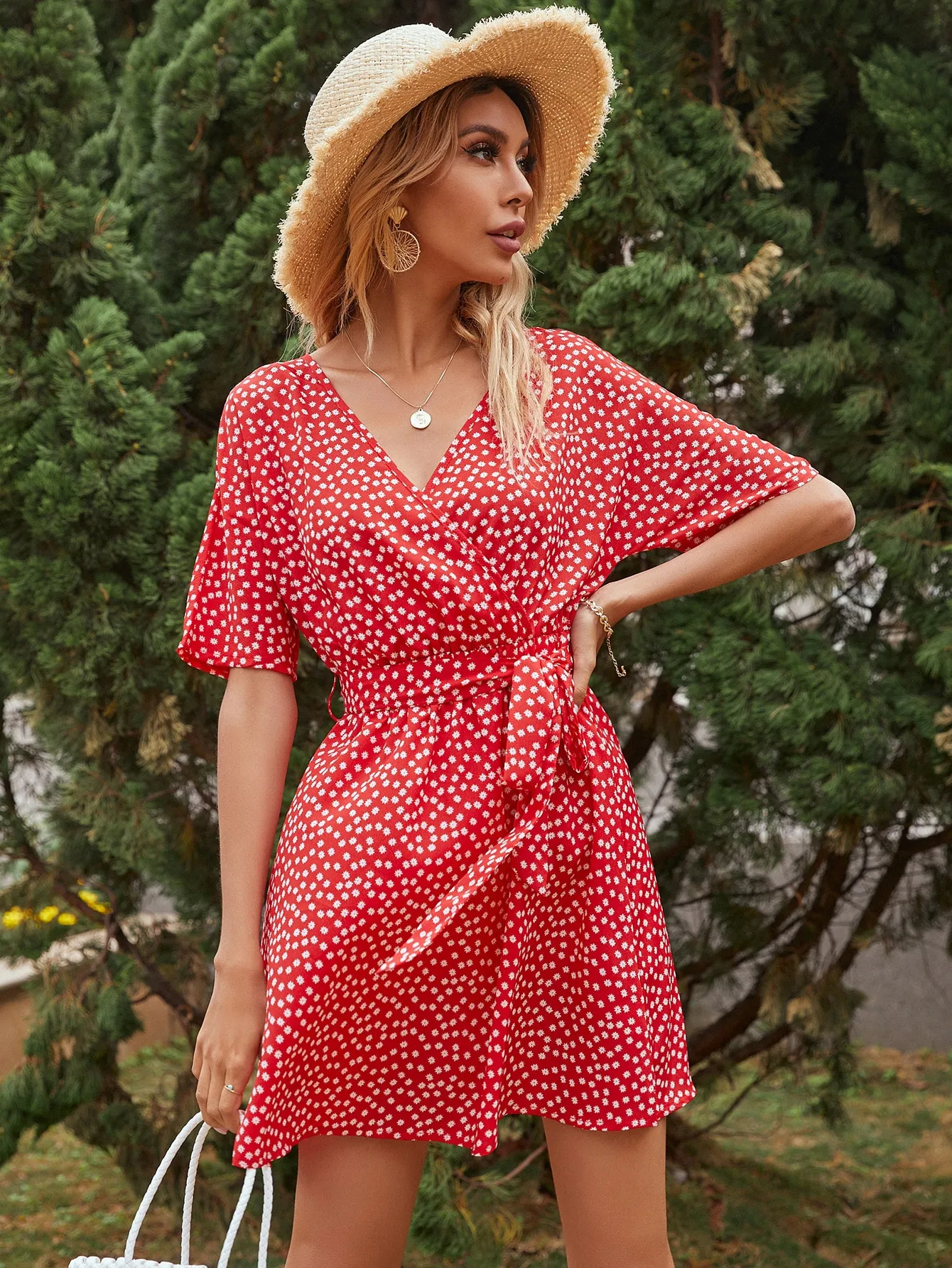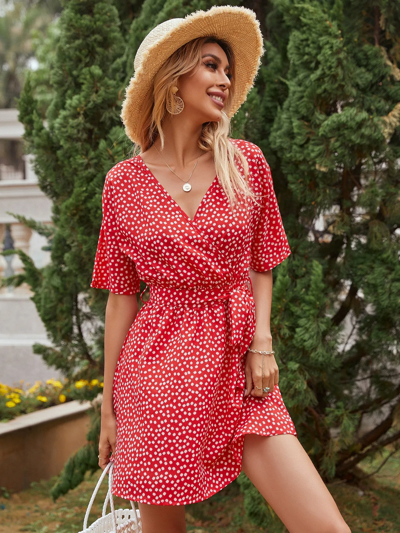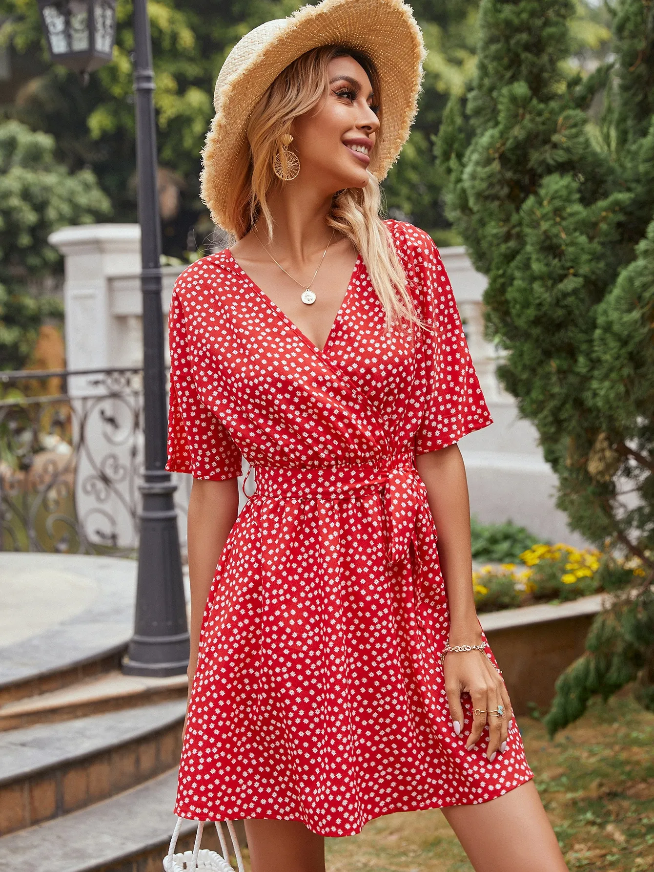 SMY Casual Overlapping V-Neck Short Sleeved Dress