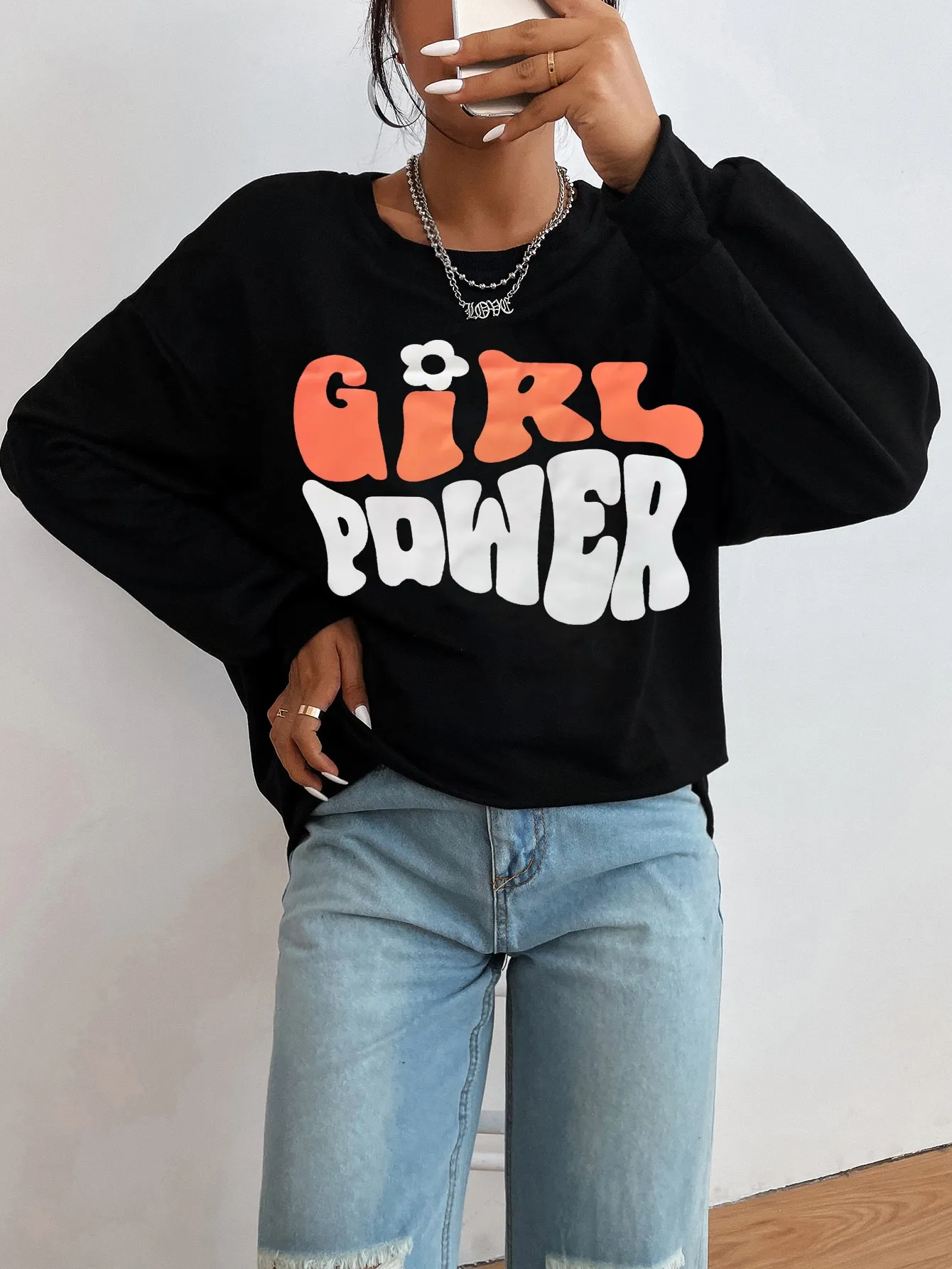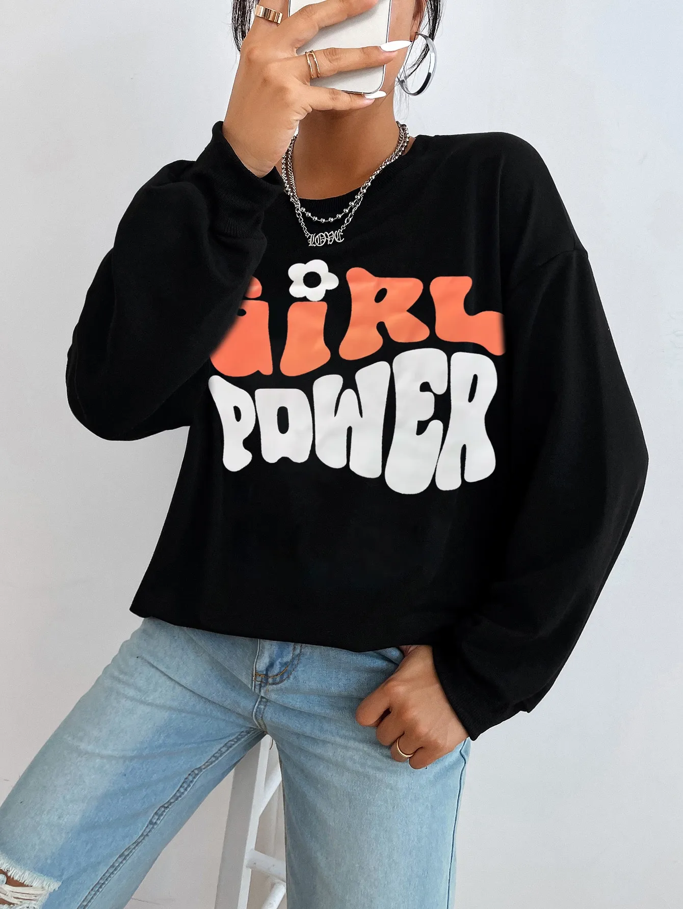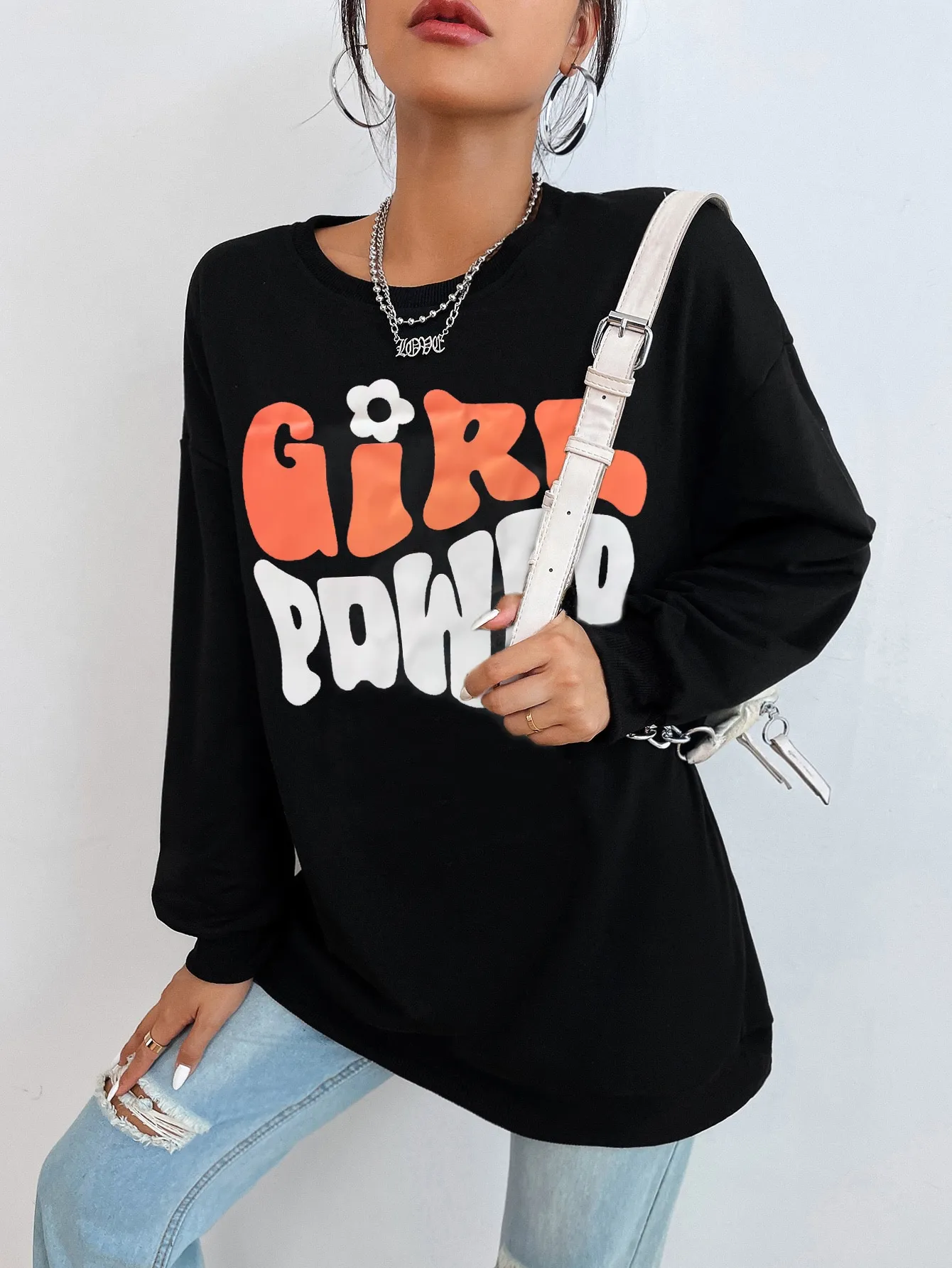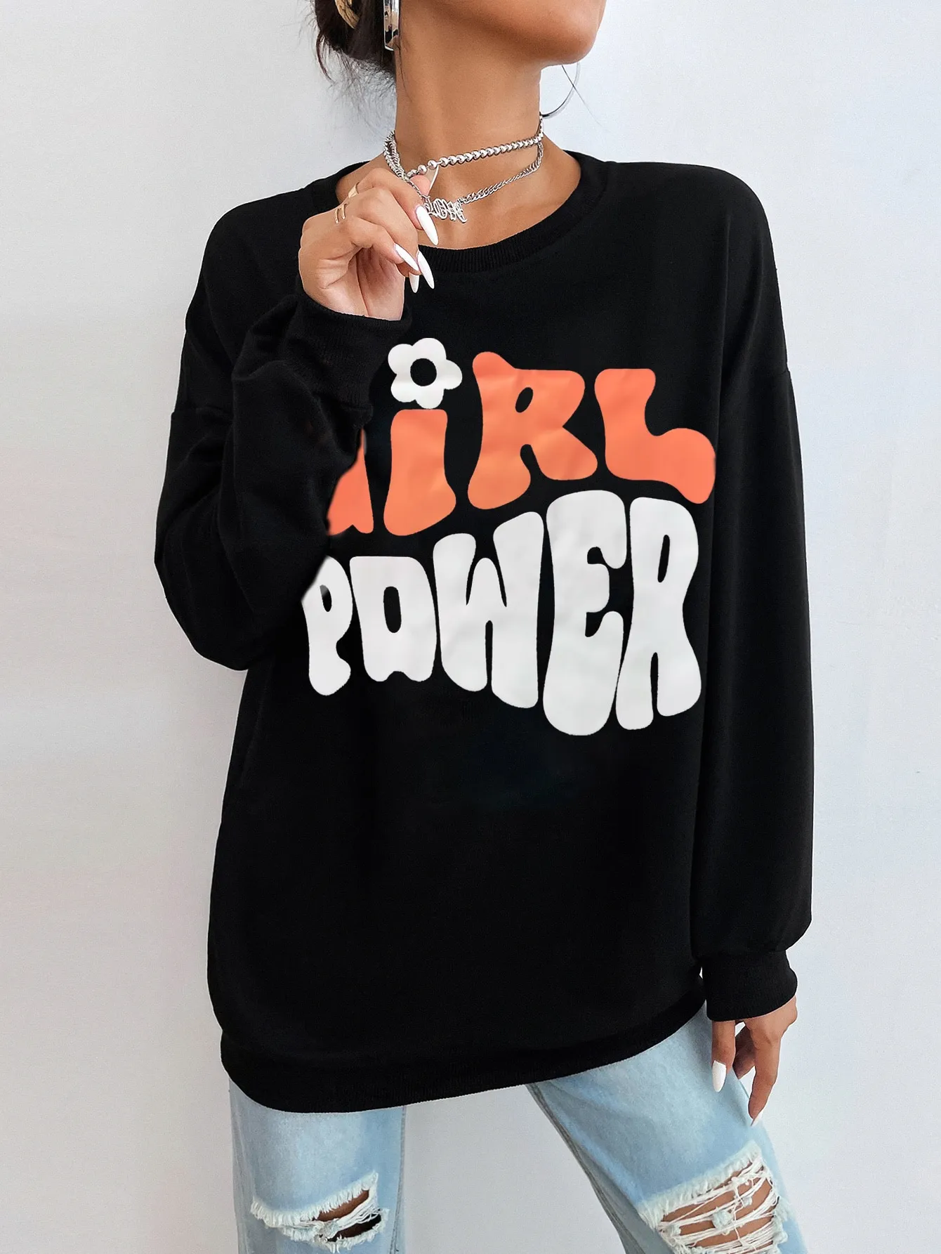 SMY Casual Round Neck Long Letter Printed GIRL POWER Hoodie