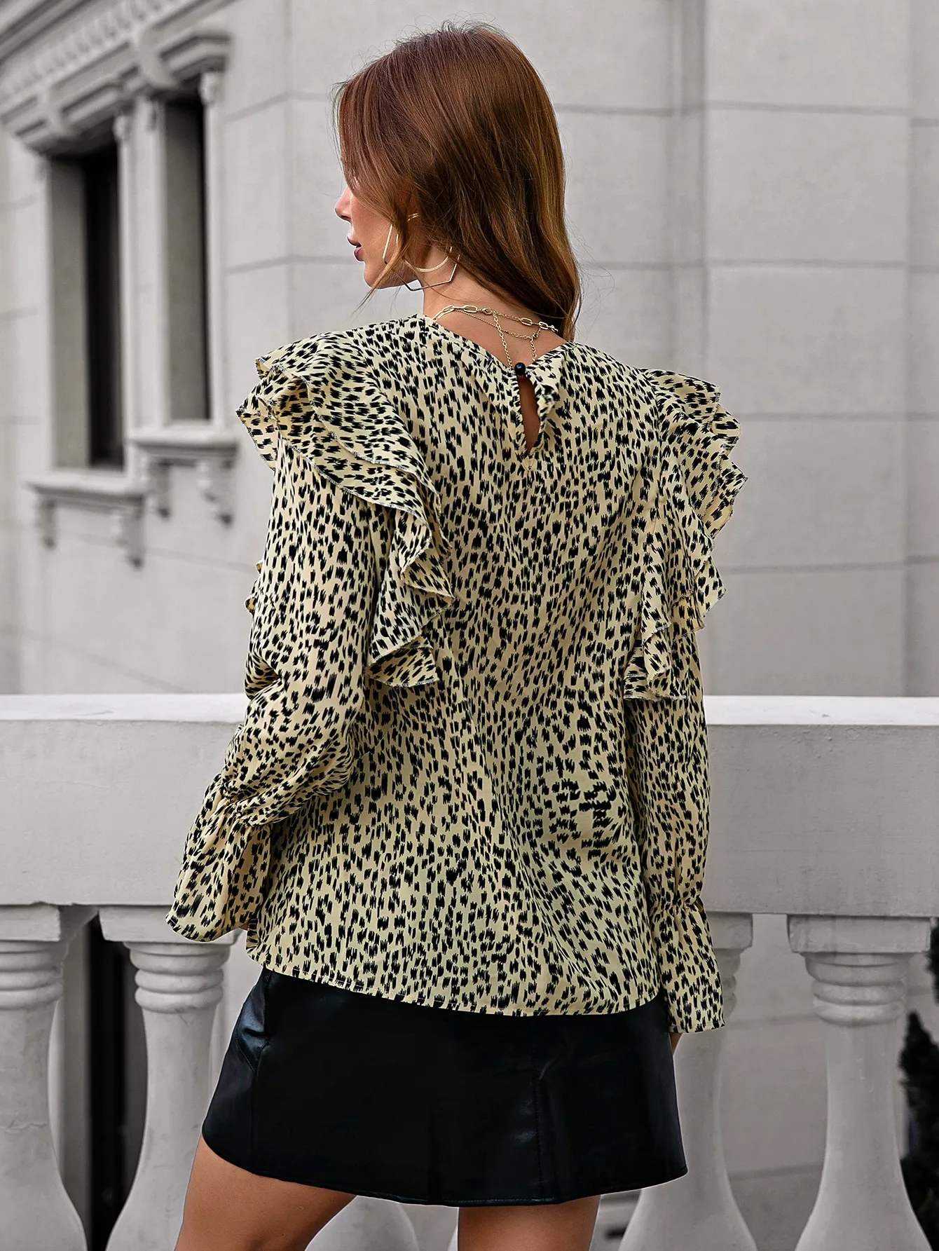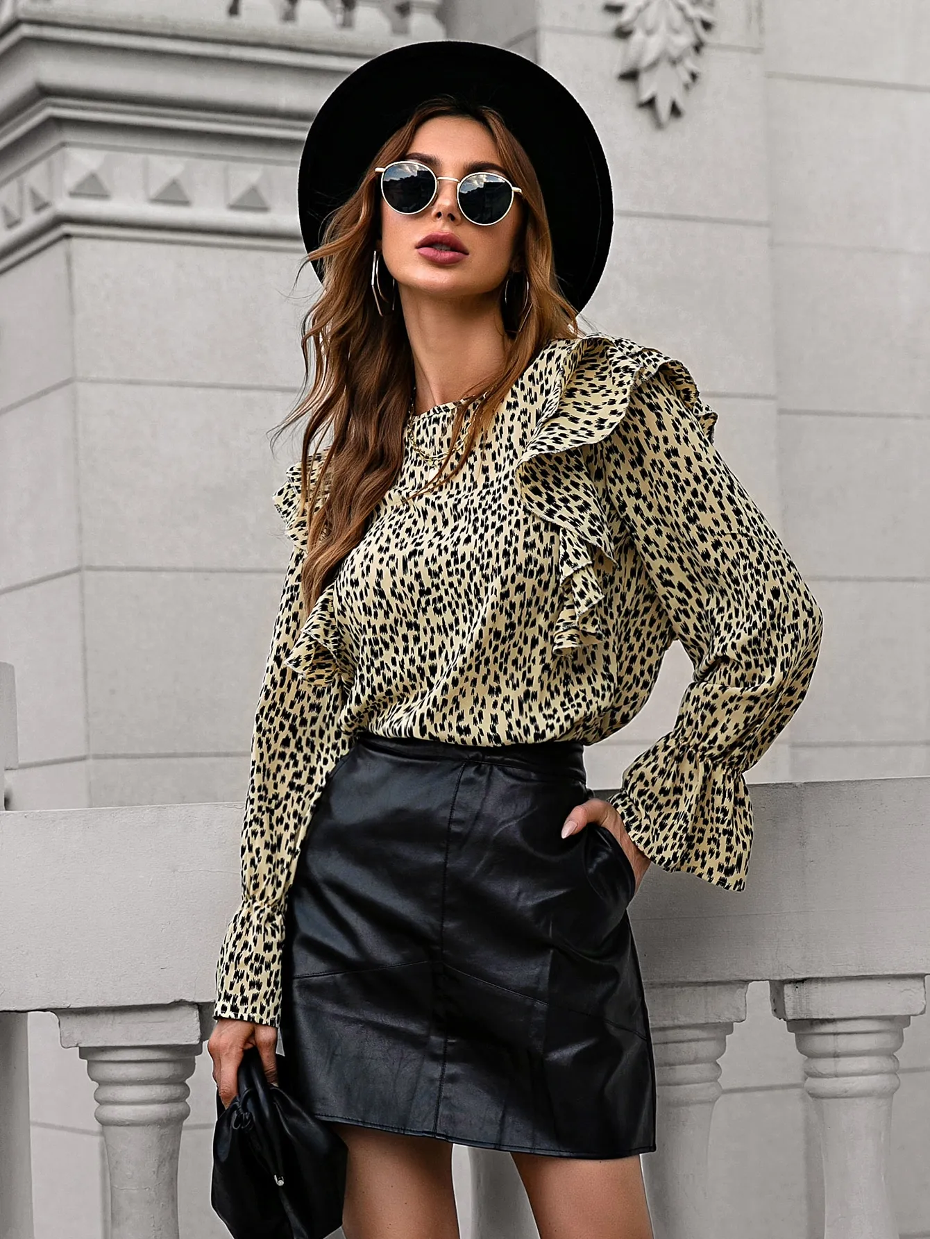 SMY Casual Round Neck Long Sleeved Ruffle Sleeves Shirt